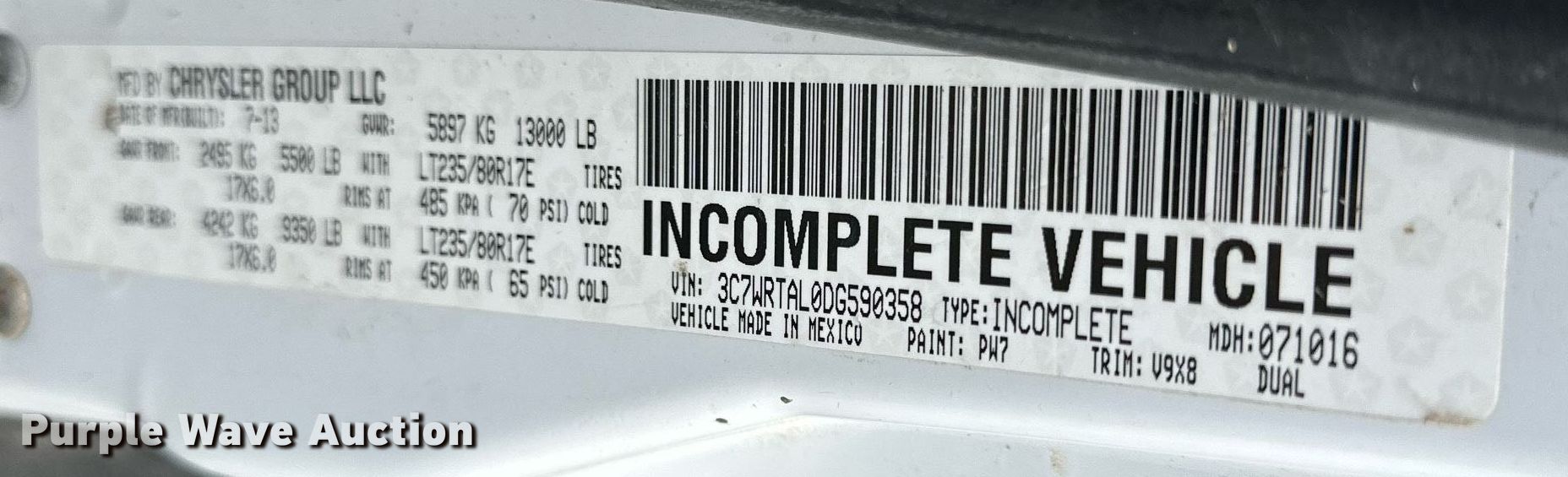 Purple Wave is selling a used 3/4 or 1 Ton Pickup or Van in Kansas. This item is a 2013 Dodge Ram 3500 flatbed pickup truck with the following: Miles: 105,409 on odometer, VIN: 3C7WRTAL0DG590358, Unit #: 1028