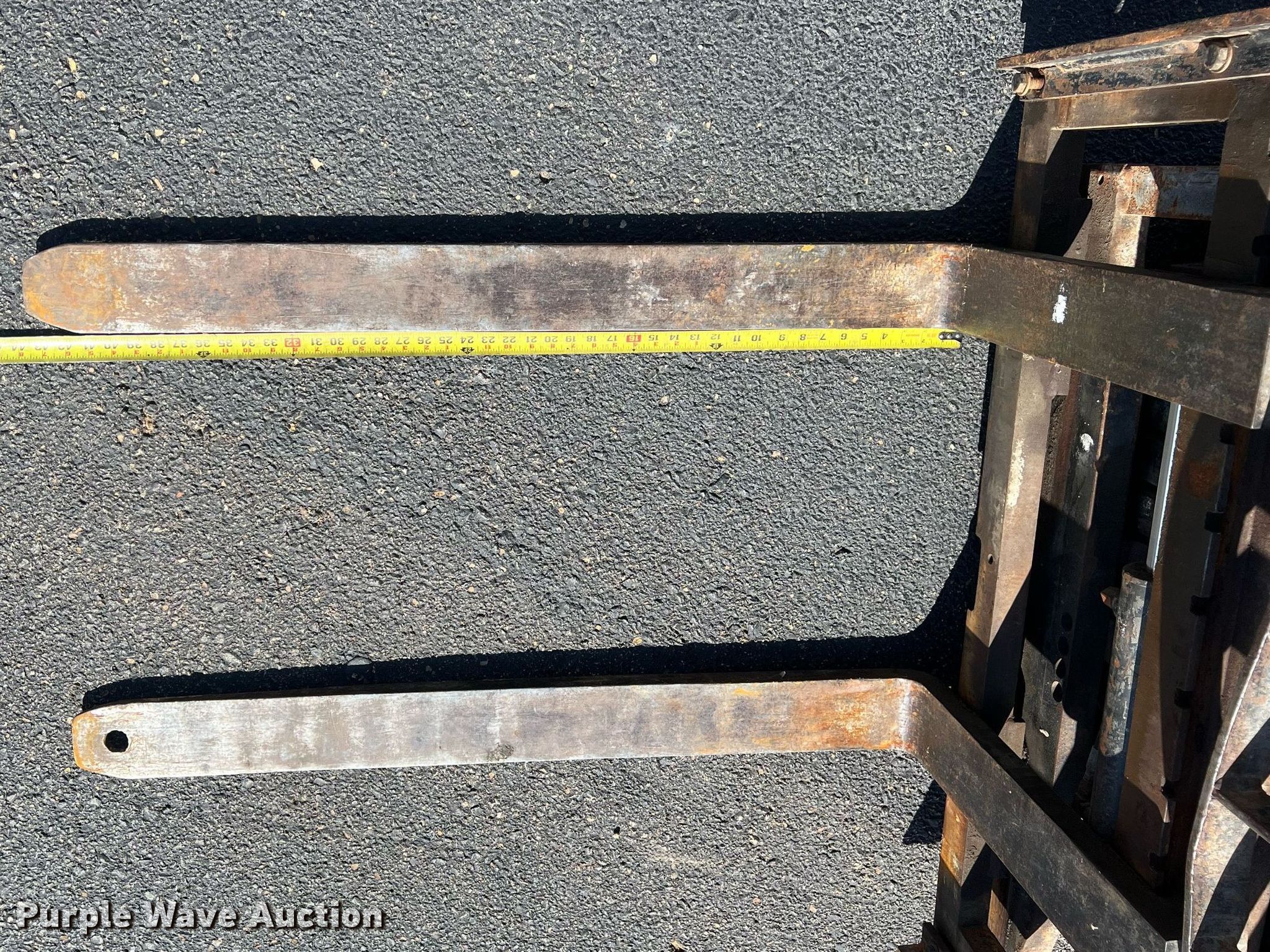 Daewoo G25E-3 forklift. Hours: 12,533 on meter, Serial: CW-02918. Engine Grindstall, Cylinders: 4, Fuel type: Gas. Transmission Powershift. Operators station Canopy. Features Maximum lift capacity: 4,450 lbs, Mast stages: 2, Side shift, Mast tilt, Fork length: 42". Tires Front: 7.00-15, Rear: 6.5-10, Solid. Heartland Motorsports park. 7530 SW Topeka Blvd. Topeka, KS 66619