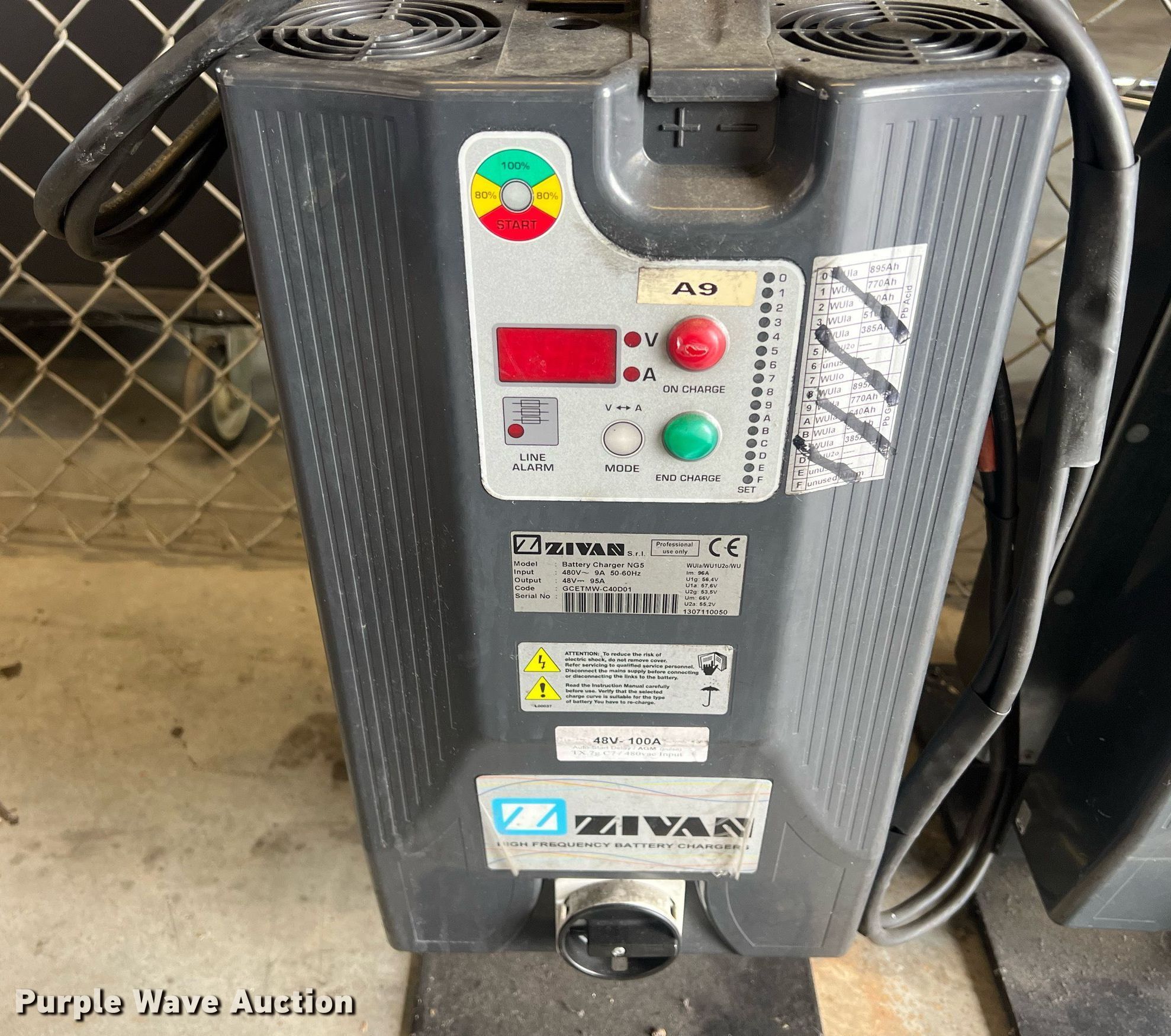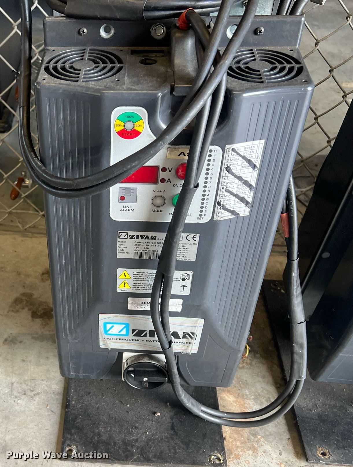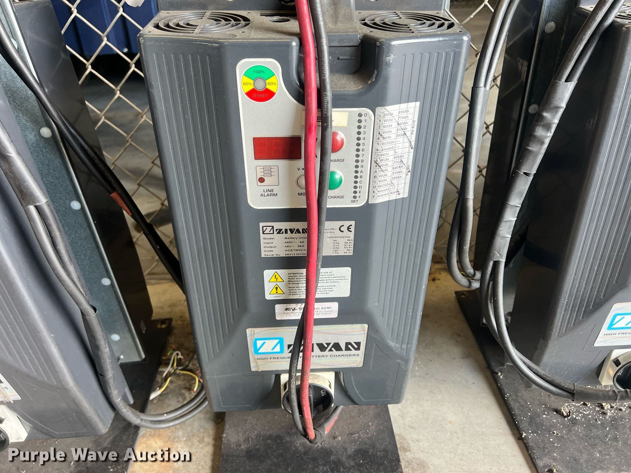 Purple Wave is selling a used Forklift Attach. in Kansas. This item is a (10) Zivan chargers with the following: Volts: 48
