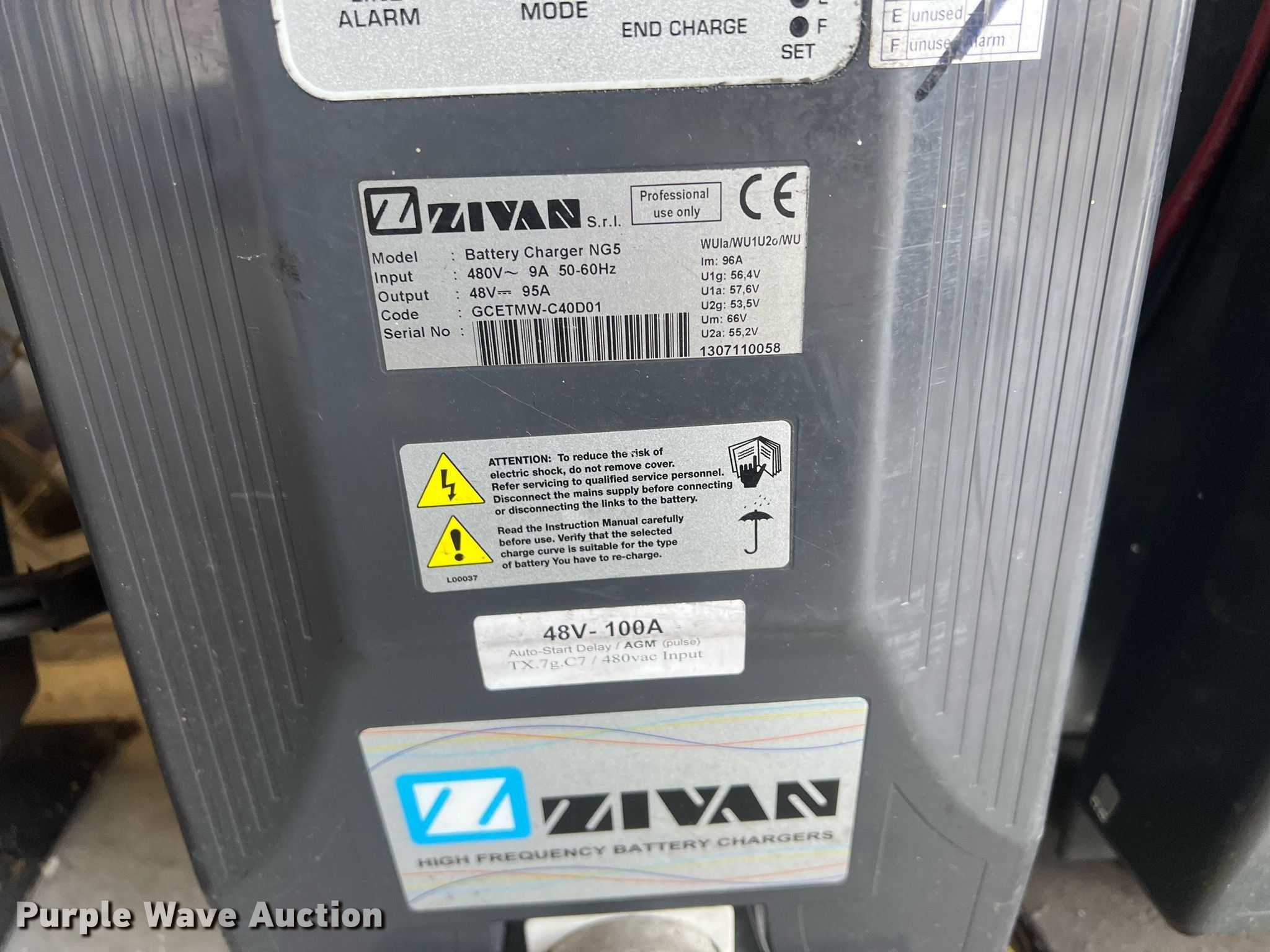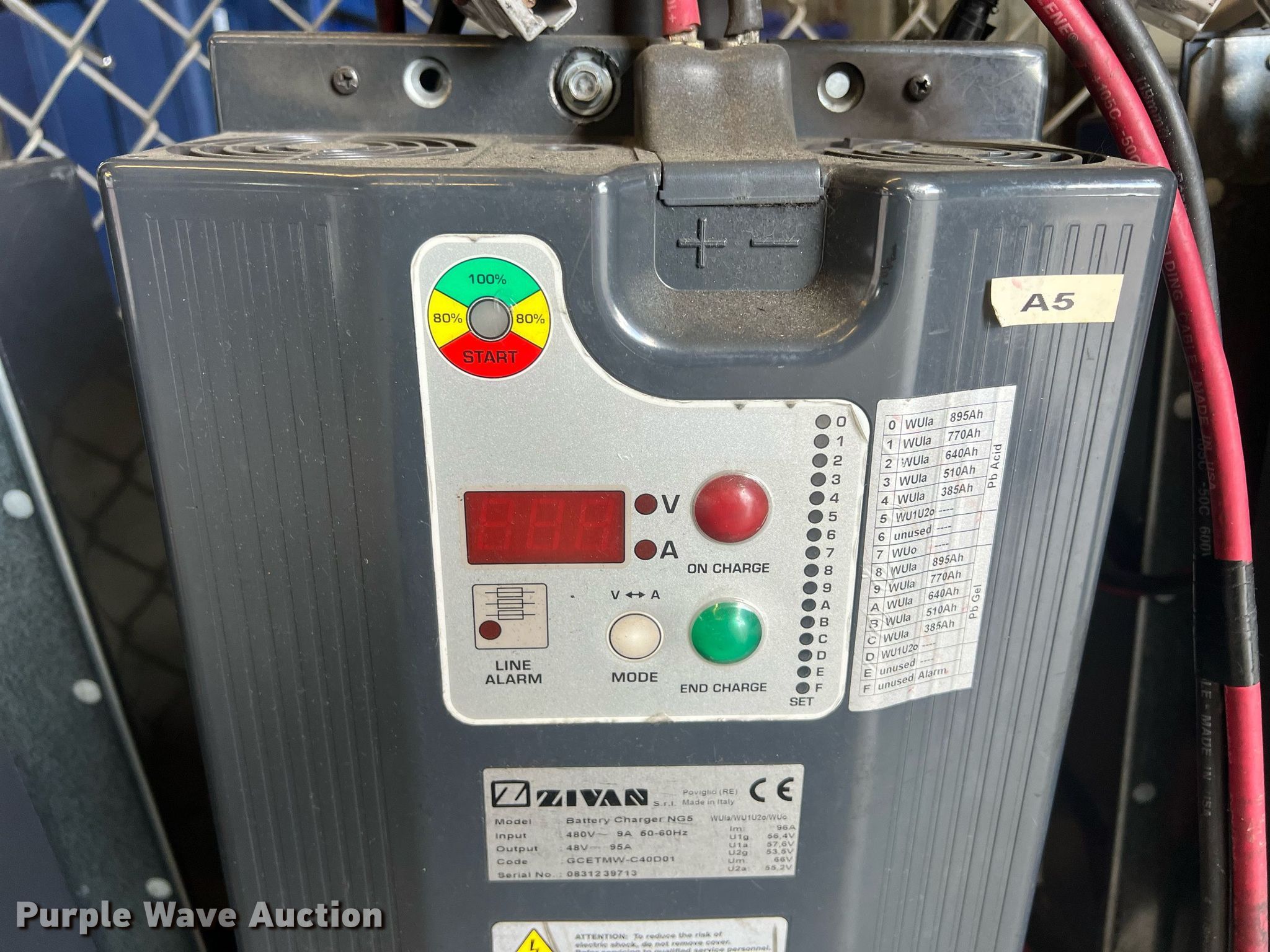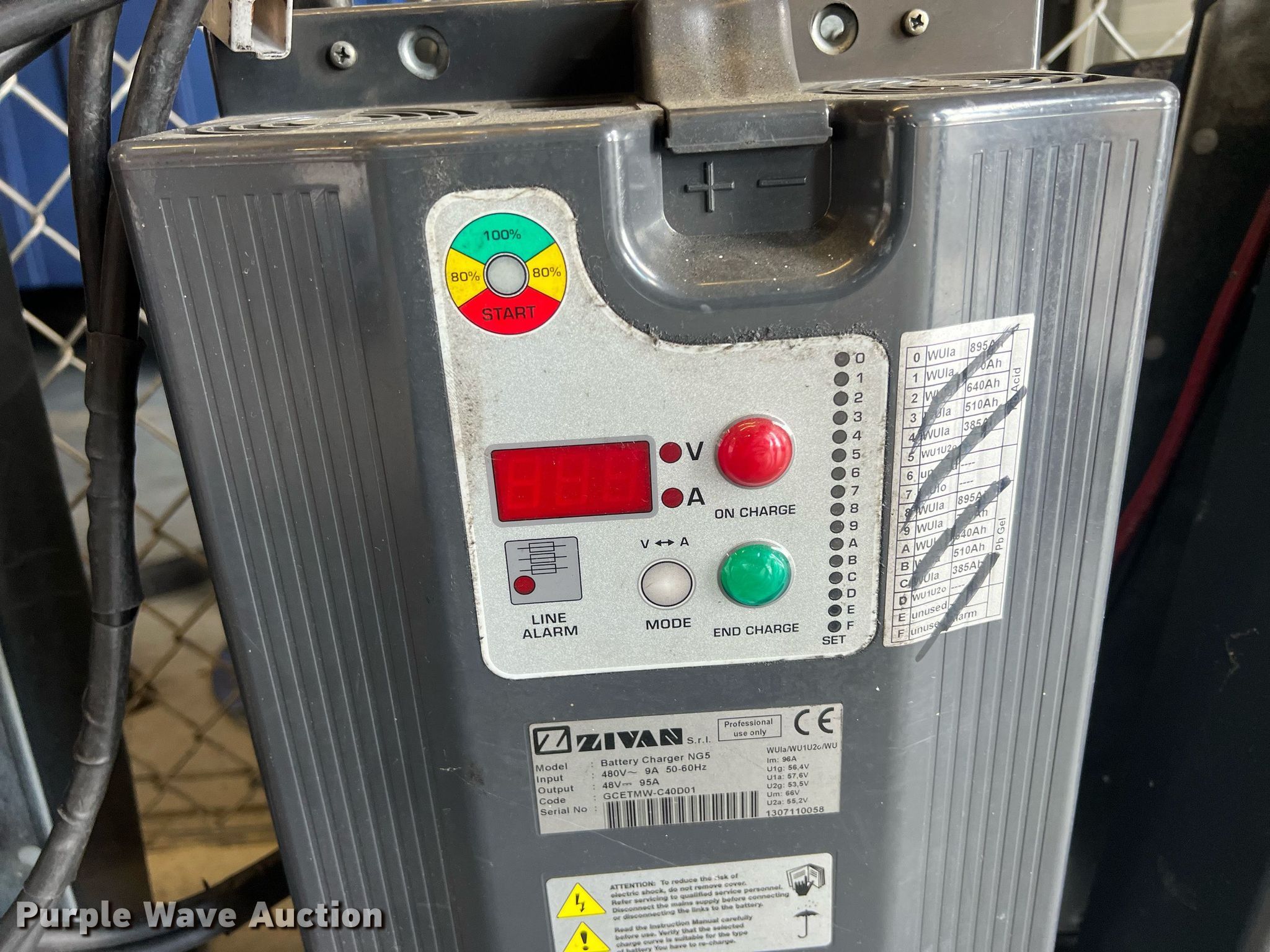 Purple Wave is selling a used Forklift Attach. in Kansas. This item is a (10) Zivan chargers with the following: Volts: 48