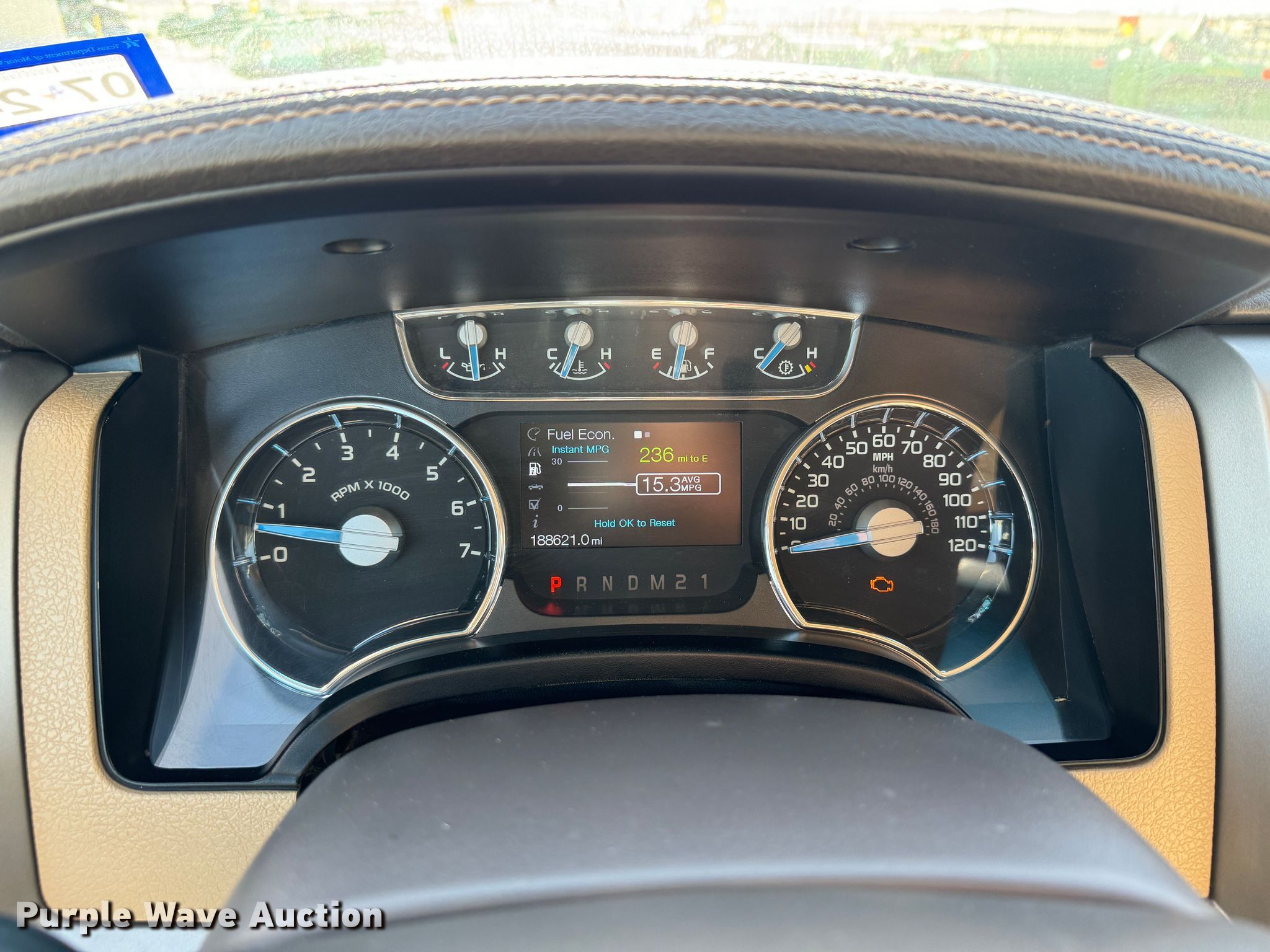 2014 Ford F150 SuperCrew pickup truck. Miles: 188,621 on odometer, VIN: 1FTFW1ET0EKE14523. Engine Displacement: 3.5L V6, Cylinders: 6, Fuel type: Gas. Transmission Automatic, Four wheel drive. Interior AC, Heat, Seat: Heated, Cooled, Power driver, Power passenger, Power windows, Power locks, Cruise control, Backup camera, Powered sunroof. Features Hitch: Gooseneck. Tires Size: 275/65R18. Notes Dash warning indicator: Check engine. Texas title. Title distribution may be delayed up to 30 days from verification of funds. Western Lease LLC. 10800 Interstate 27. Amarillo, TX 79119