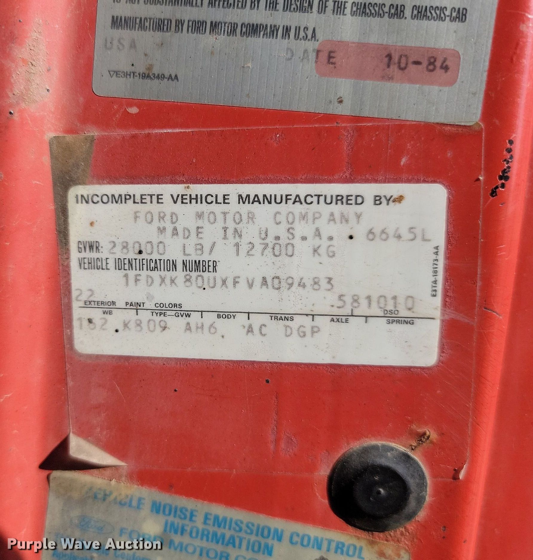 Take a look at this used 1985 Ford 8000 dump truck being sold on November 8th, 2023 in the SOLD! November 08 Vehicles and Equipment Auction made by Ford. Take a look at all of the item information below or take a look at similar auctions for Construction Trucks.
