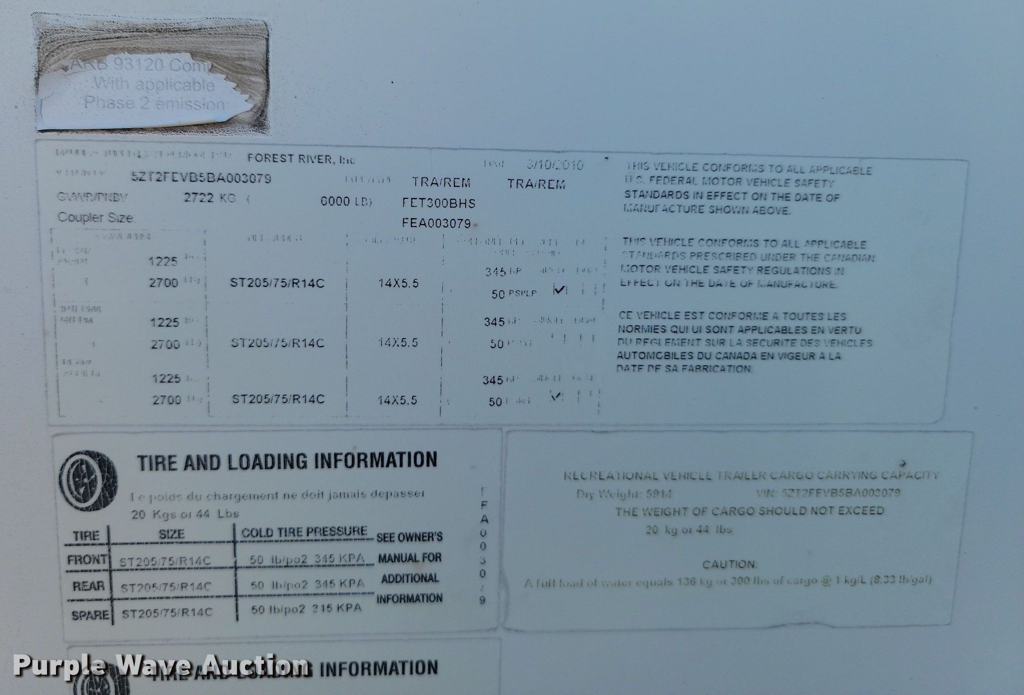 Purple Wave is selling a used RV or Camper in South Dakota. This item is a 2011 Forrest River Coachmen camper with the following: Camper length: 33' 3", VIN: 5ZT2FEVB5BA003079