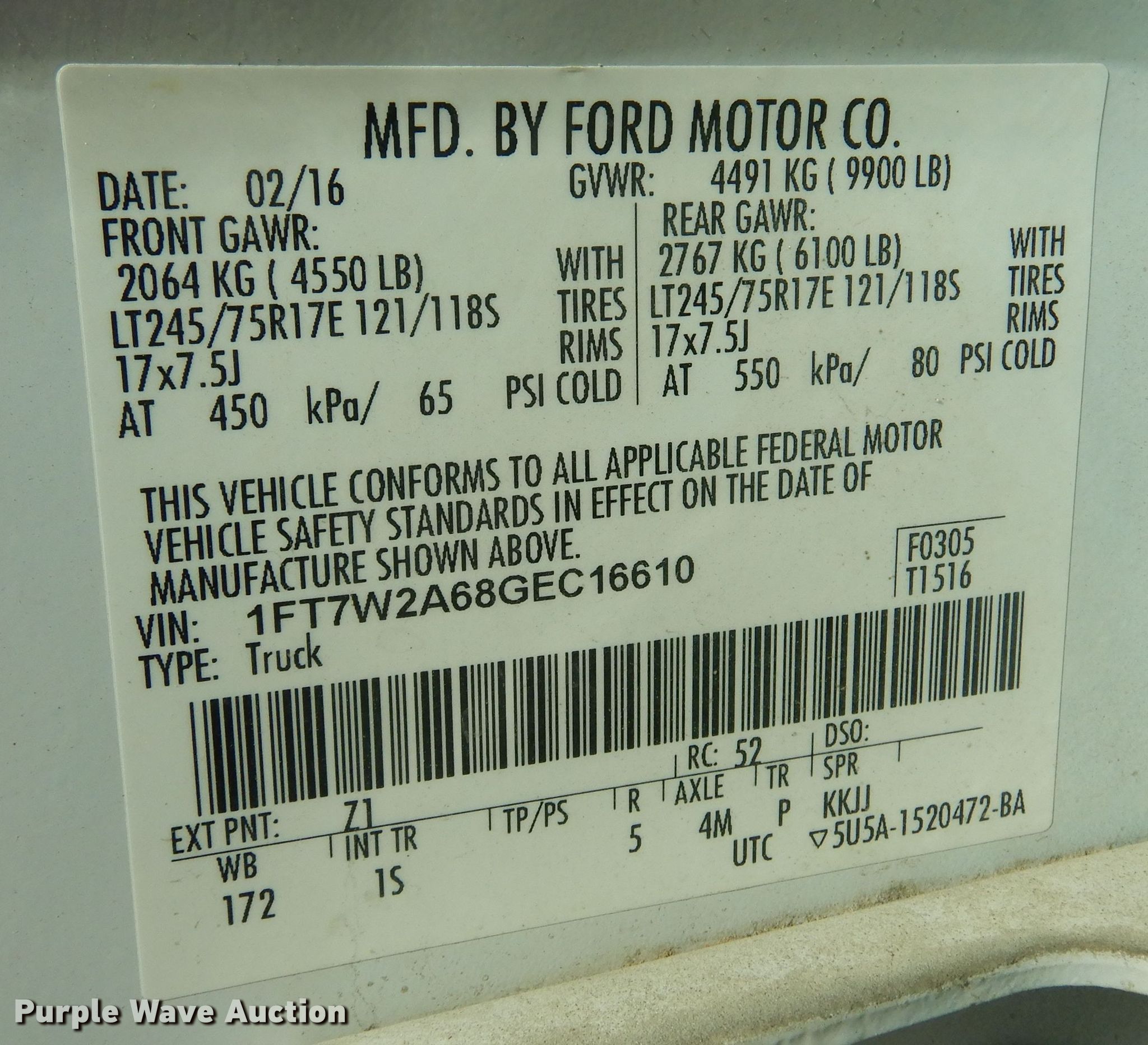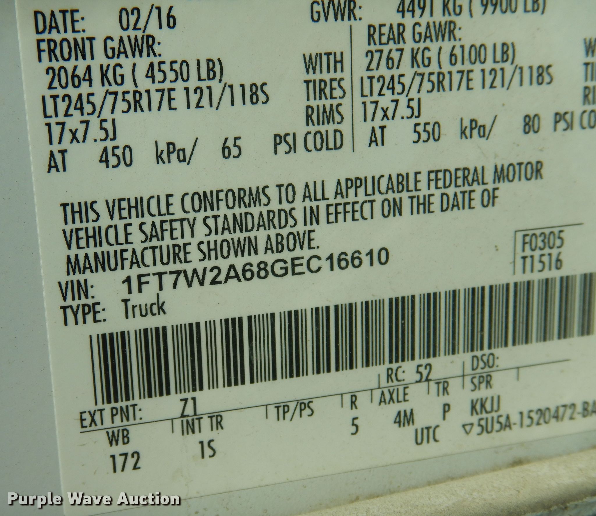- VIN: 1FT7W2A68GEC16610