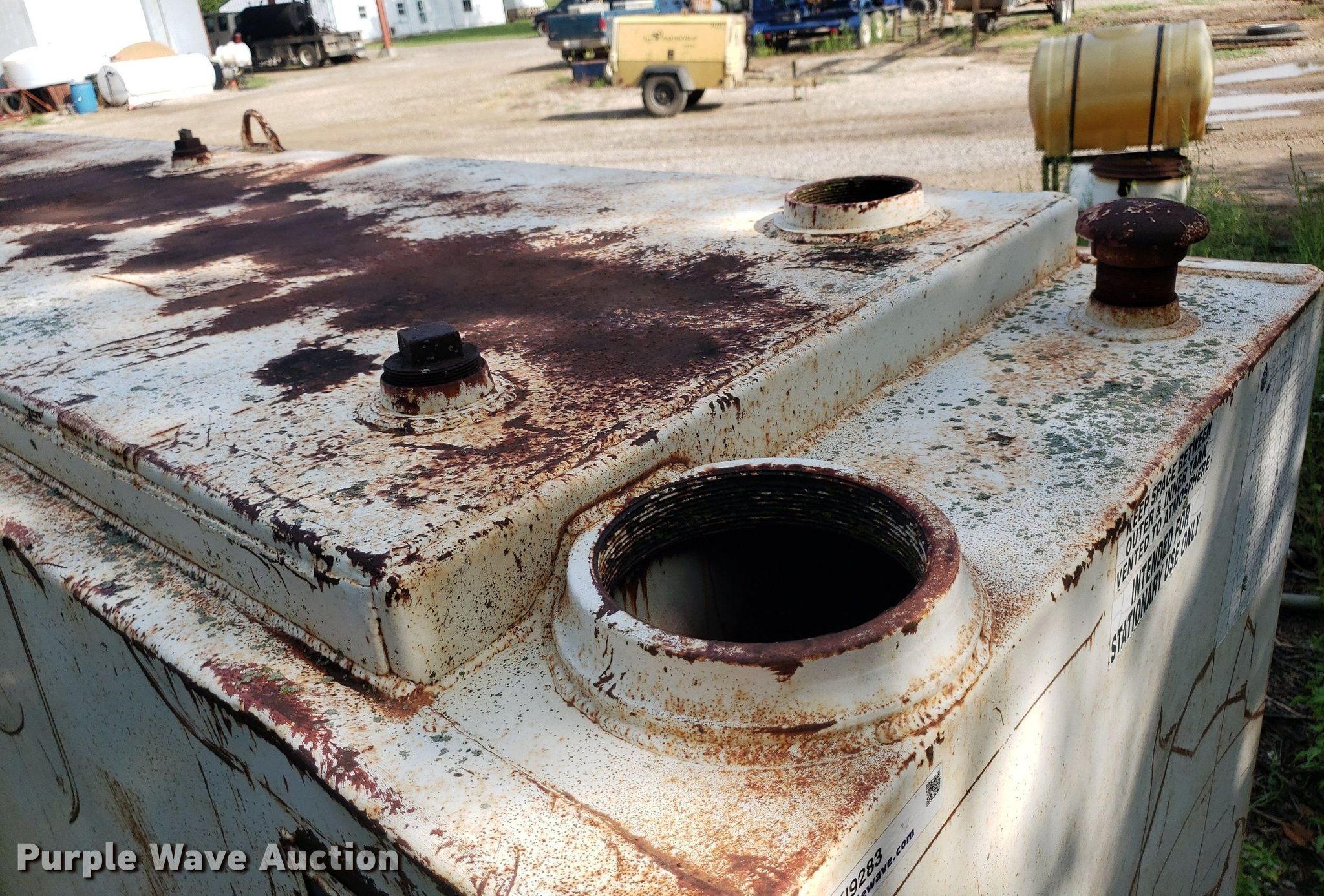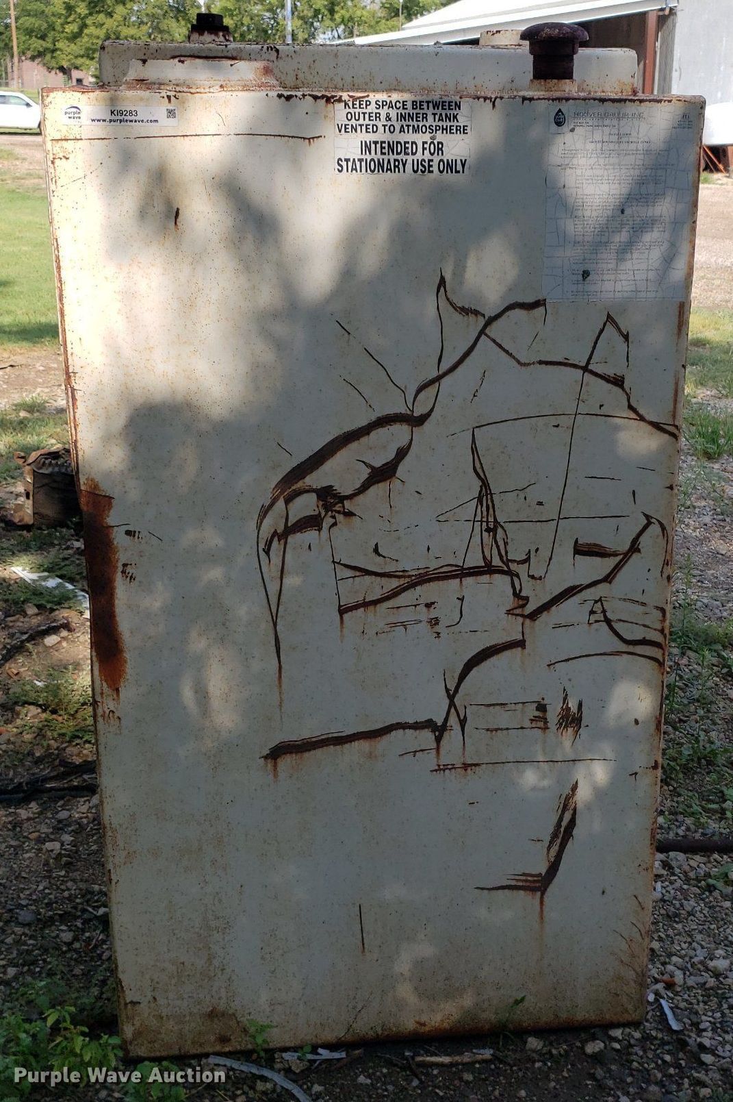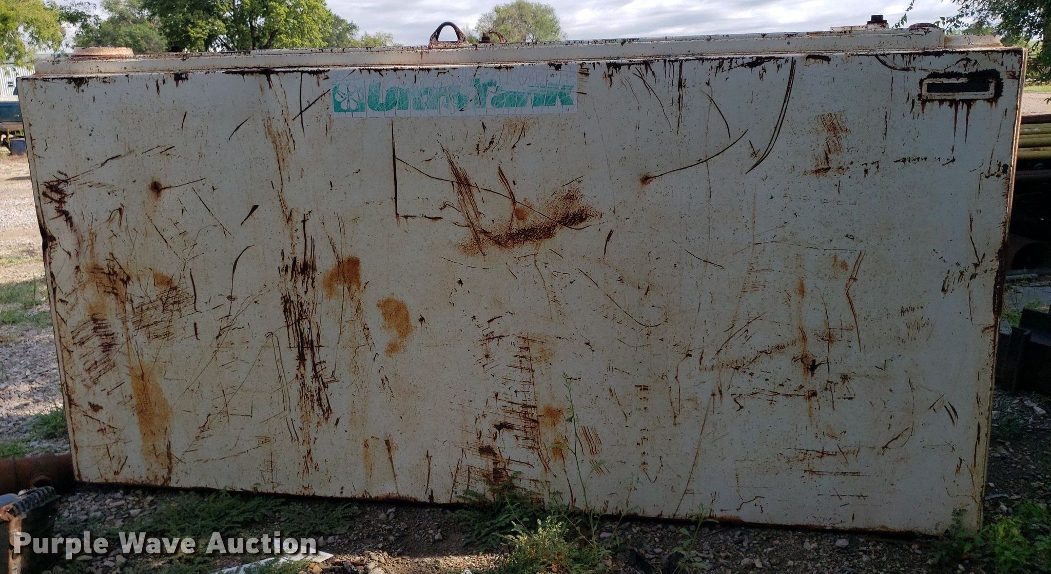 Purple Wave is selling a used Fuel and Lube in Kansas. This item is a Hoover fuel tank with the following: Approx. 1000 gallon capacity, Serial: 656106