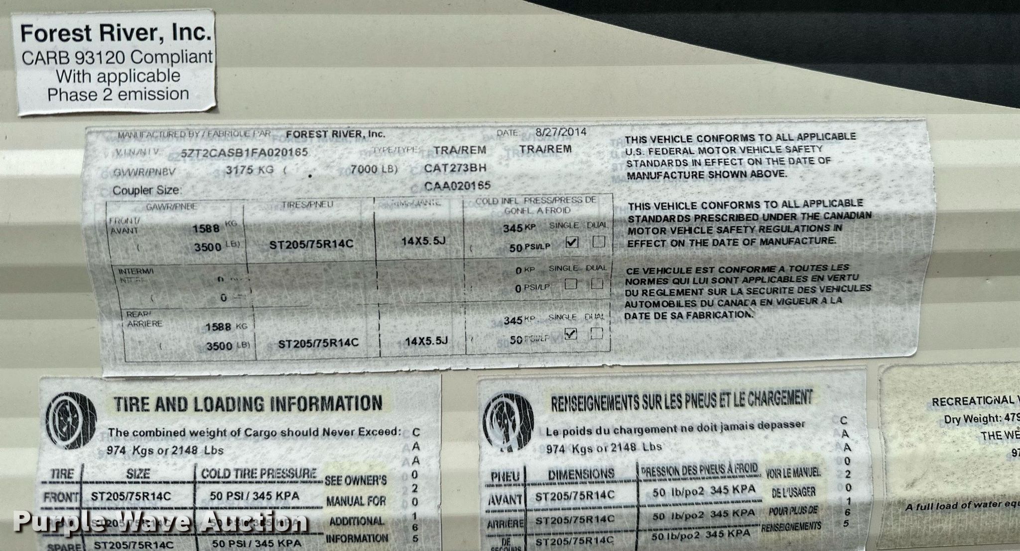 Purple Wave is selling a used RV or Camper in Oklahoma. This item is a 2015 Coachmen Catalina camper with the following: Camper length: 25', VIN: 5ZT2CASB1FA020165