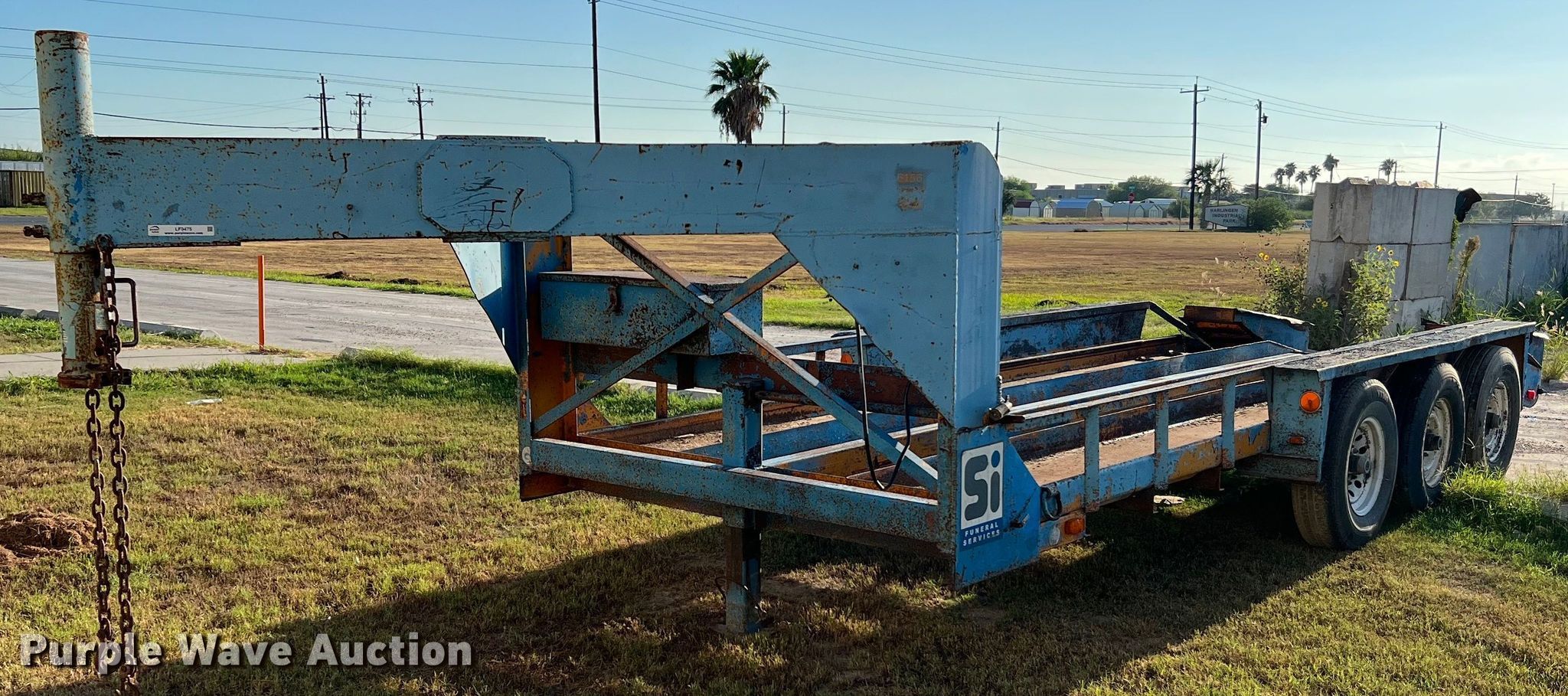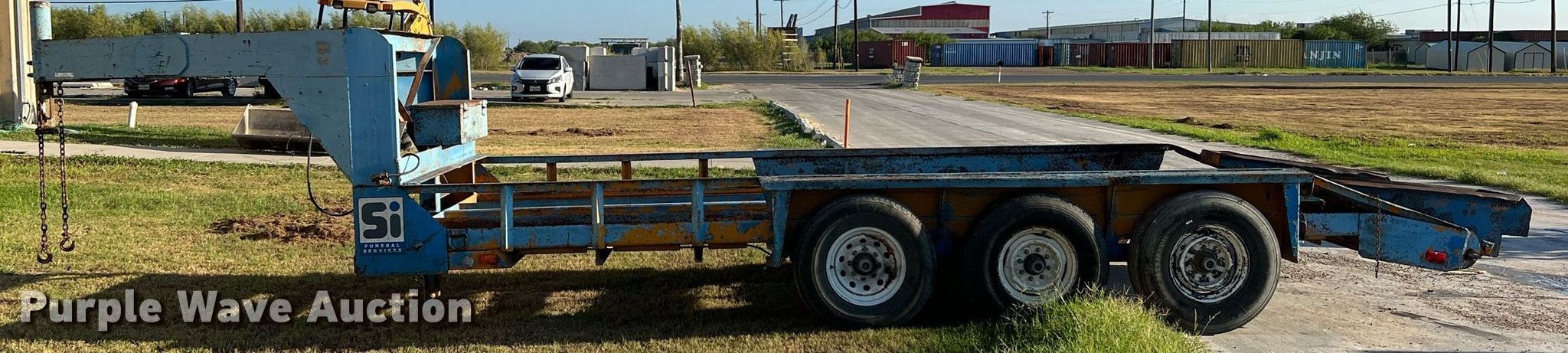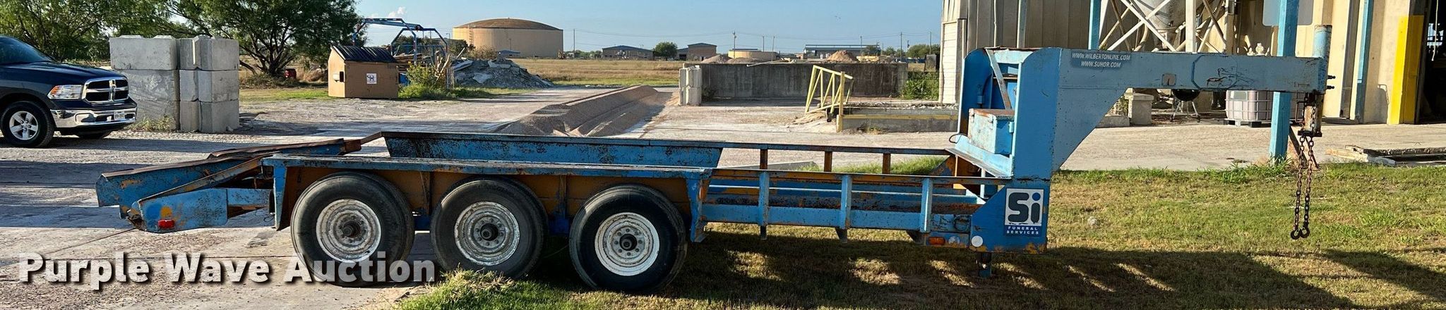 1985 Belshe equipment trailer. VIN: 16JF01839F1015980. Dimensions Overall: 29' 11" L x 8' W x 5" W, Deck: 18' x 6' W x 10" W, Deck height: 1' 10", Tail length: 1' 8", Ramps: Manual Length: 3' 5". Features Deck type: Steel. Chassis Hitch: Gooseneck, Landing gear: Single, Suspension: Spring, Brakes: Electric, Axles: Triple, GVWR: 18,000 lbs, GAWR: 6,000 lbs. Tires Steel wheels, Size: 235/85R16. Title distribution may be delayed up to 14 days from verification of funds. Wilbert Funeral Services. 5200 East Harrison Avenue. Harlingen, TX 78550