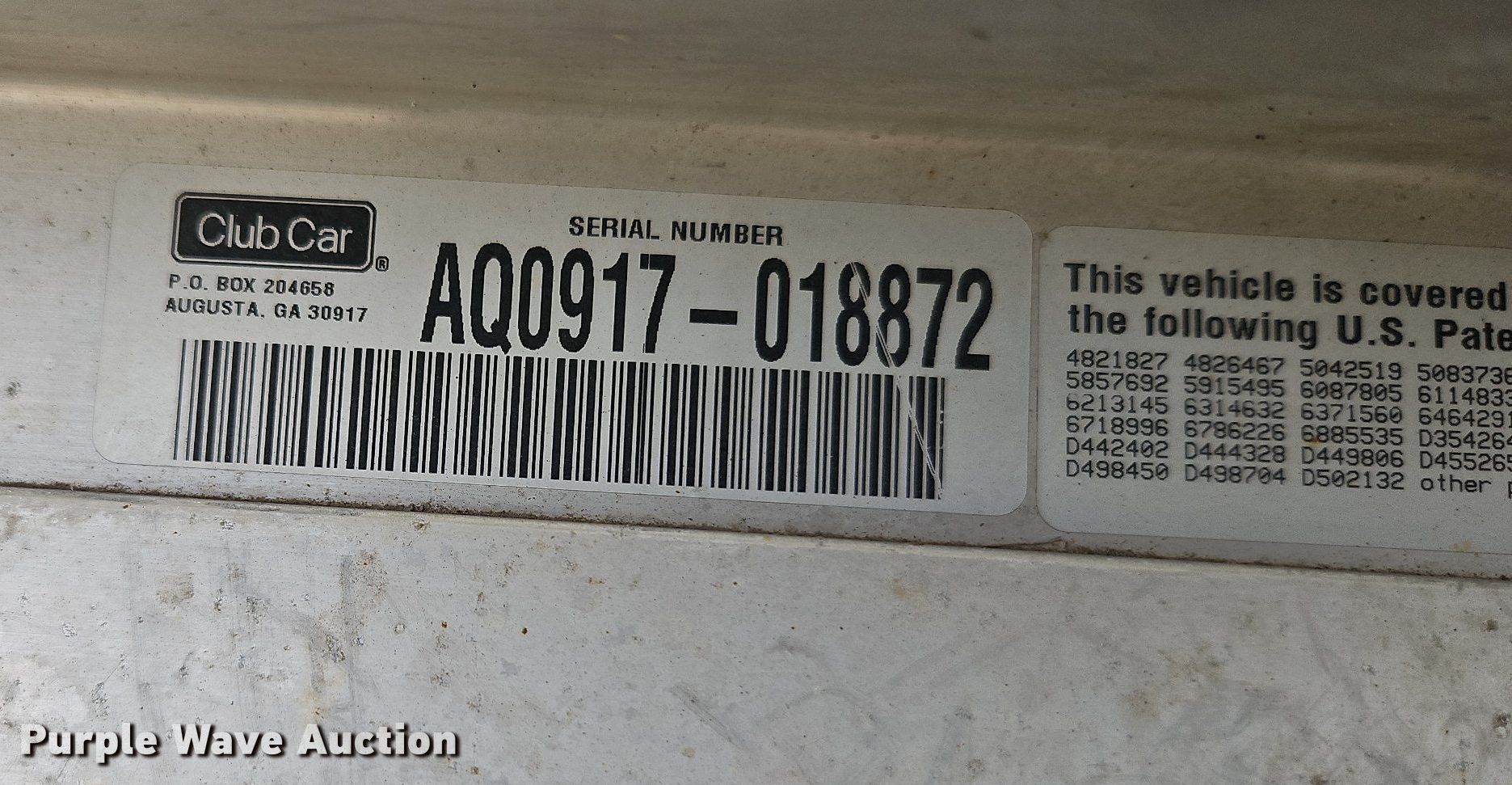 Purple Wave is selling a used Golf Cart in Kansas. This item is a Club Car golf cart with the following: Serial: AQ0917-018872