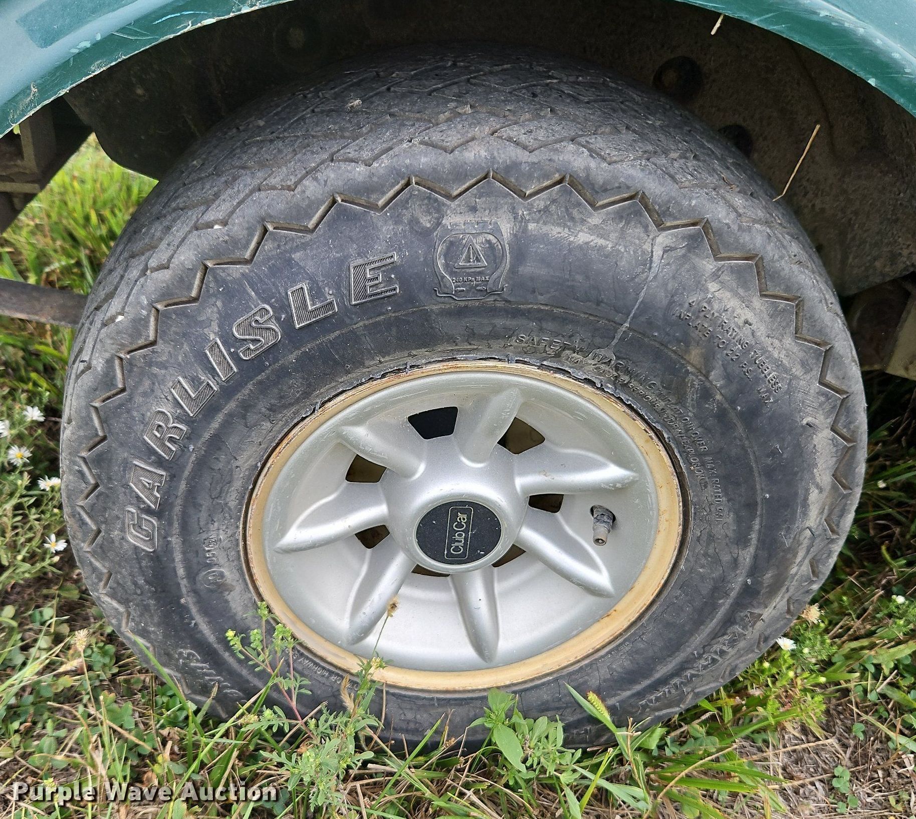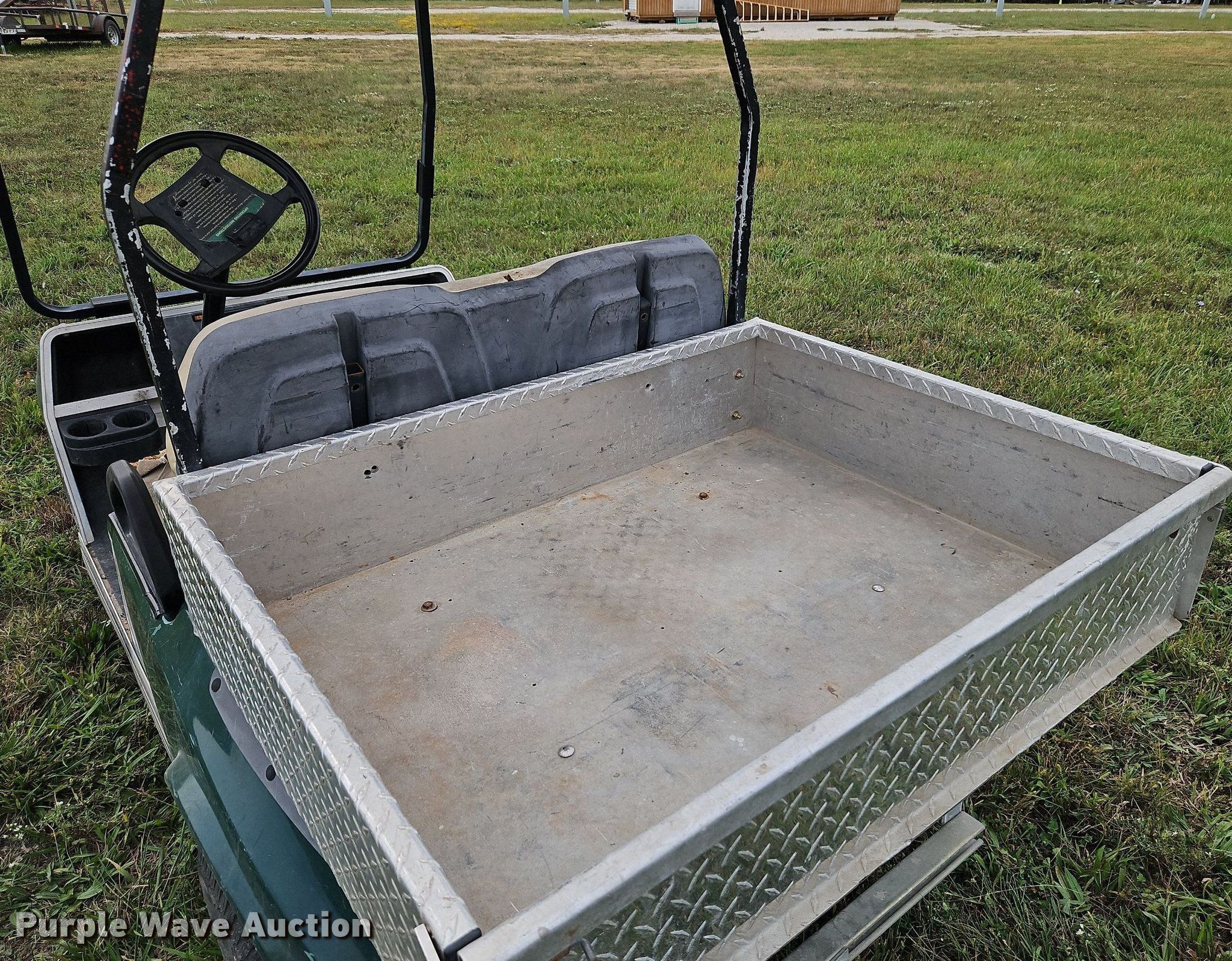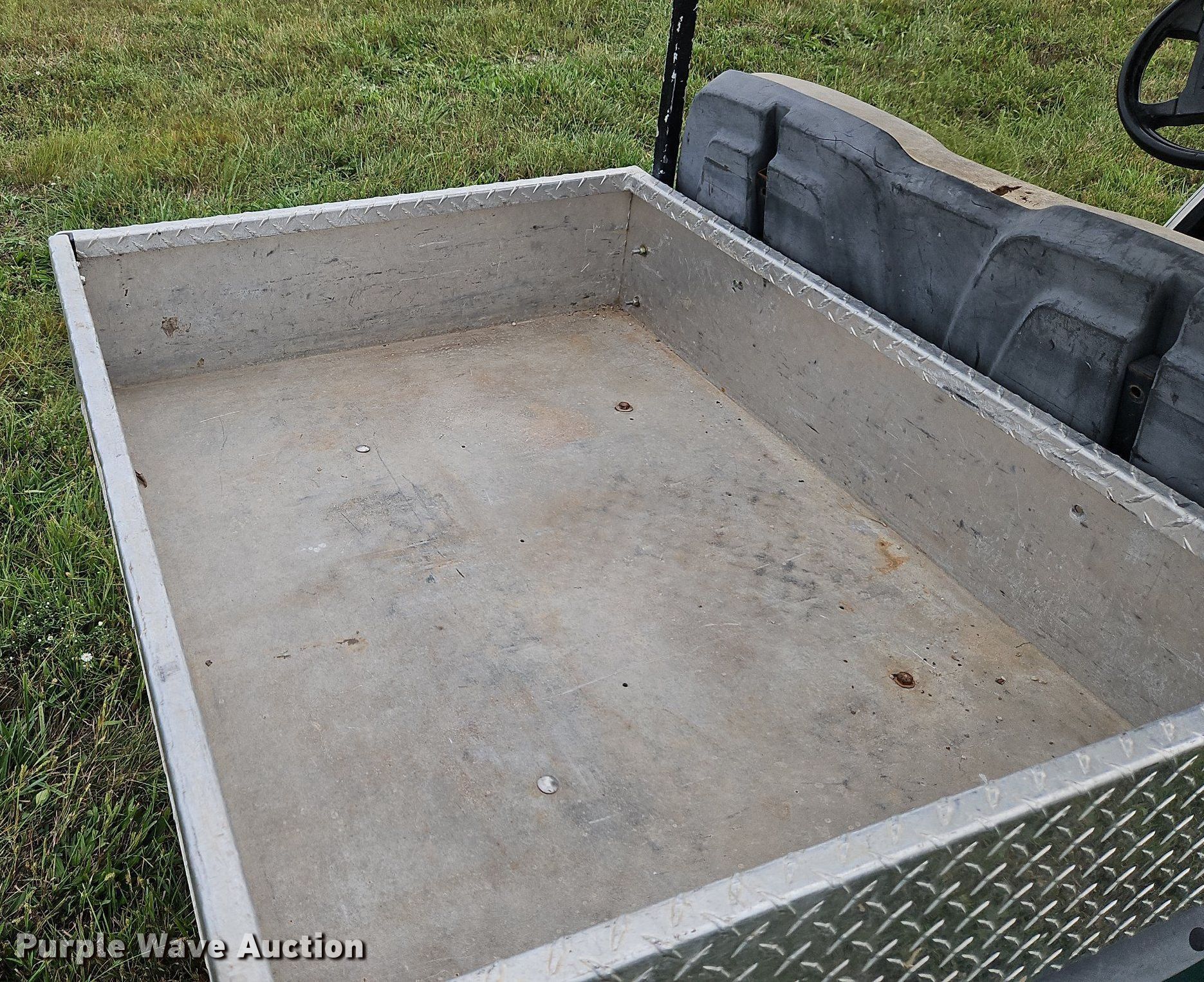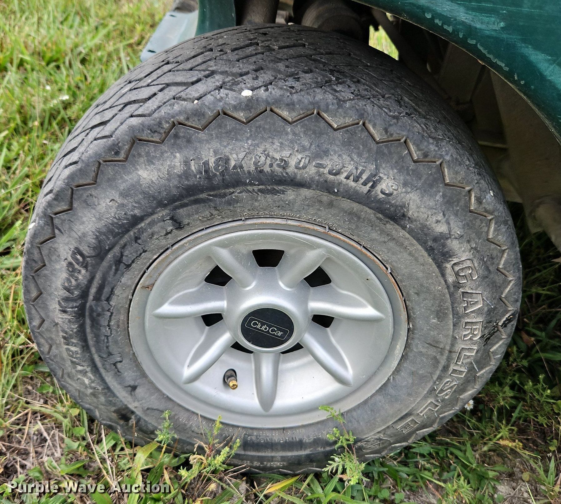 Club Car golf cart. Serial: AQ0339-328023. Electric Motor Volts: 48, Charger: Single phase. Transmission Automatic. Operators station Canopy. Features Box bed 31" L x 41" W. Tires Size: 18x8.50-8. Irrigation & Turf. Gas, KS 66749