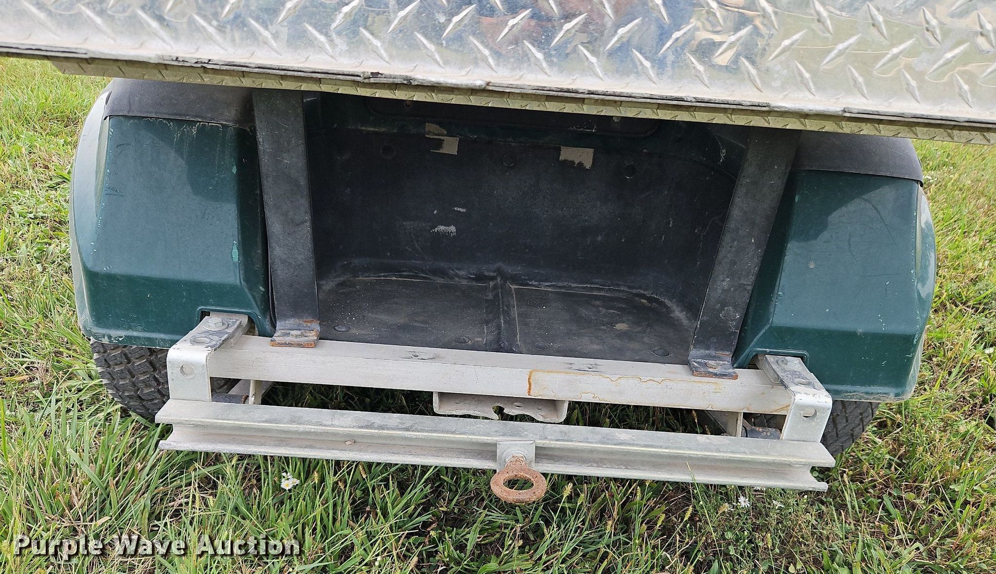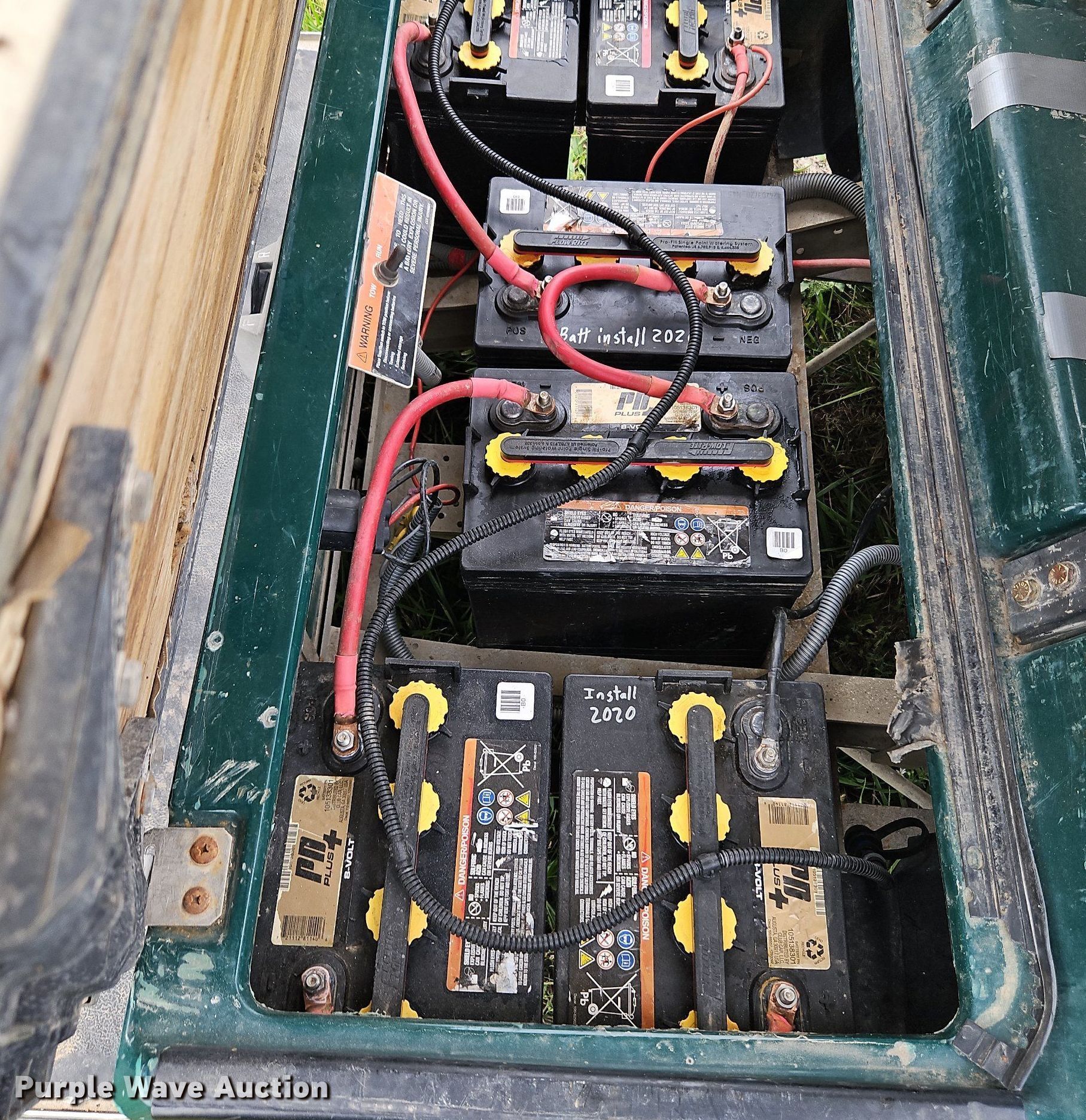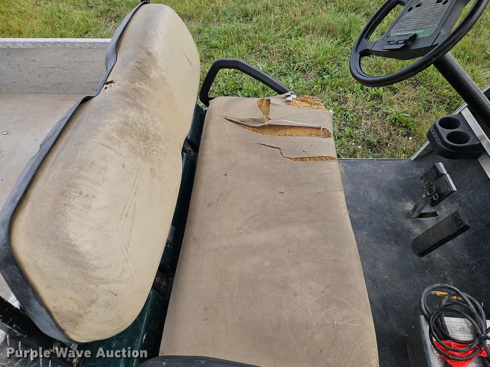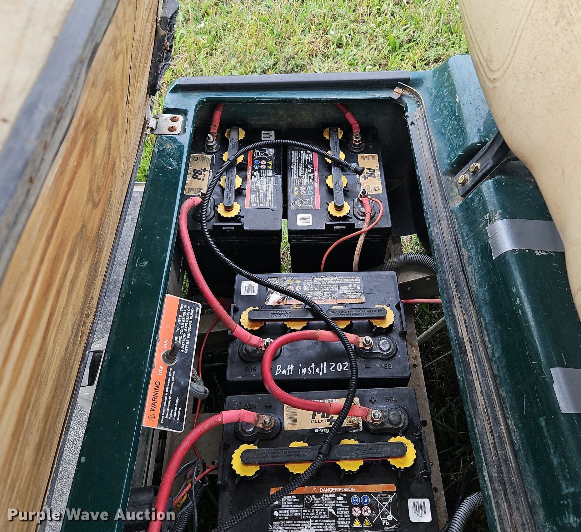 Club Car golf cart. Serial: AQ0339-328023. Electric Motor Volts: 48, Charger: Single phase. Transmission Automatic. Operators station Canopy. Features Box bed 31" L x 41" W. Tires Size: 18x8.50-8. Irrigation & Turf. Gas, KS 66749