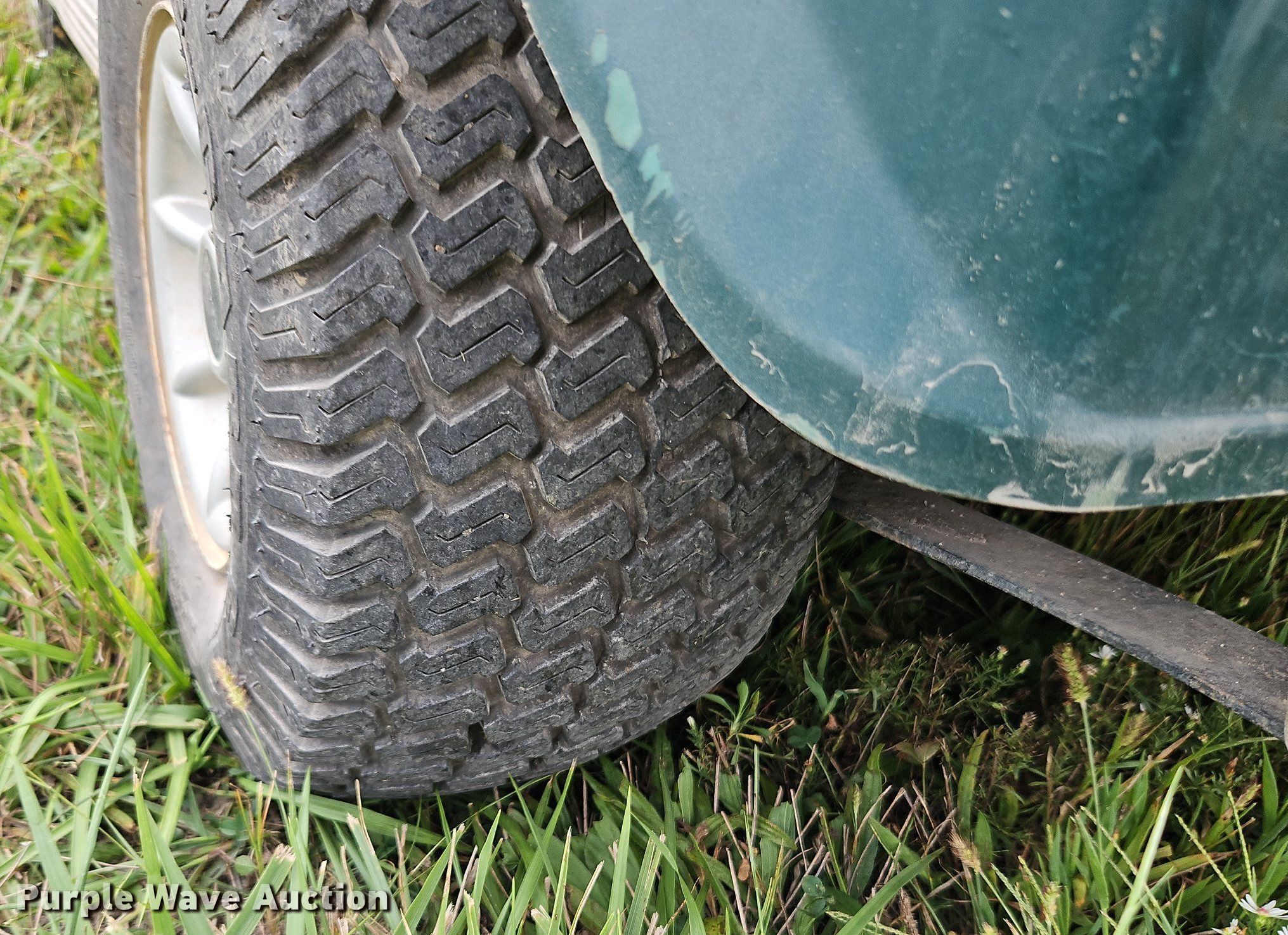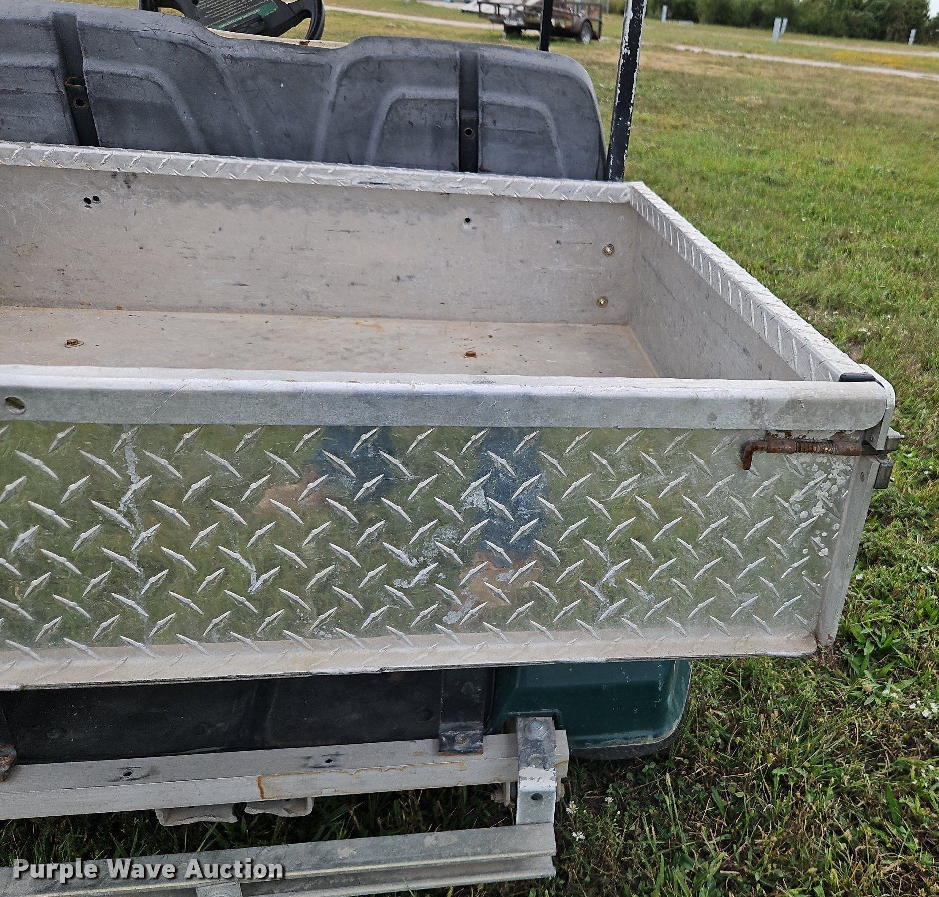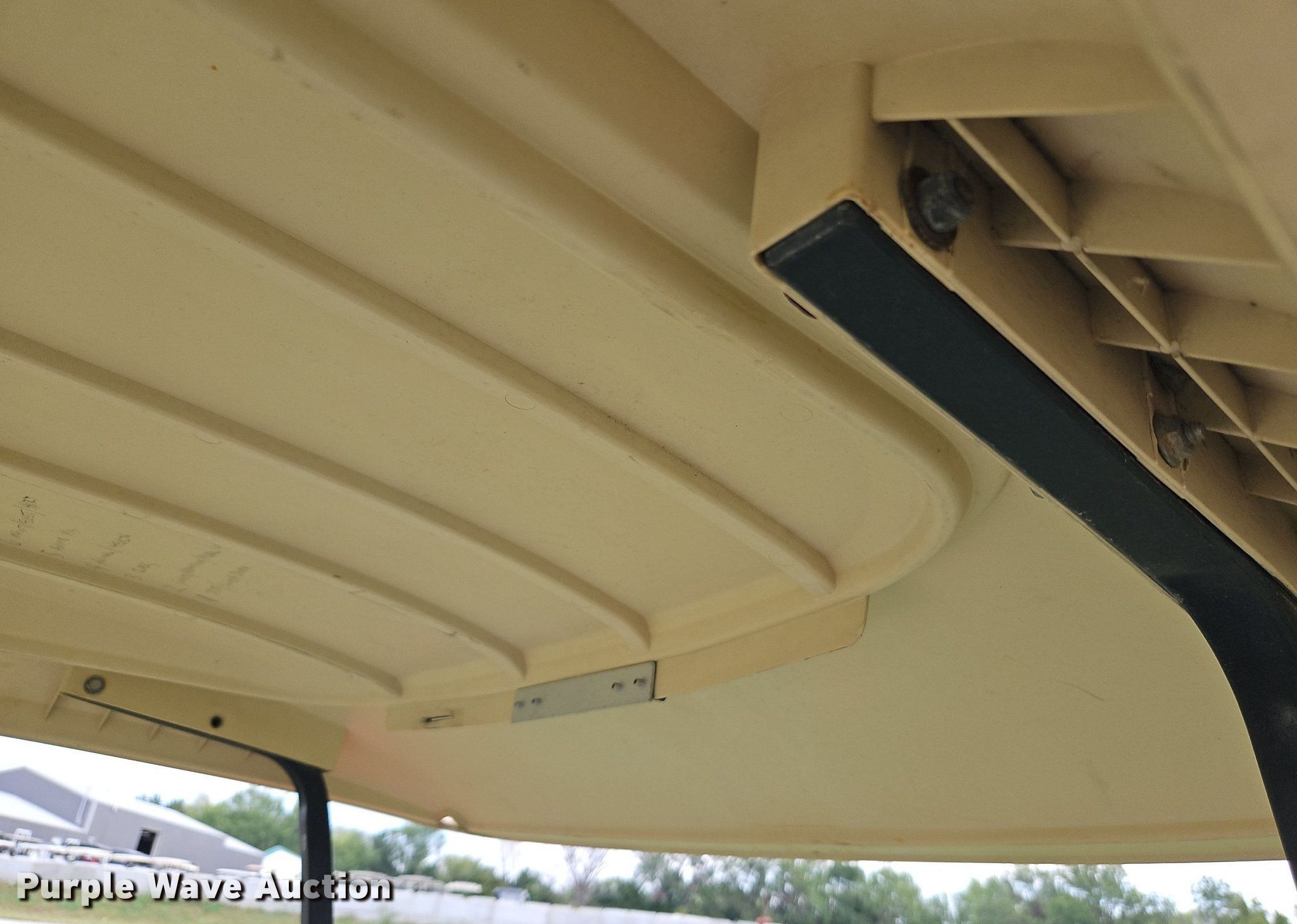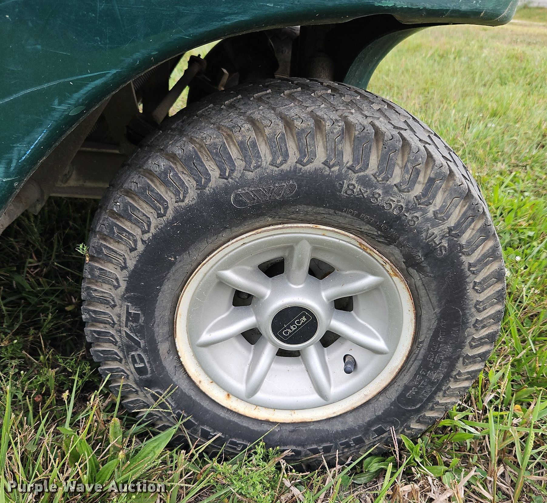 Club Car golf cart. Serial: AQ0339-328023. Electric Motor Volts: 48, Charger: Single phase. Transmission Automatic. Operators station Canopy. Features Box bed 31" L x 41" W. Tires Size: 18x8.50-8. Irrigation & Turf. Gas, KS 66749