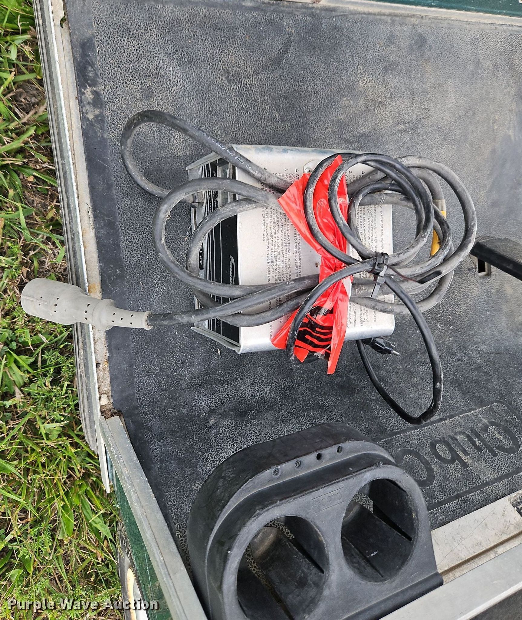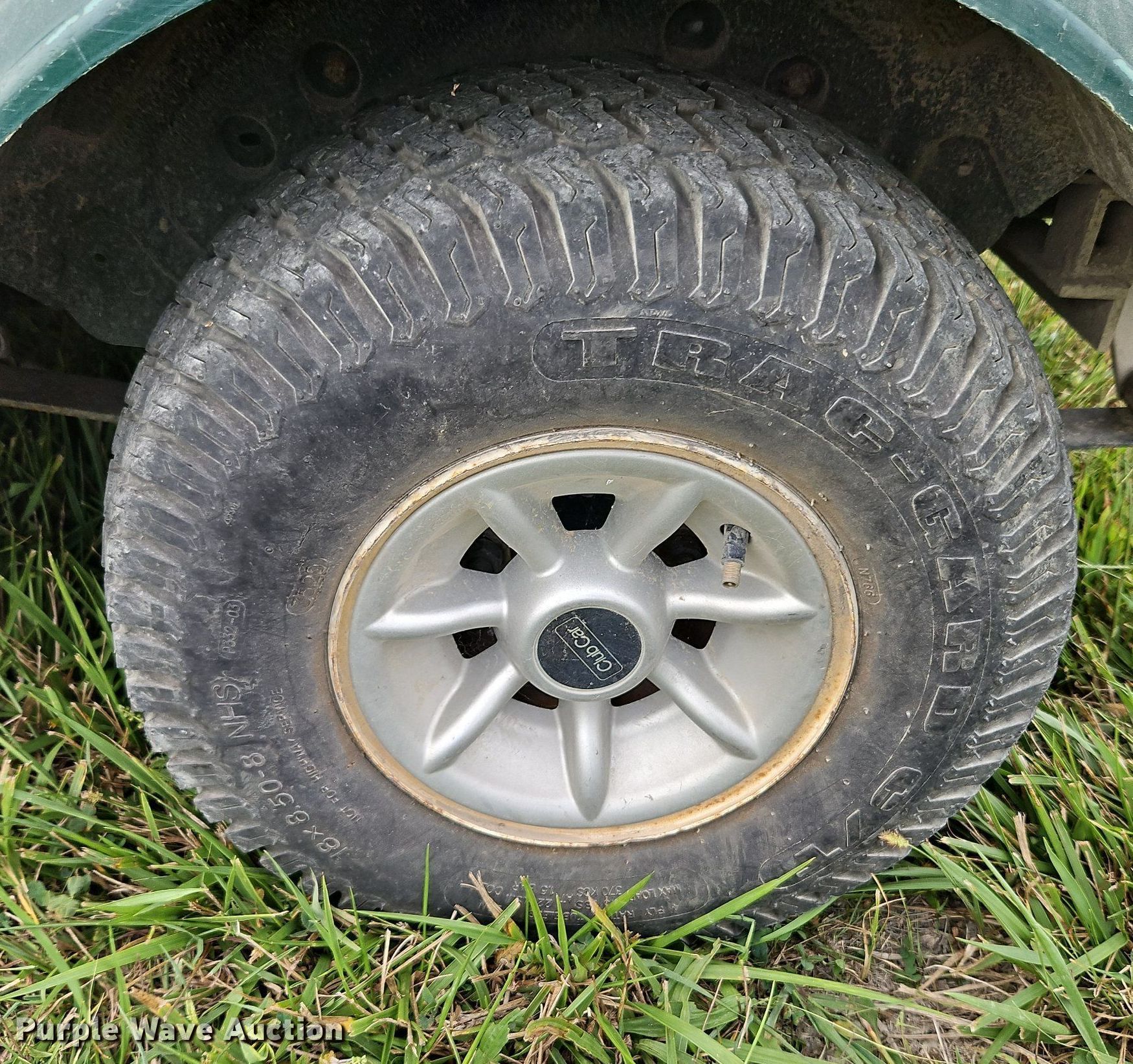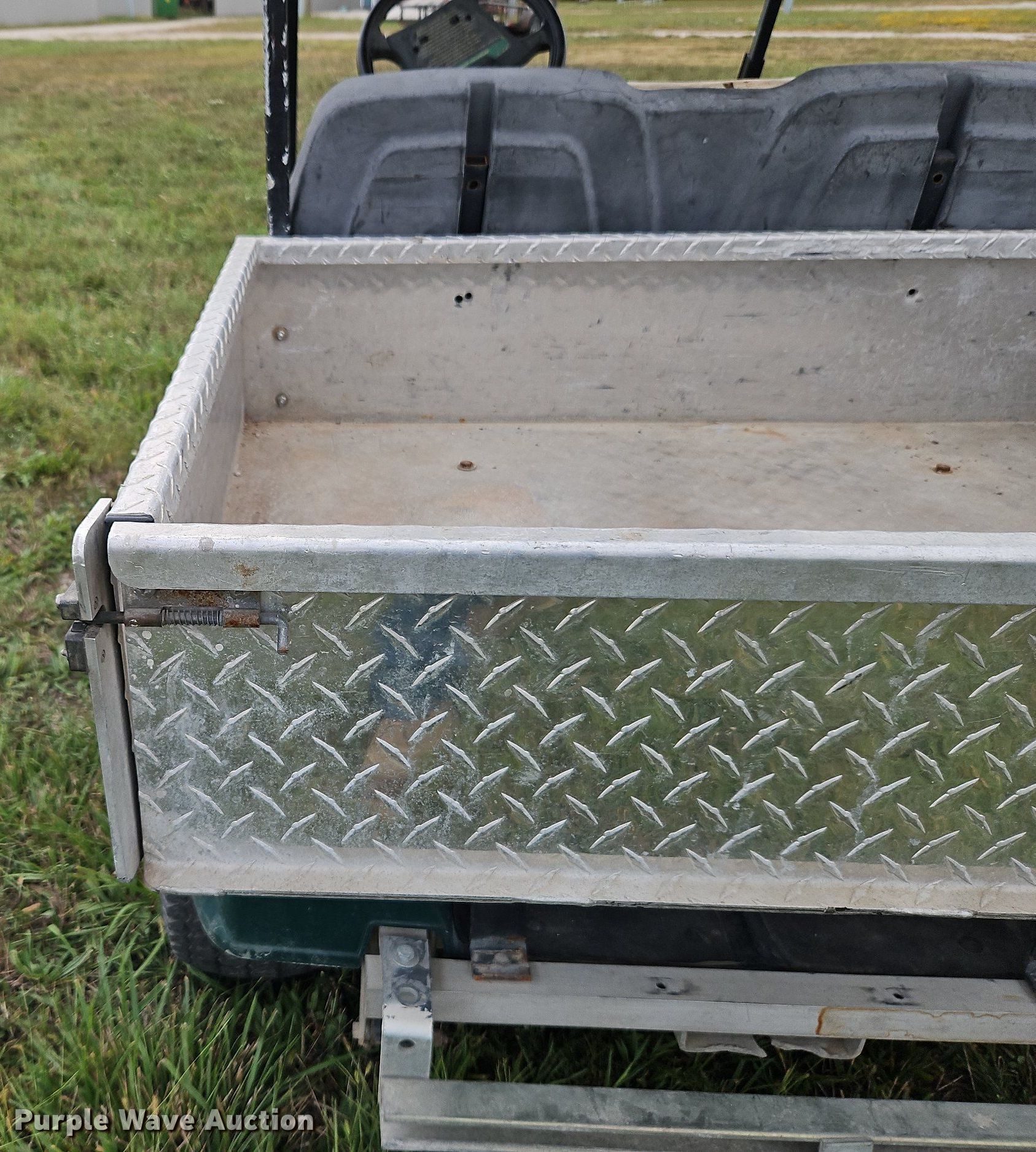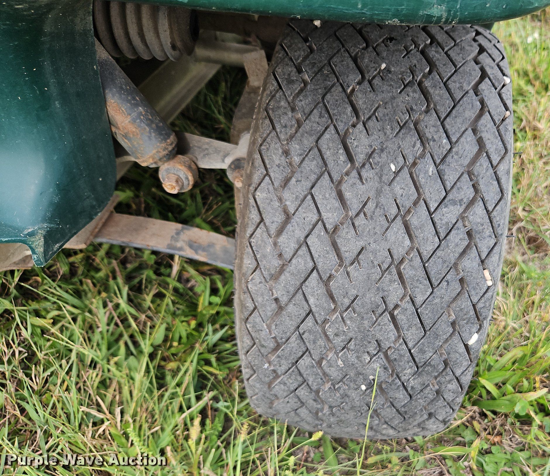 Club Car golf cart. Serial: AQ0339-328023. Electric Motor Volts: 48, Charger: Single phase. Transmission Automatic. Operators station Canopy. Features Box bed 31" L x 41" W. Tires Size: 18x8.50-8. Irrigation & Turf. Gas, KS 66749