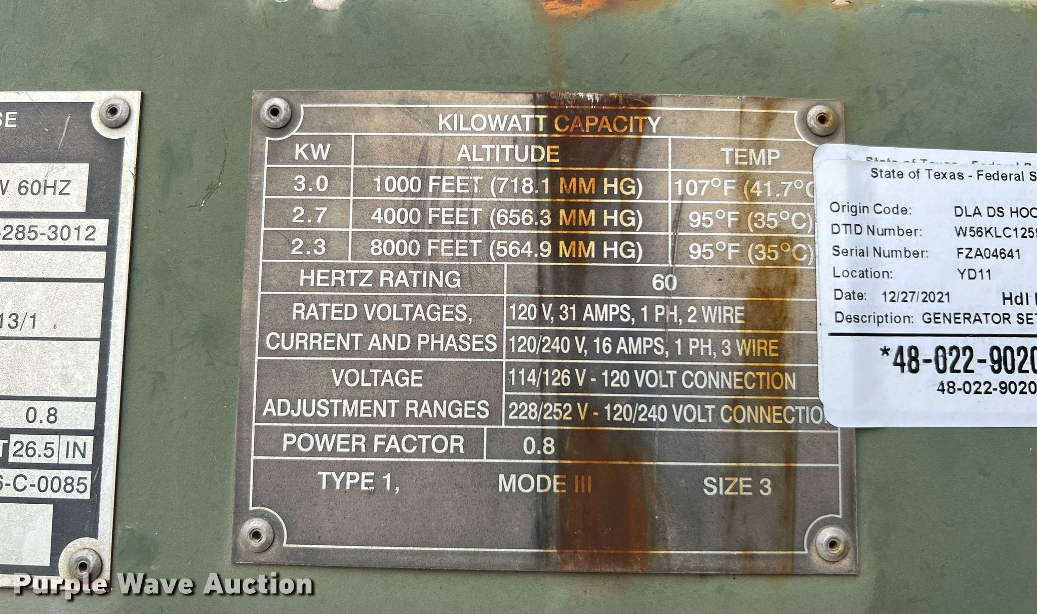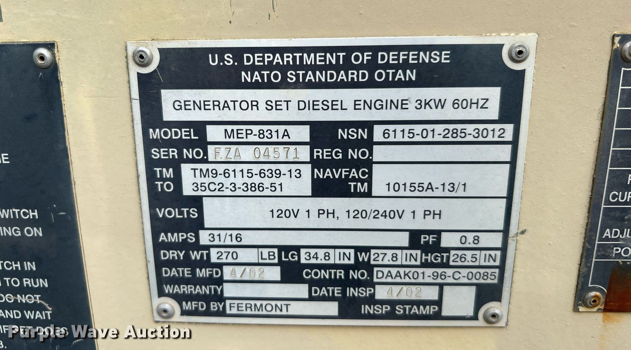 Purple Wave is selling a used Generator Set in Texas. This item is a (4) MEP-831A generators with the following: Yanmar, Cylinders: 1, Fuel type: Diesel