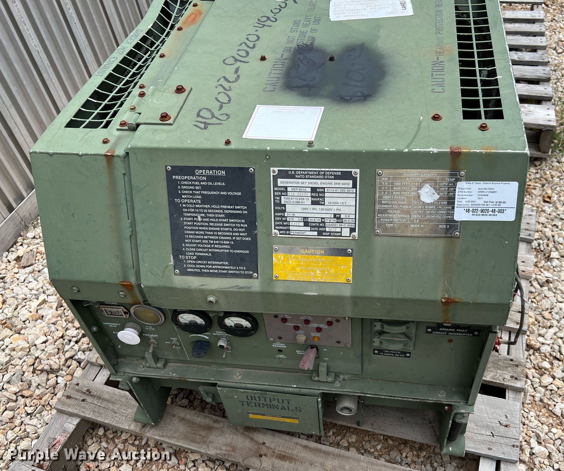 (4) MEP-831A generators has sold in New Braunfels, Texas for $1155. Item LU9812 sold on November 8th, 2023.