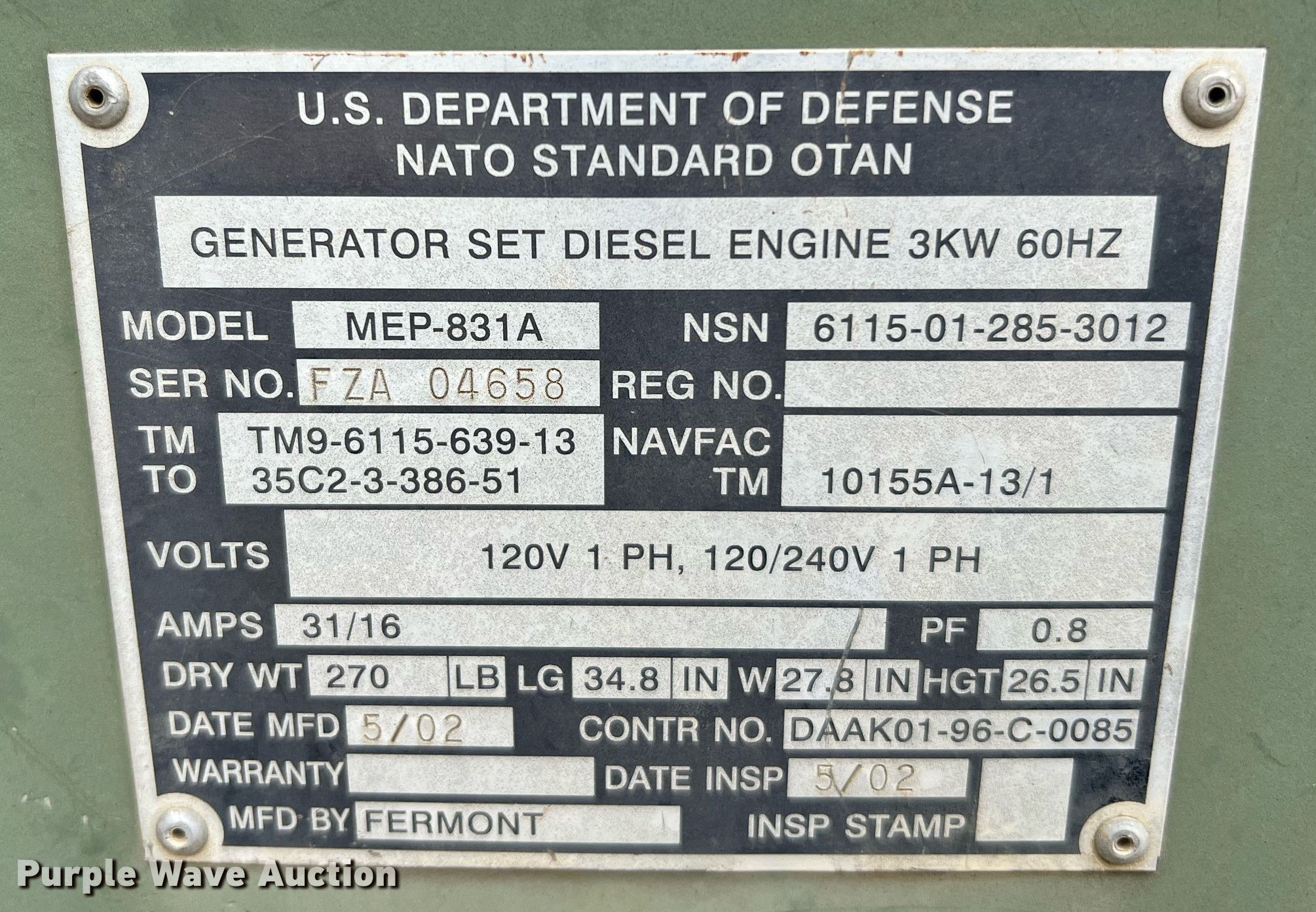 This (4) MEP-831A generators will sell to the highest bidder regardless of price.