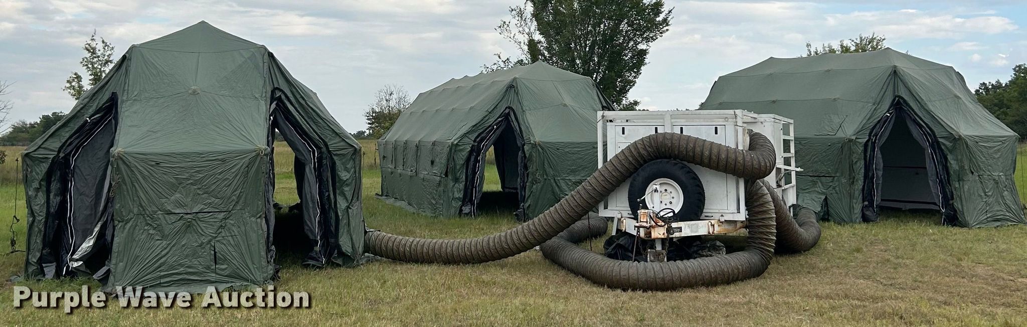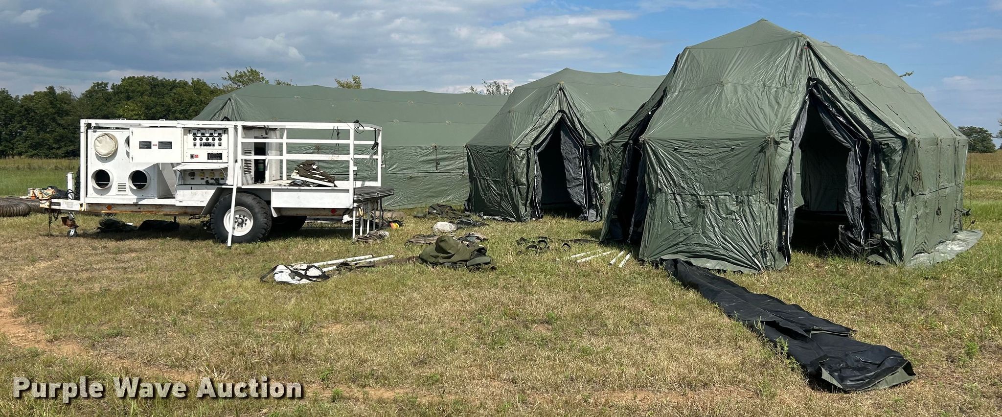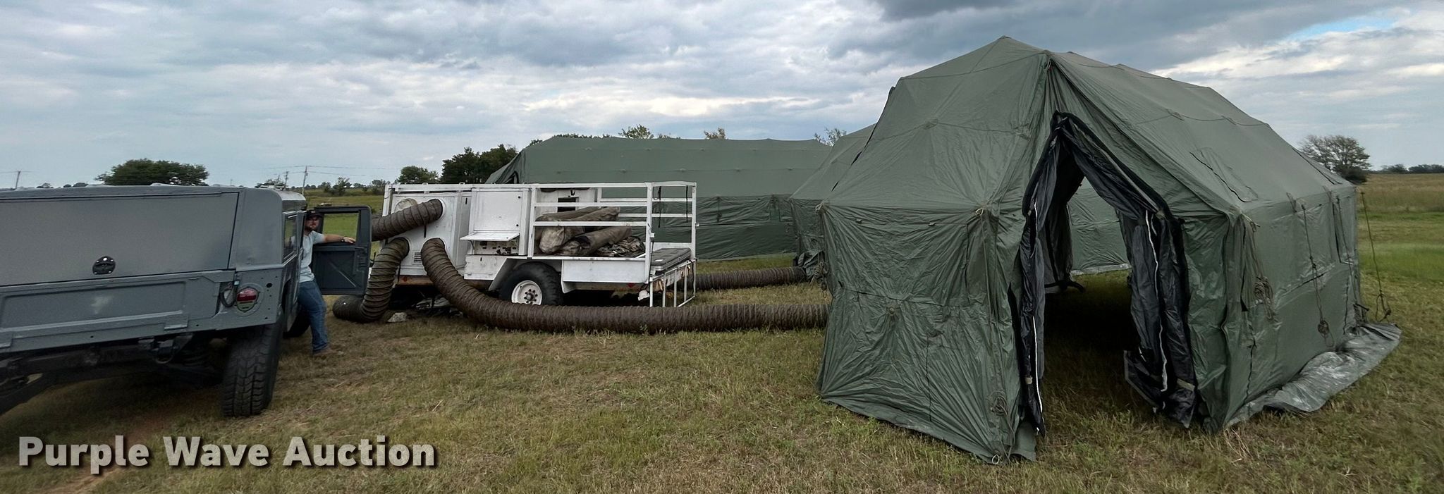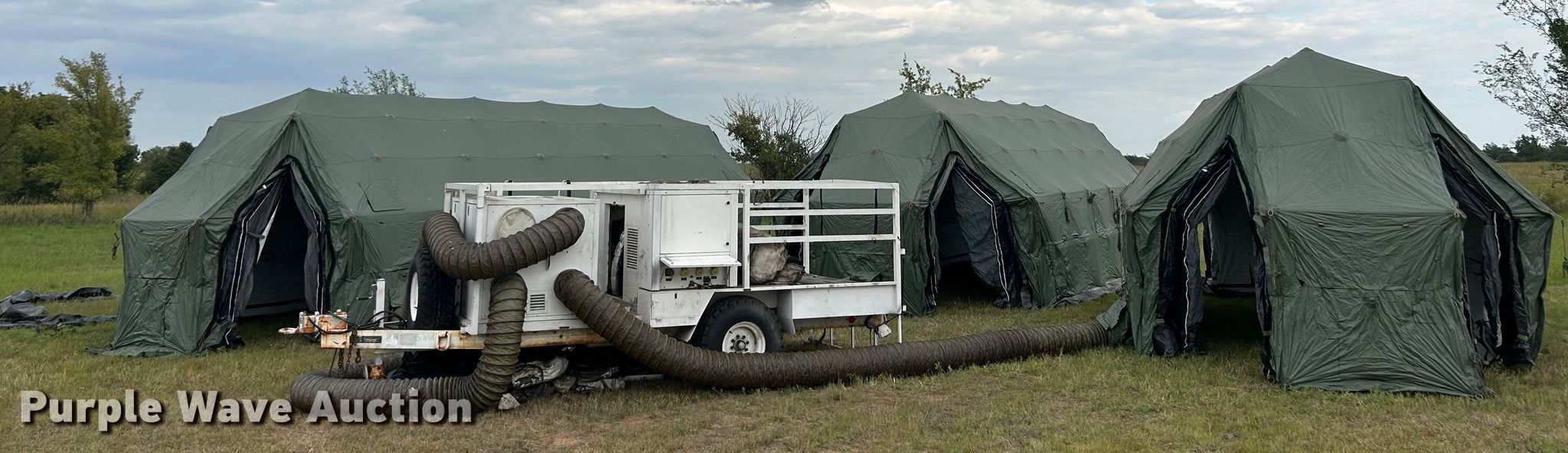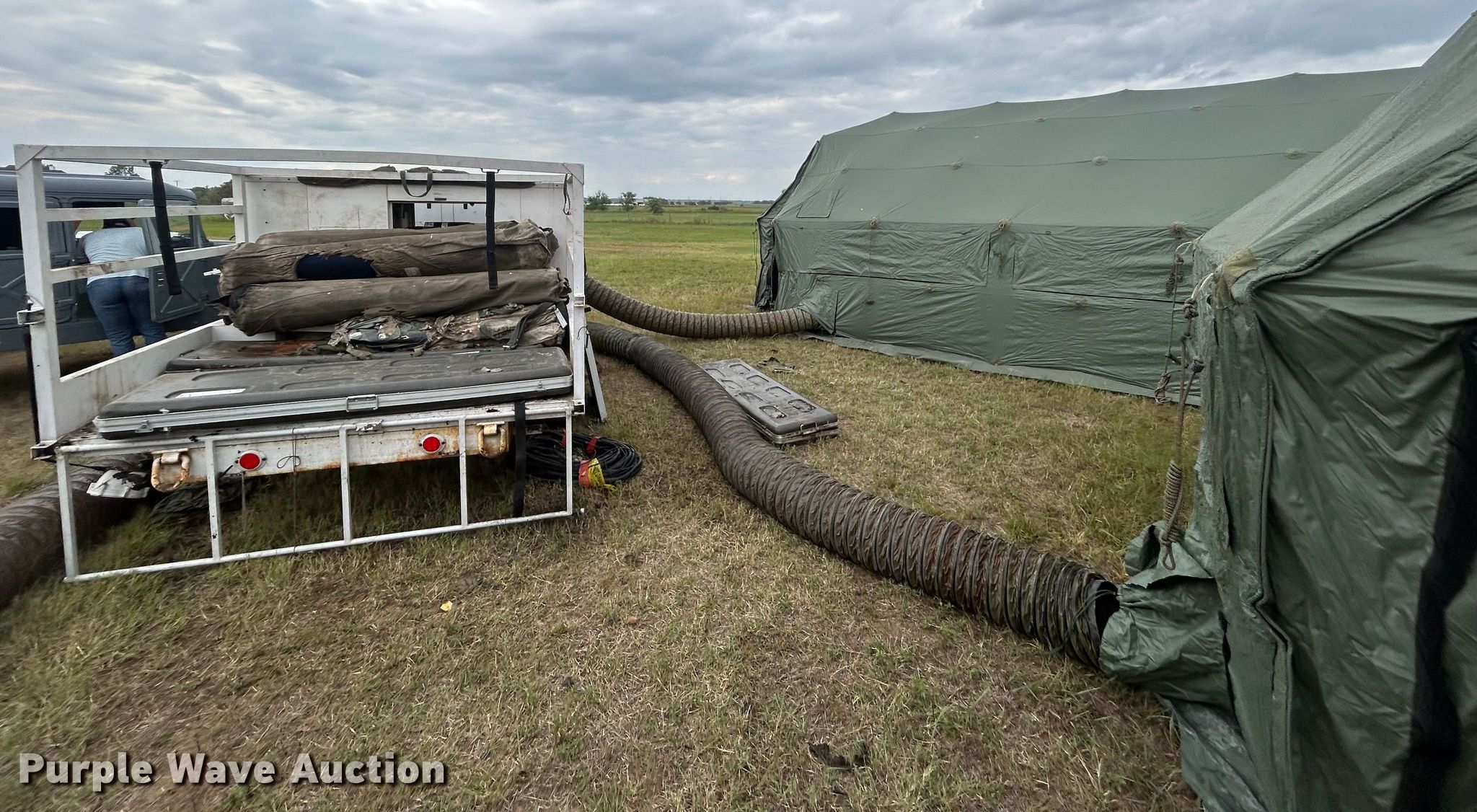 DHS Systems HP-4 DRASH trailer. Hours: 619 on meter, VIN: 196204A001MD. Dimensions Overall: 19' L x 85" W, Deck: 14' L x 81" W, Side height: 36". Features Deck type: Steel, Generator Volts: 120/208, Phase: Three, kW: 20, AC BTU cooling: 36,000, BTU heating: 3.5 kW. Chassis Hitch: Pintle, Landing gear: Single, Brakes: Electric, GVWR: 5,970 lbs. Tires Size: 36x12.50-16.5LT. Notes Contents included. This is worksite support equipment and will not come with a title. Transfer of ownership documentation will be a bill of sale. 15107 North 137th East Avenue. Collinsville, OK 74021