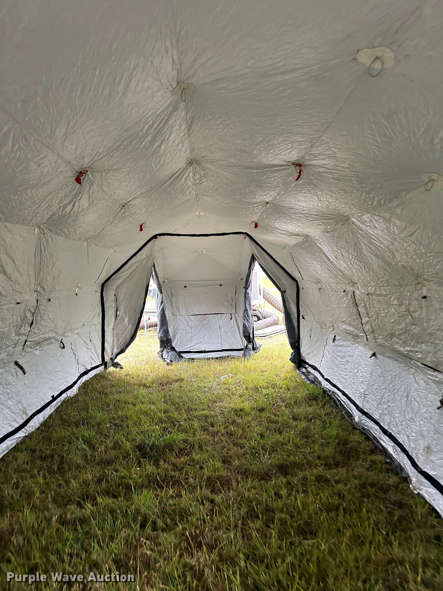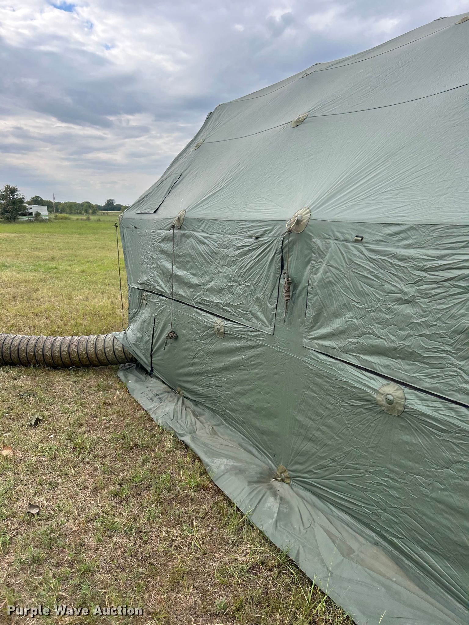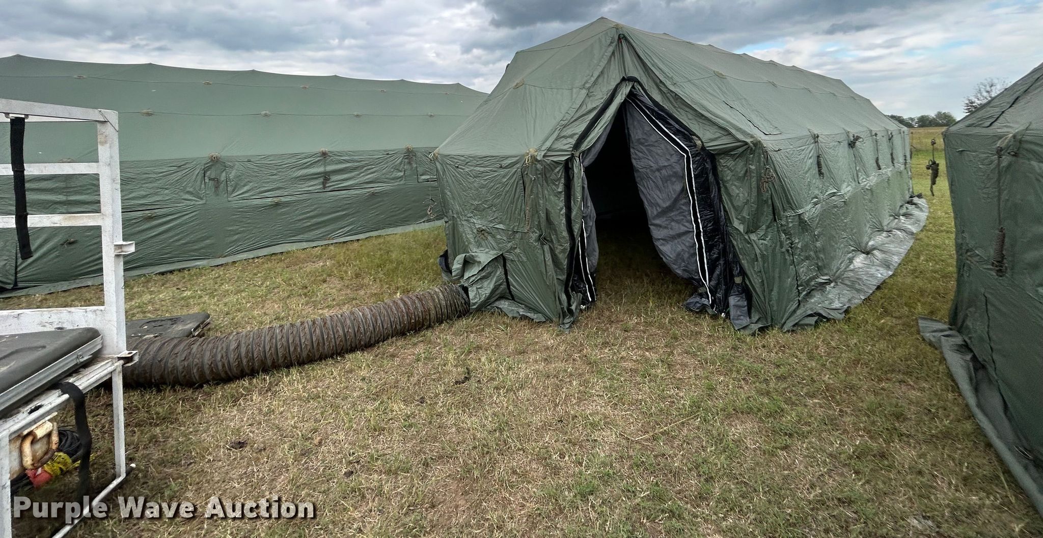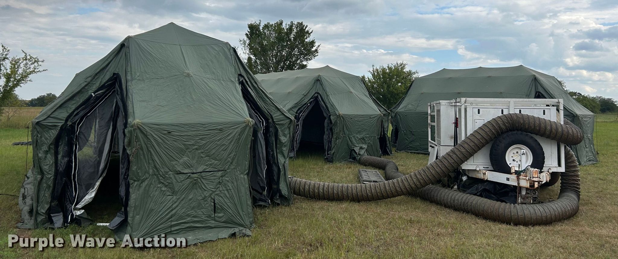 DHS Systems HP-4 DRASH trailer. Hours: 619 on meter, VIN: 196204A001MD. Dimensions Overall: 19' L x 85" W, Deck: 14' L x 81" W, Side height: 36". Features Deck type: Steel, Generator Volts: 120/208, Phase: Three, kW: 20, AC BTU cooling: 36,000, BTU heating: 3.5 kW. Chassis Hitch: Pintle, Landing gear: Single, Brakes: Electric, GVWR: 5,970 lbs. Tires Size: 36x12.50-16.5LT. Notes Contents included. This is worksite support equipment and will not come with a title. Transfer of ownership documentation will be a bill of sale. 15107 North 137th East Avenue. Collinsville, OK 74021