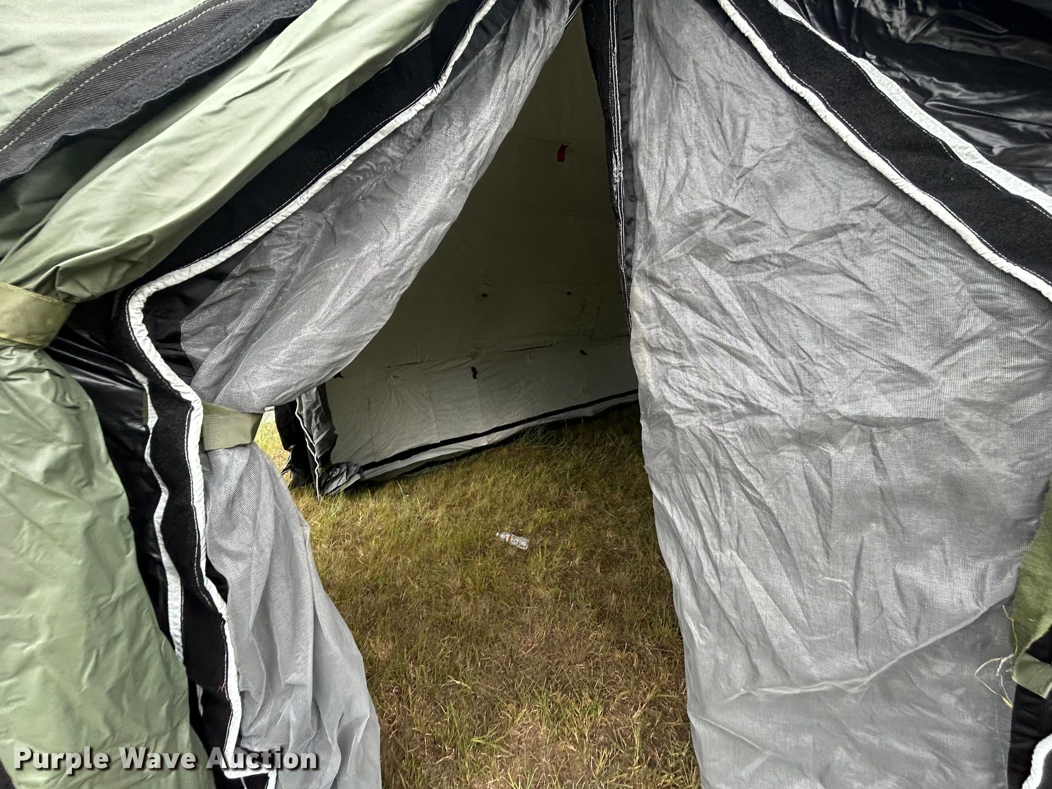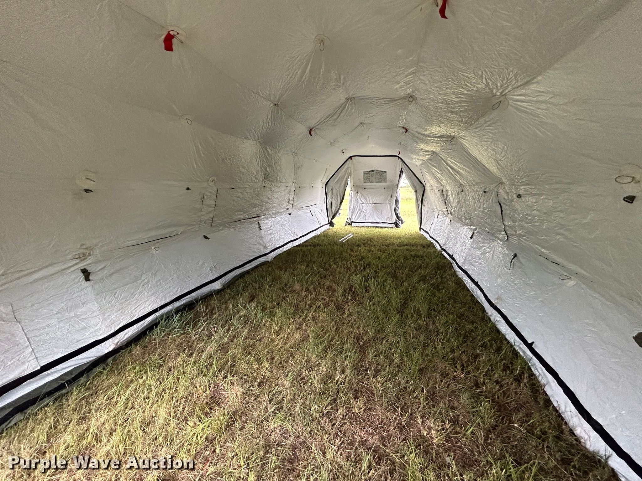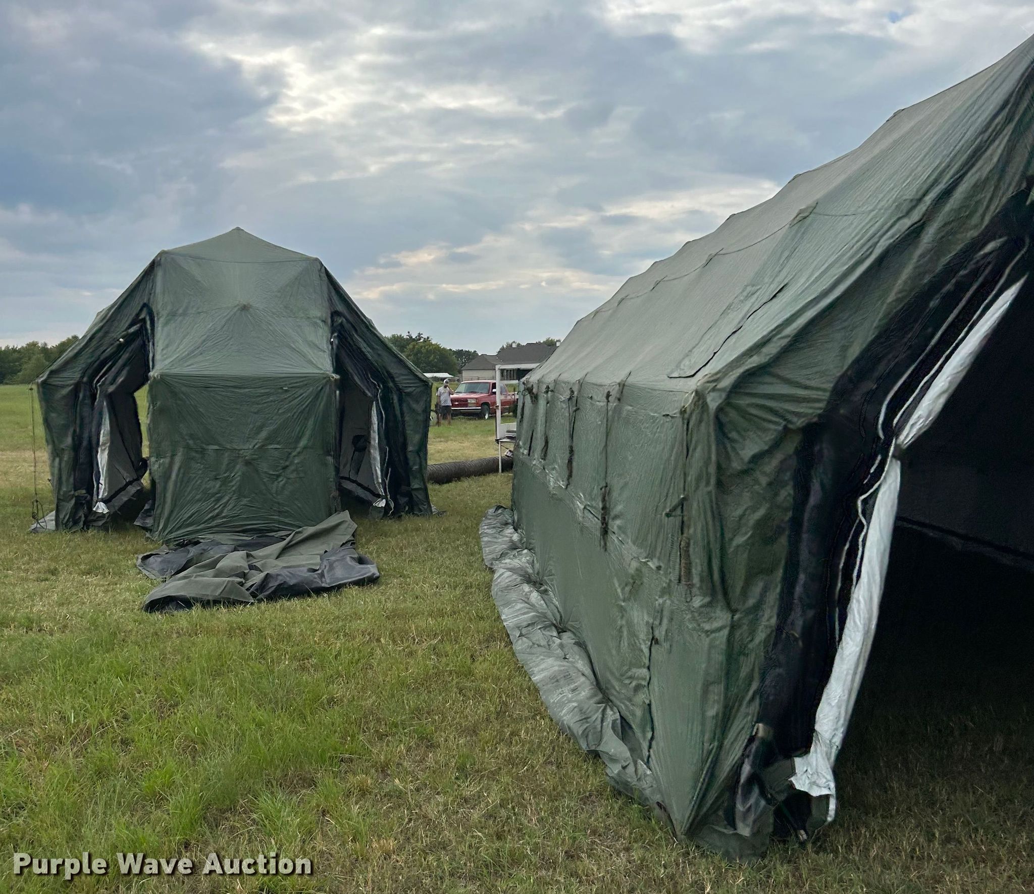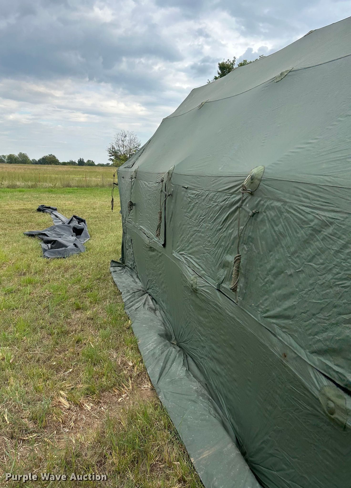 DHS Systems HP-4 DRASH trailer. Hours: 619 on meter, VIN: 196204A001MD. Dimensions Overall: 19' L x 85" W, Deck: 14' L x 81" W, Side height: 36". Features Deck type: Steel, Generator Volts: 120/208, Phase: Three, kW: 20, AC BTU cooling: 36,000, BTU heating: 3.5 kW. Chassis Hitch: Pintle, Landing gear: Single, Brakes: Electric, GVWR: 5,970 lbs. Tires Size: 36x12.50-16.5LT. Notes Contents included. This is worksite support equipment and will not come with a title. Transfer of ownership documentation will be a bill of sale. 15107 North 137th East Avenue. Collinsville, OK 74021