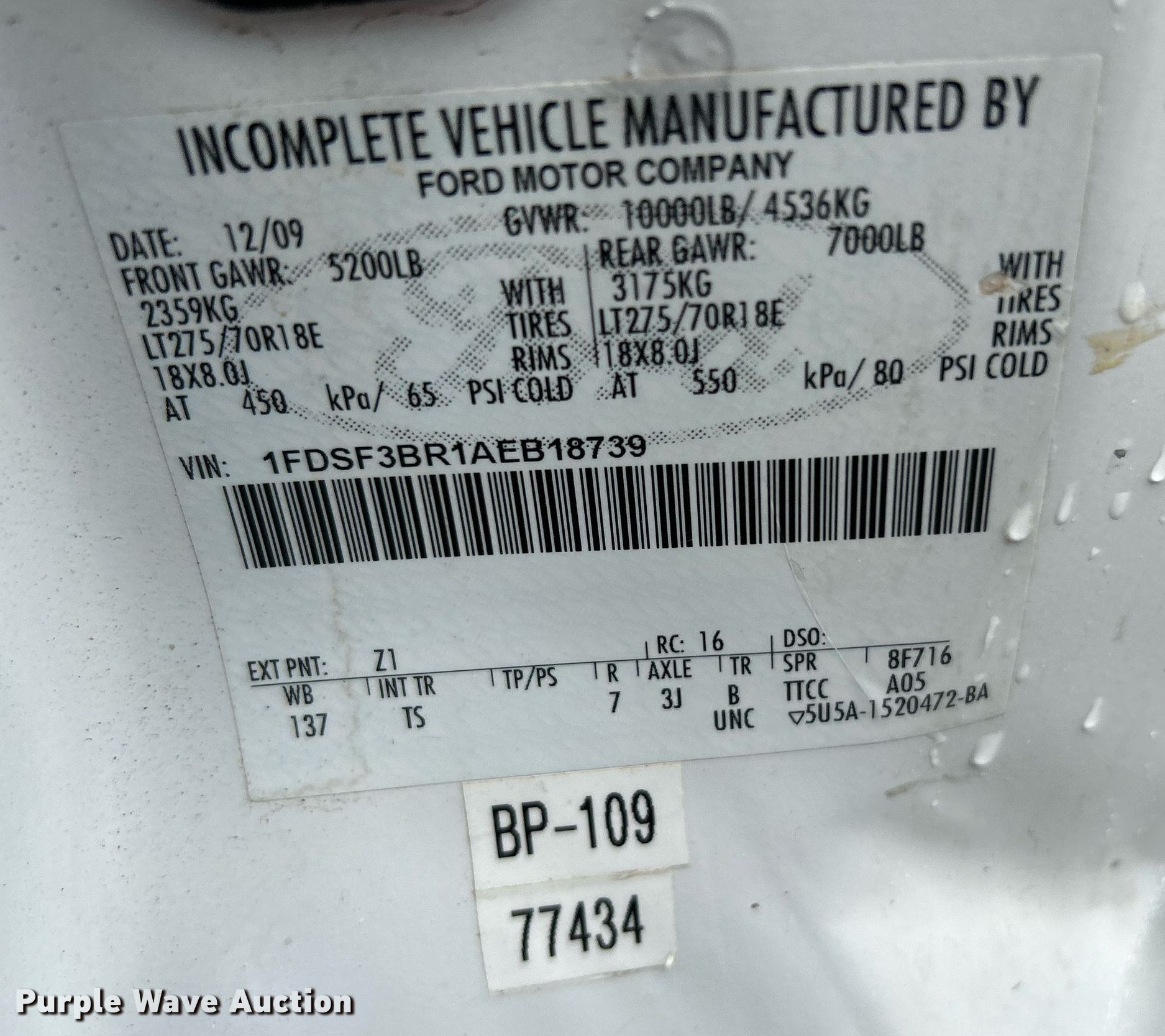 - VIN: 1FDSF3BR1AEB18739