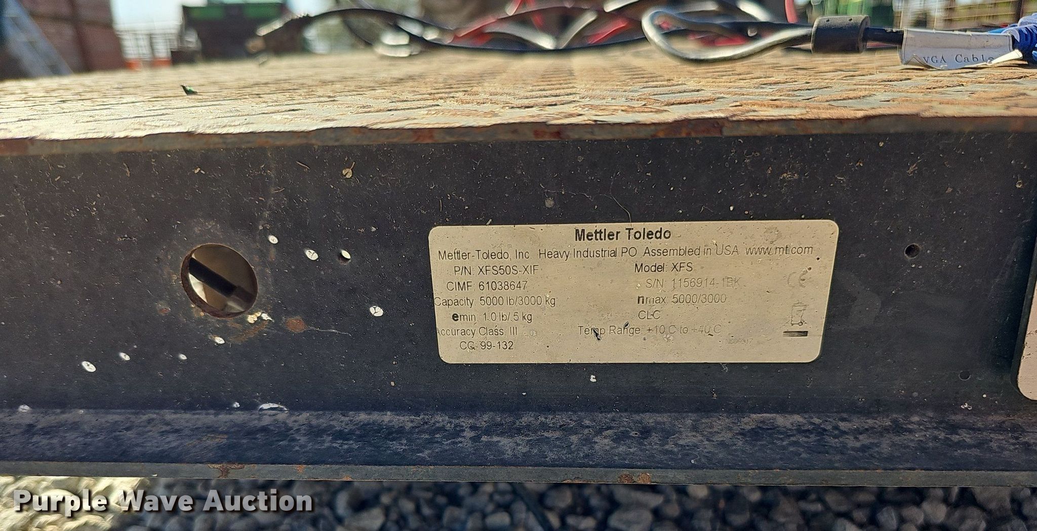 Mettler Toledo XFS scale. Serial: 1156914-1BK. Features Rice Lake IQ+355-2A Digital readout, Serial: 181804, Capacity: 5,000lbs , 48" W x 48" L. Fisher Concrete. 1211 E 14th St. Falls City, NE 68355