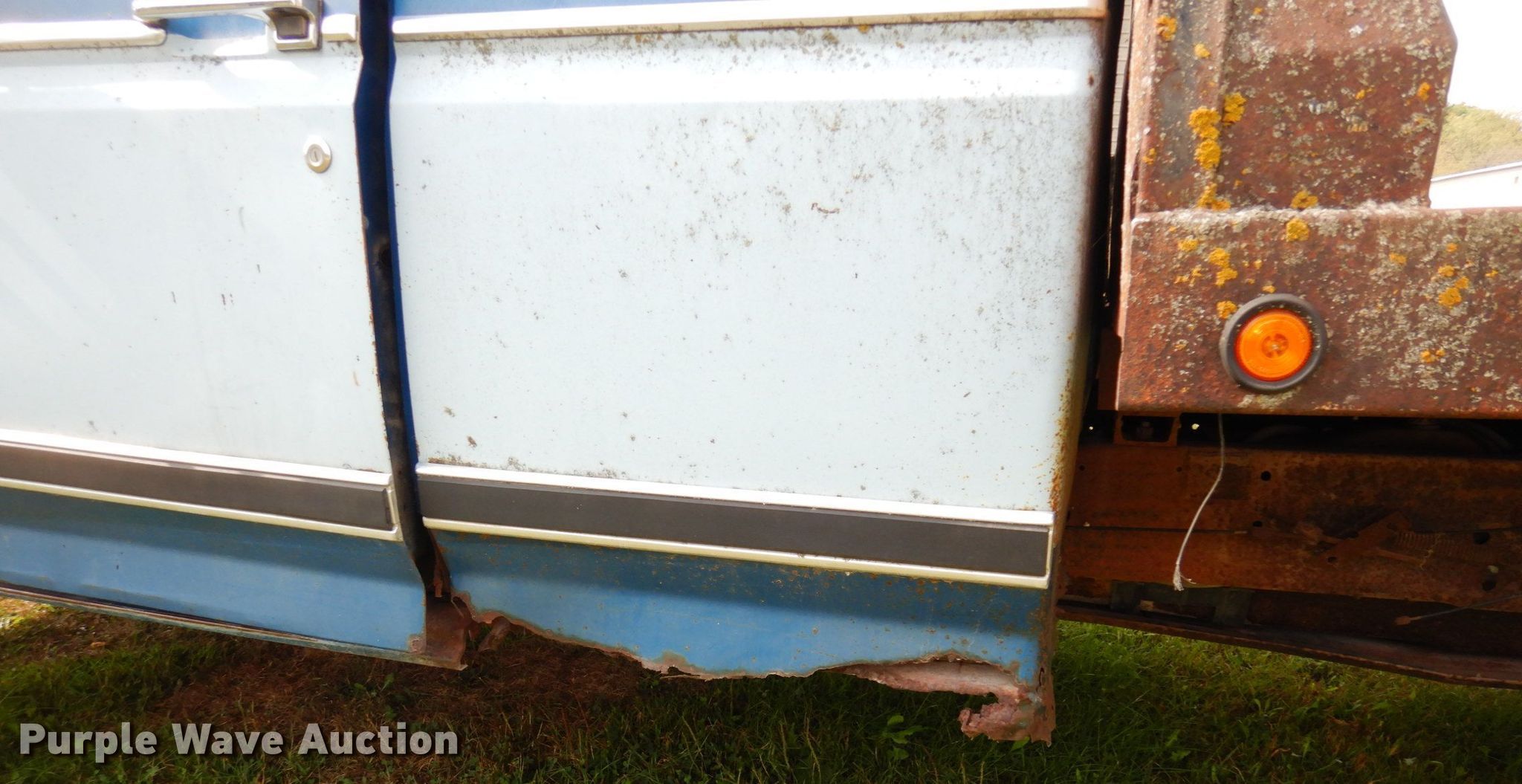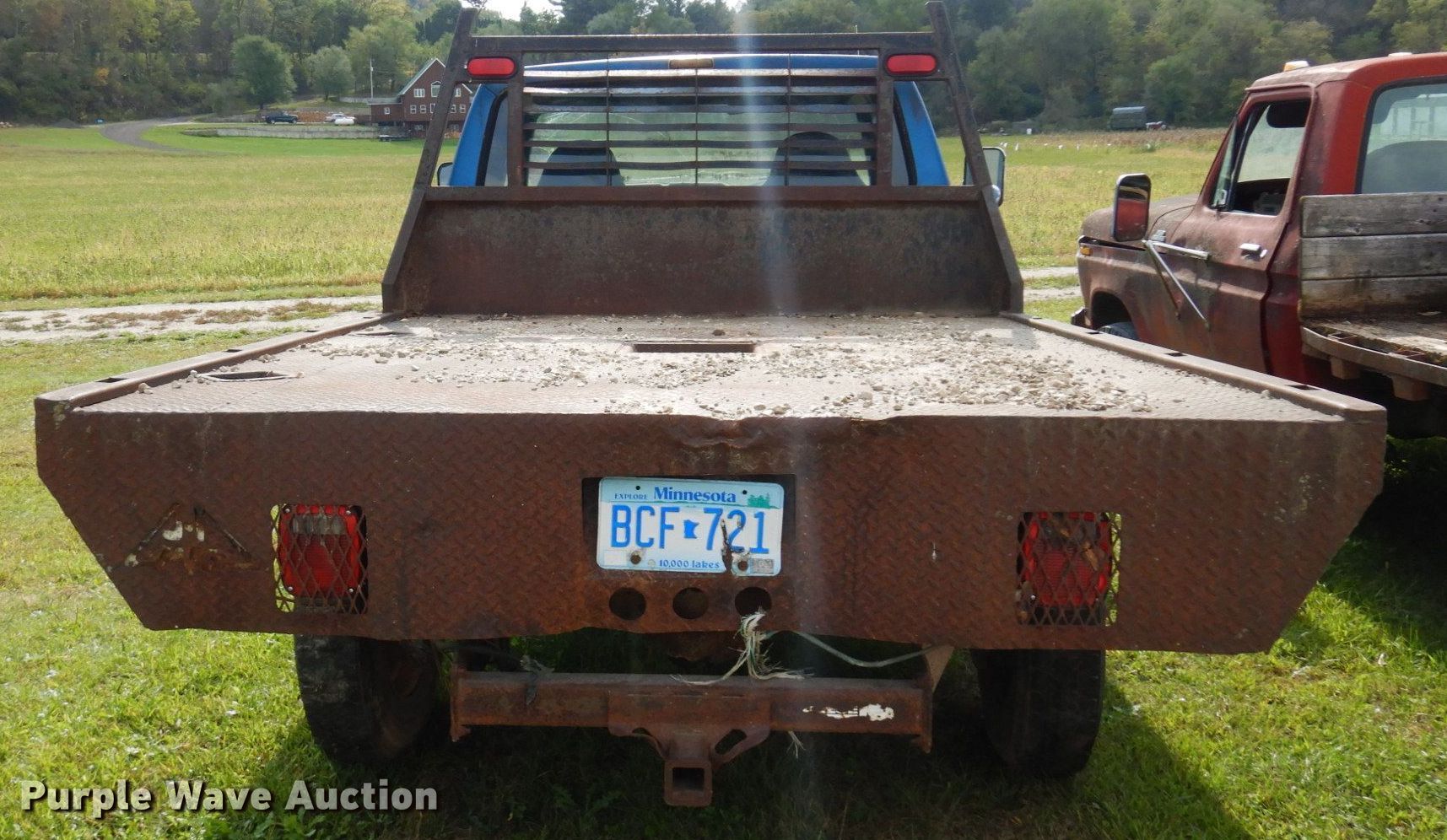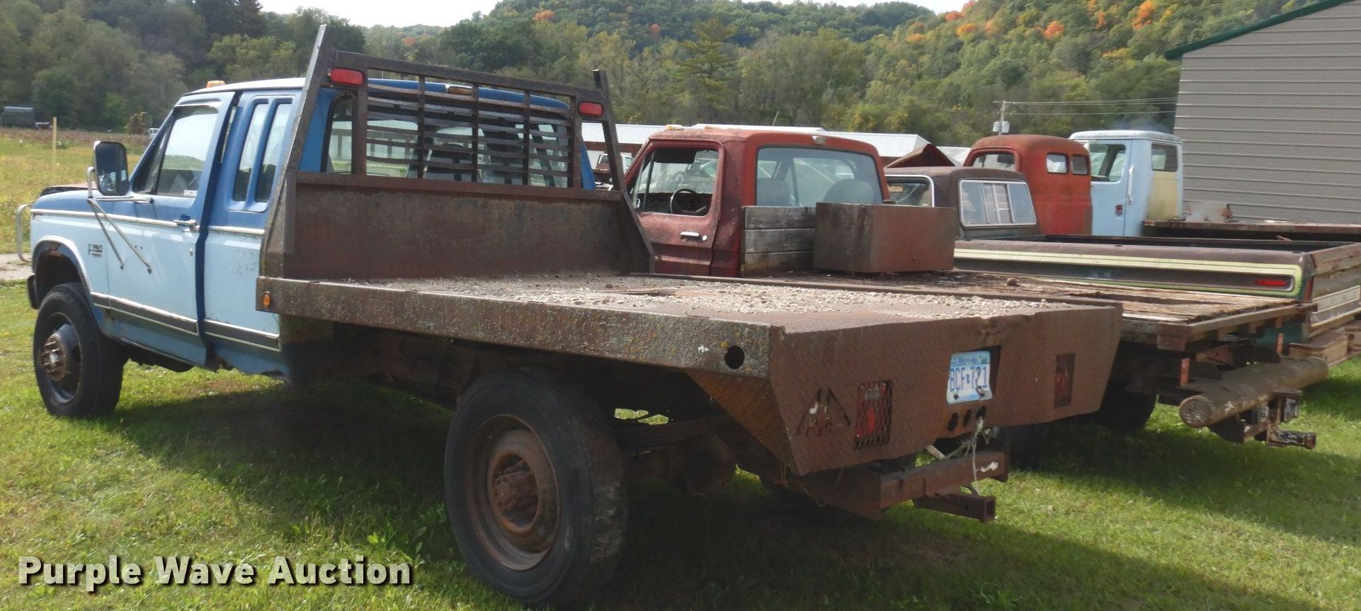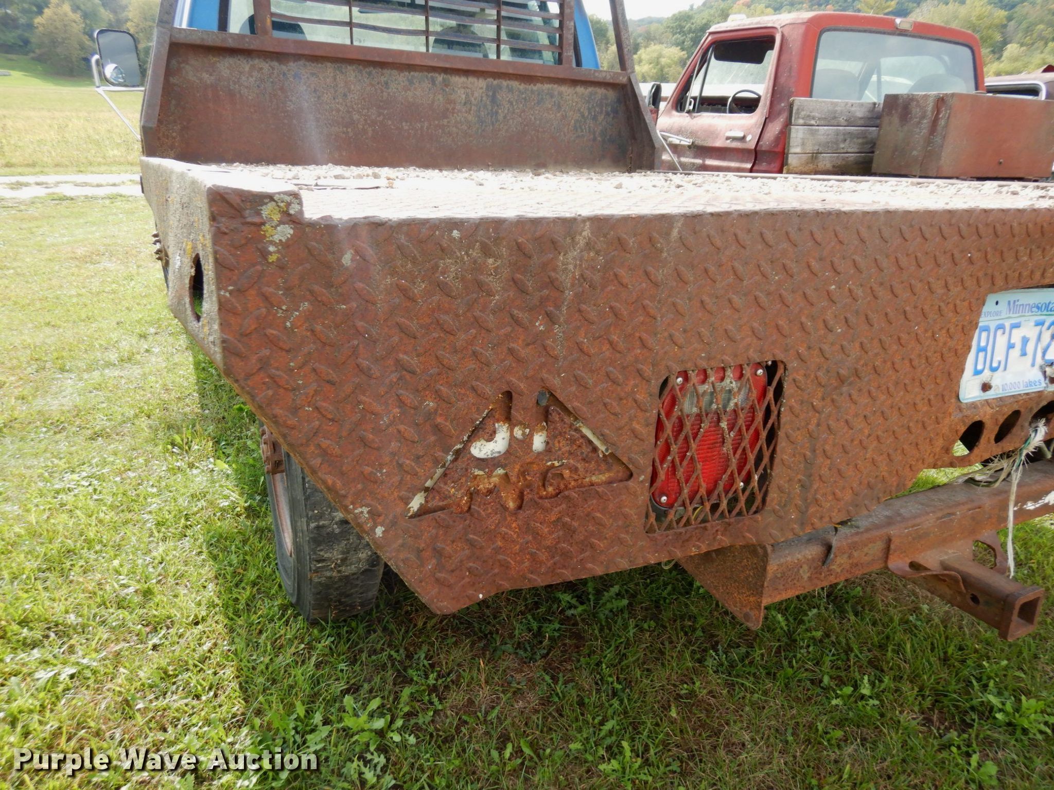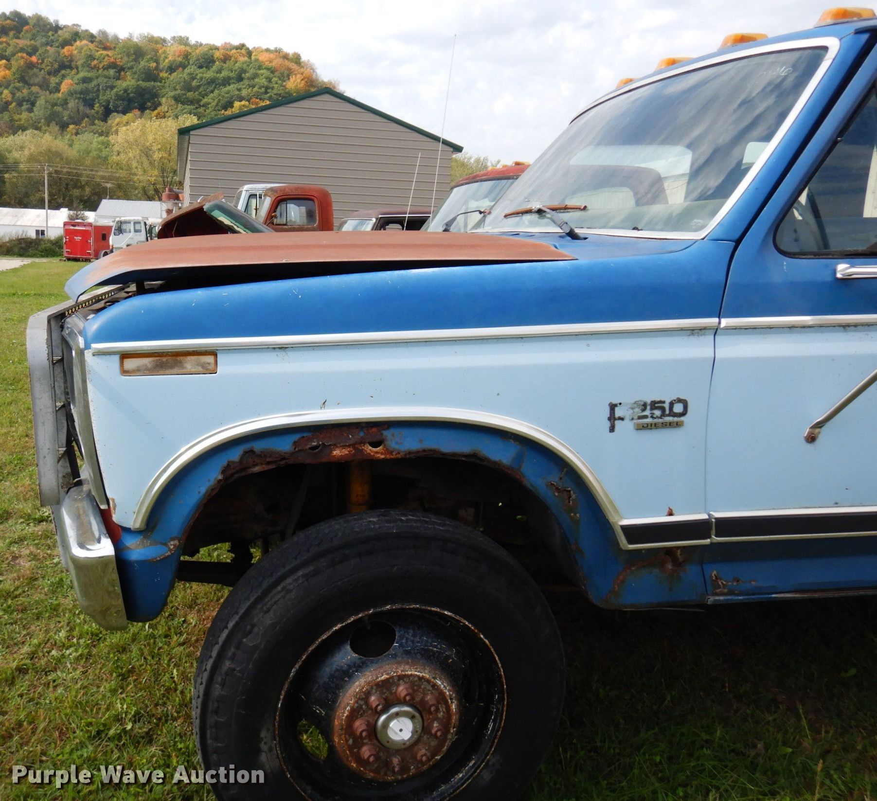 1984 Ford F250 SuperCab flatbed pickup truck. Miles: 43,723 on odometer, VIN: 1FTHX2612EKA67964. Engine Displacement: 6.9L V8 OHV, Cylinders: 8, Fuel type: Diesel. Transmission Manual, Speed: 4, Four wheel drive. Interior AC, Heat. Features Flatbed 8' 6" L x 7' 2" W, Hitch: Gooseneck. Tires Size: 8-19.5, Size: same. Notes Windshield chipped or cracked, Dead battery, Non-operational unit. Minnesota title. Title distribution may be delayed up to 30 days from verification of funds. Peterson, MN 55962