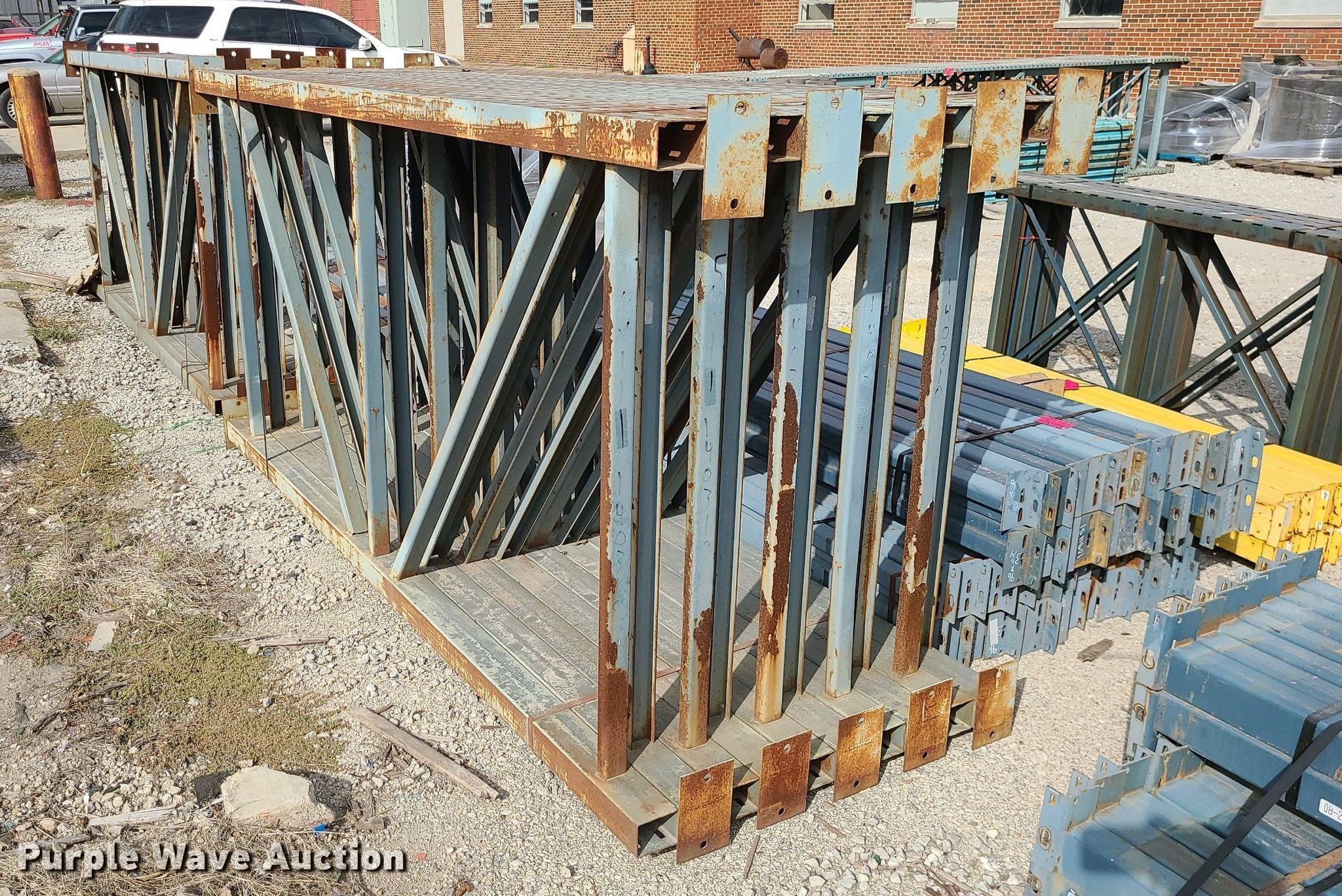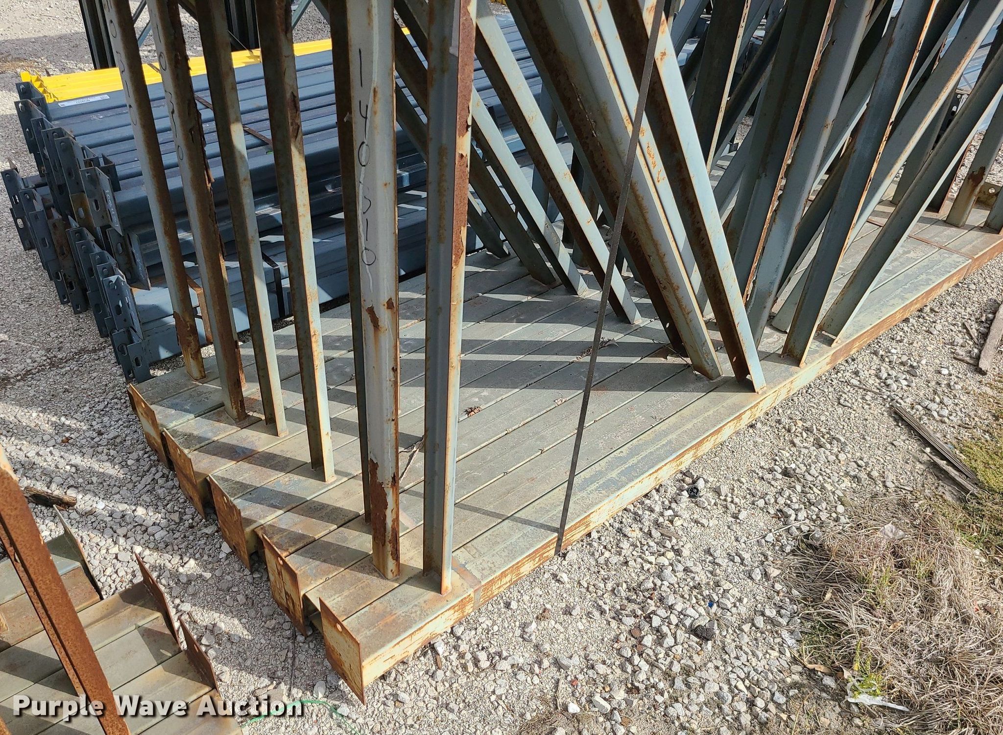 Purple Wave is selling a used Pallet Racking in Missouri. This item is a Pallet racking with the following: (44) 96" cross beams, (10) 54" x 112" uprights, Unit #: 864785
