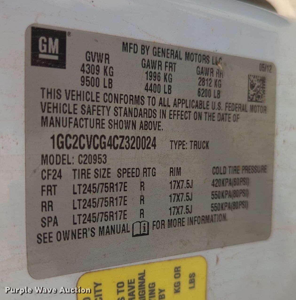 - VIN: 1GC2CVCG4CZ320024