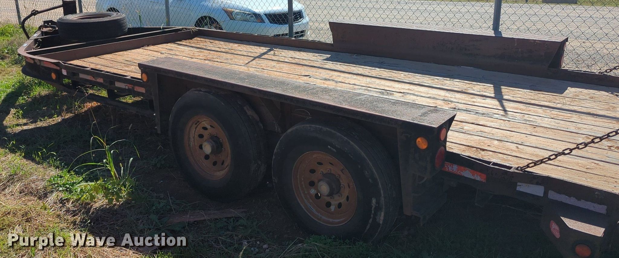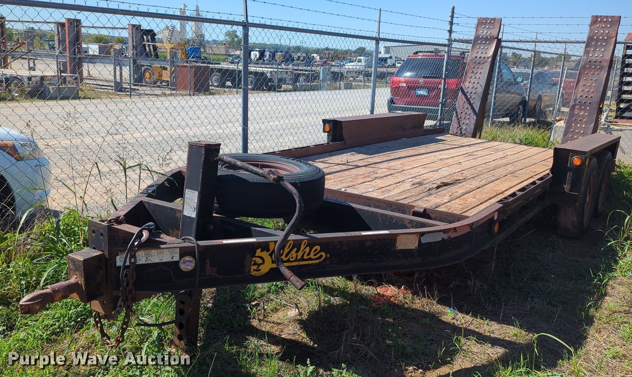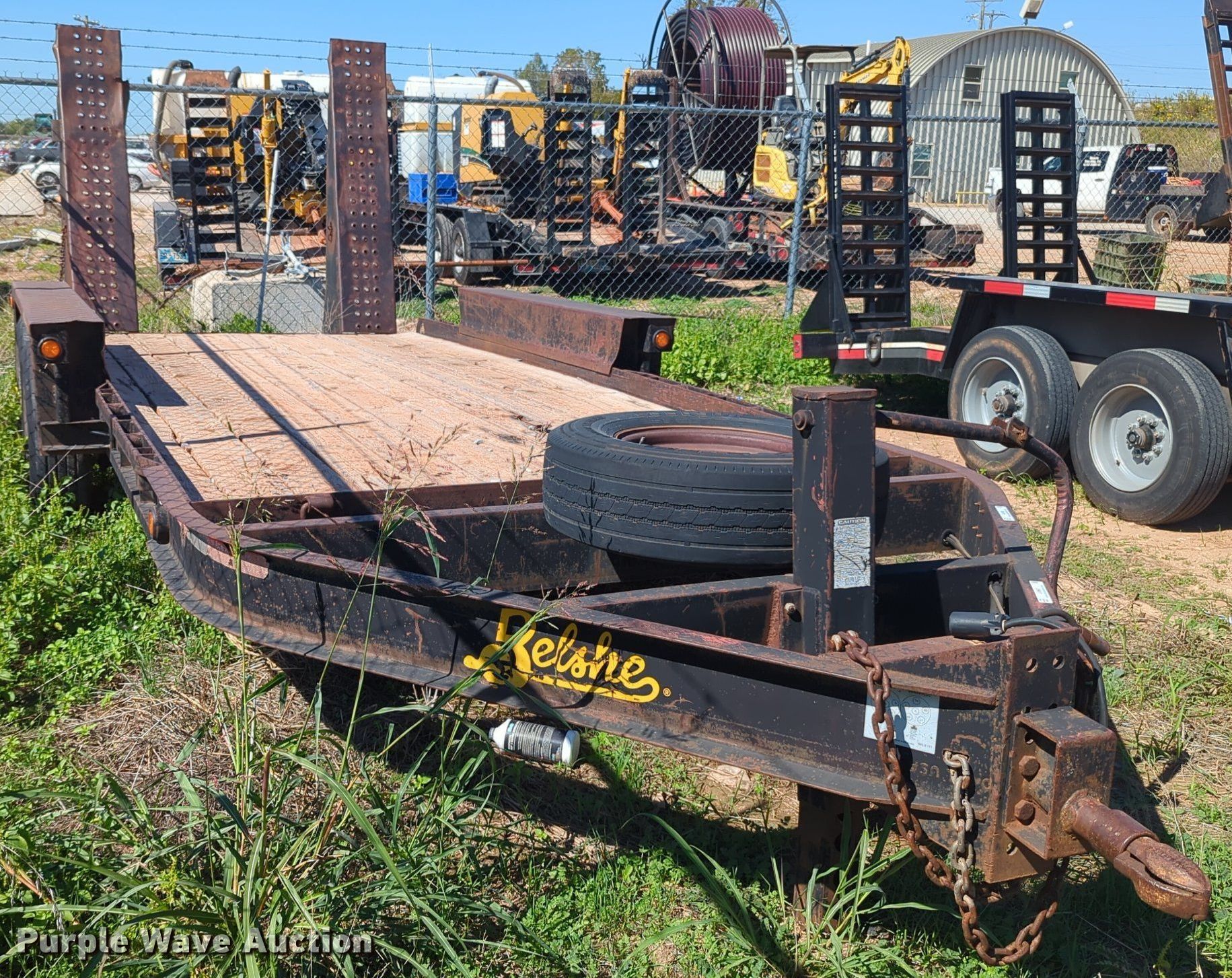 2013 Belshe WB12 equipment trailer. VIN: 16JF01624D1047465. Dimensions Overall: 22' L x 102" W, Deck: 16' L x 80" W, Ramps: Manual Length: 70". Features Deck type: Wood. Chassis Ball hitch: 2 5/16", Landing gear: Single, Suspension: Spring, Brakes: Electric, Axles: Tandem, GVWR: 12,000 lbs. Tires Size: 235/80R16. Oklahoma title. Title distribution may be delayed up to 14 days from verification of funds. Hudson Trenching Service Inc. 14410 S Meridian Ave. Oklahoma, OK 73173