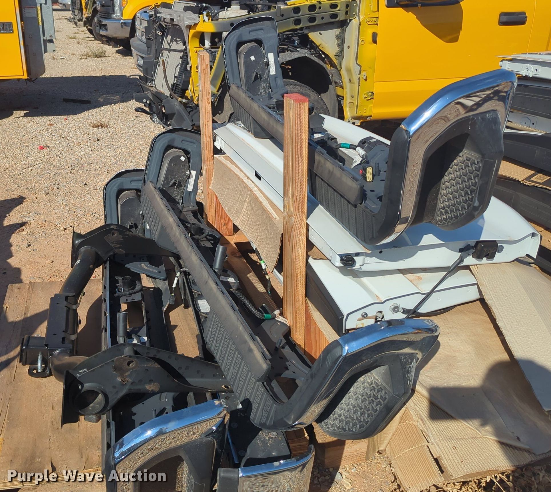 Purple Wave is selling a used Automotive Parts or Acces. in Oklahoma. This item is a Automotive parts with the following: (4) tailgates, (2) Chevrolet, (2) Ford, (4) bumpers, (2) Chevrolet, (2) Ford