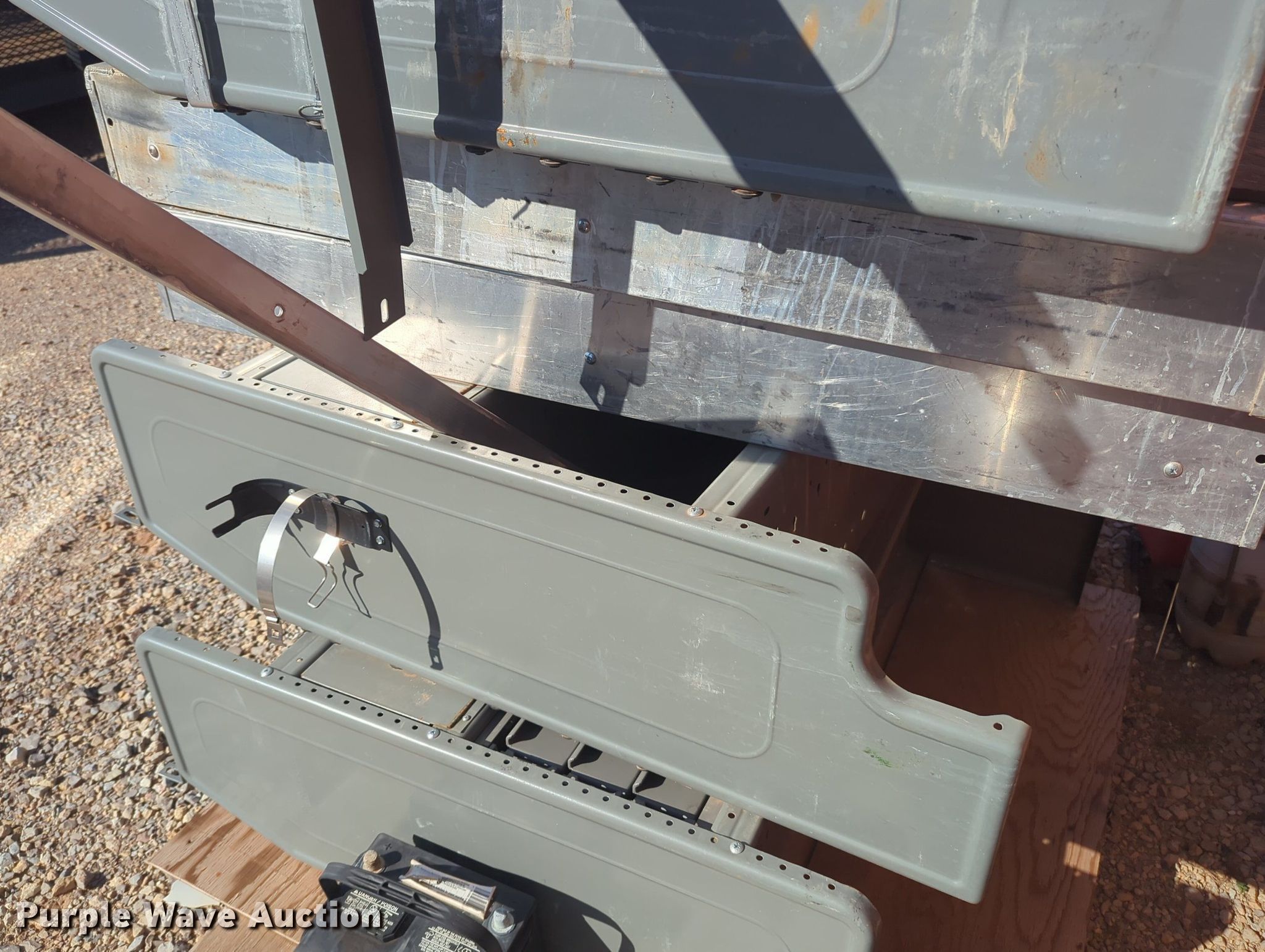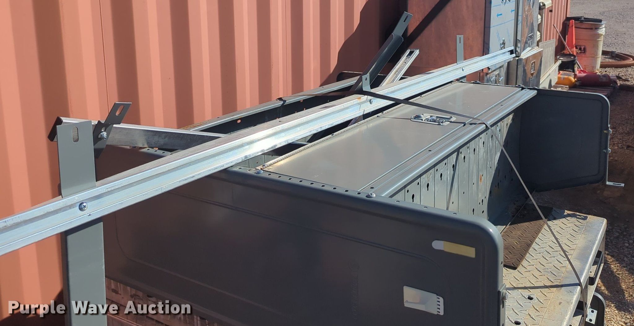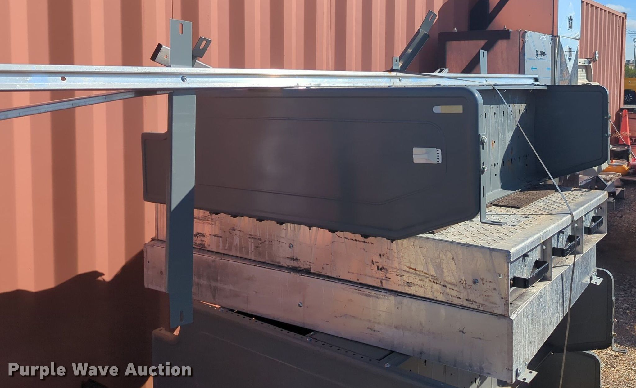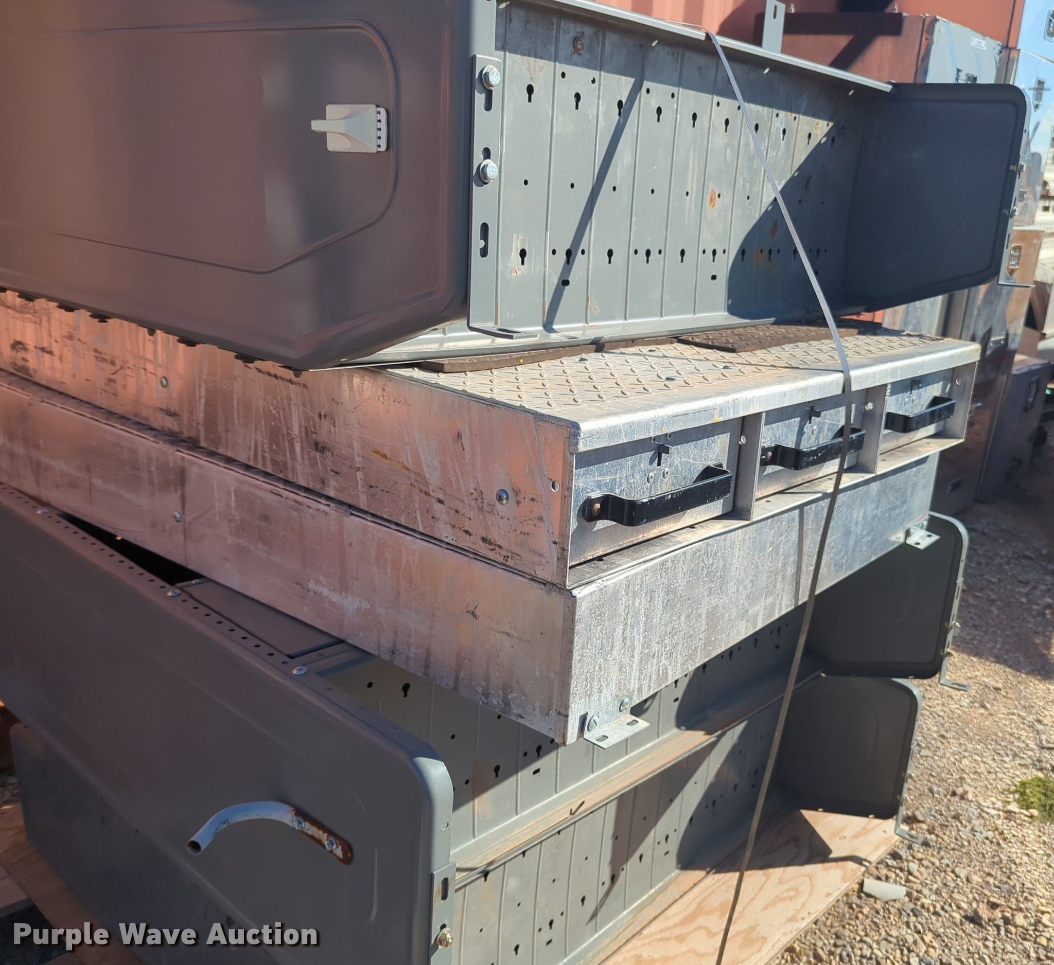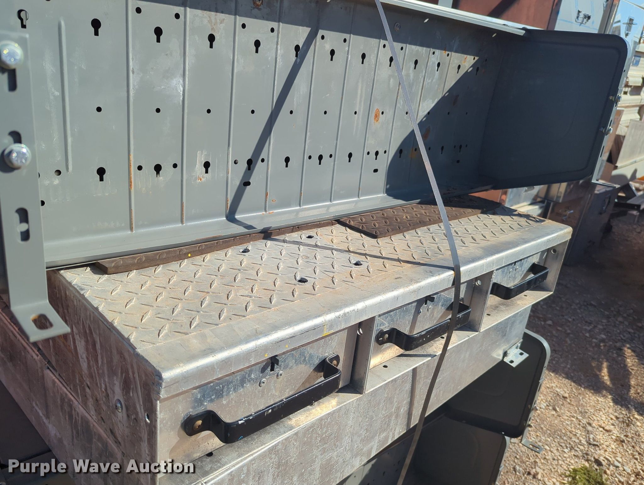 Purple Wave is selling a used Automotive Parts or Acces. in Oklahoma. This item is a Automotive parts with the following: (2) toolboxes, (3) shelves