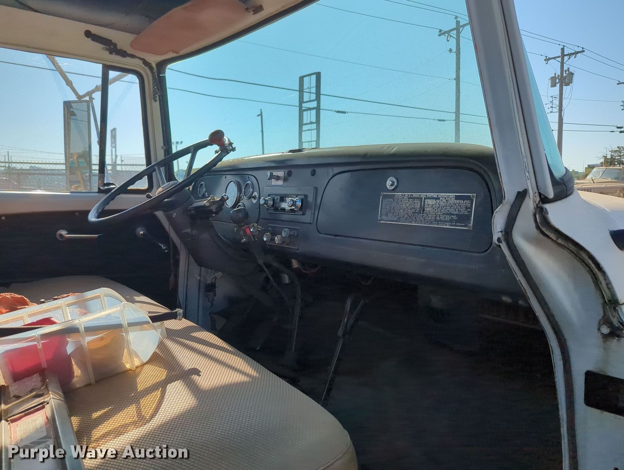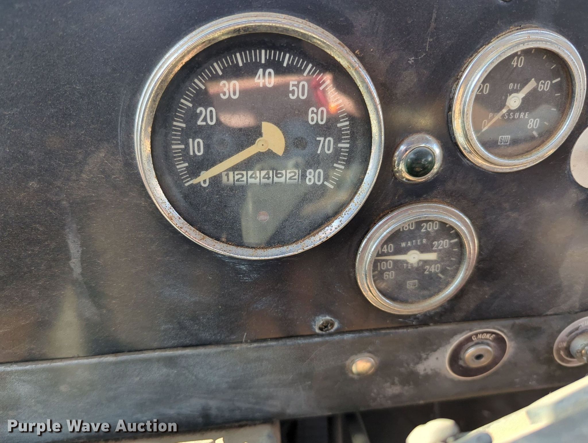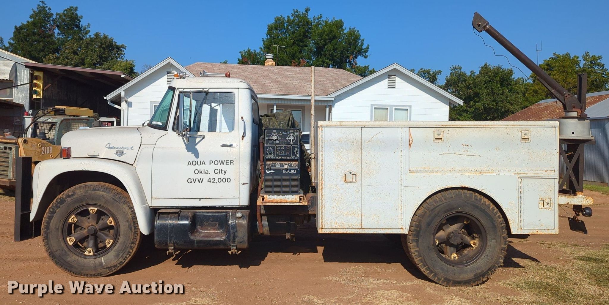 International Loadstar 1800 utility / service truck. Miles: 124,462 on odometer, VIN: 416080G389072. Engine Cylinders: 8, Fuel type: Gas. Transmission Manual, Speed: 4, plus 2. Chassis Axles: Single, Suspension: Spring, Brakes: Hydraulic. Features Bed 8' L x 80" W, Welder/generator Miller Bobcat 225G, Fuel type: Gas, 240V outlets: 2, 120V outlets: 4, Air compressor Briggs & Stratton, Crane Auto Crane CA42. Tires Size: 9.00-20. Notes Unknown operating condition. Oklahoma title. Title distribution may be delayed up to 14 days from verification of funds. 7501 Bryant Avenue. Oklahoma City, OK 73121
