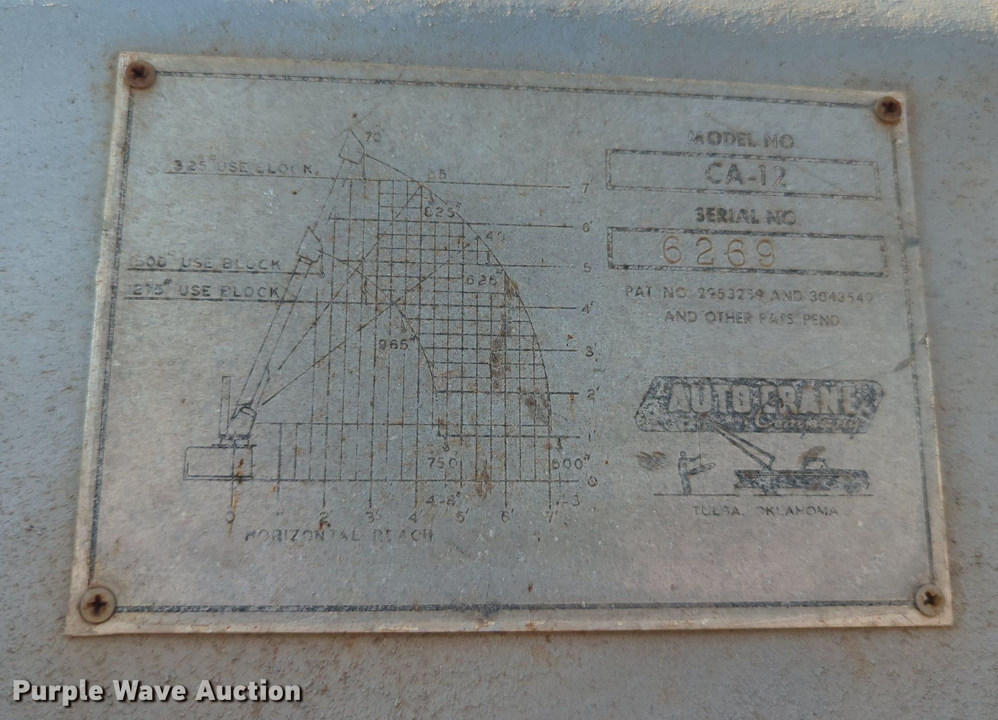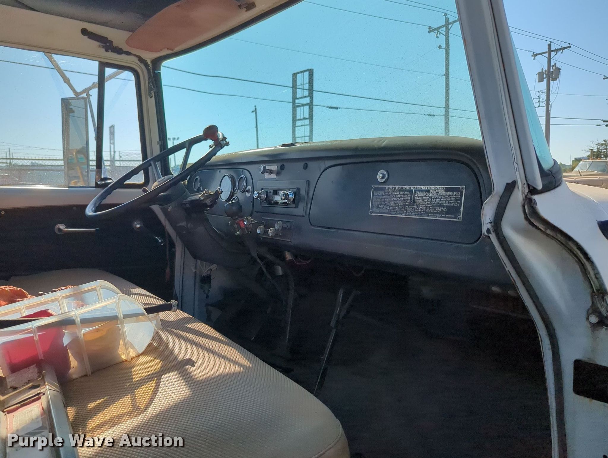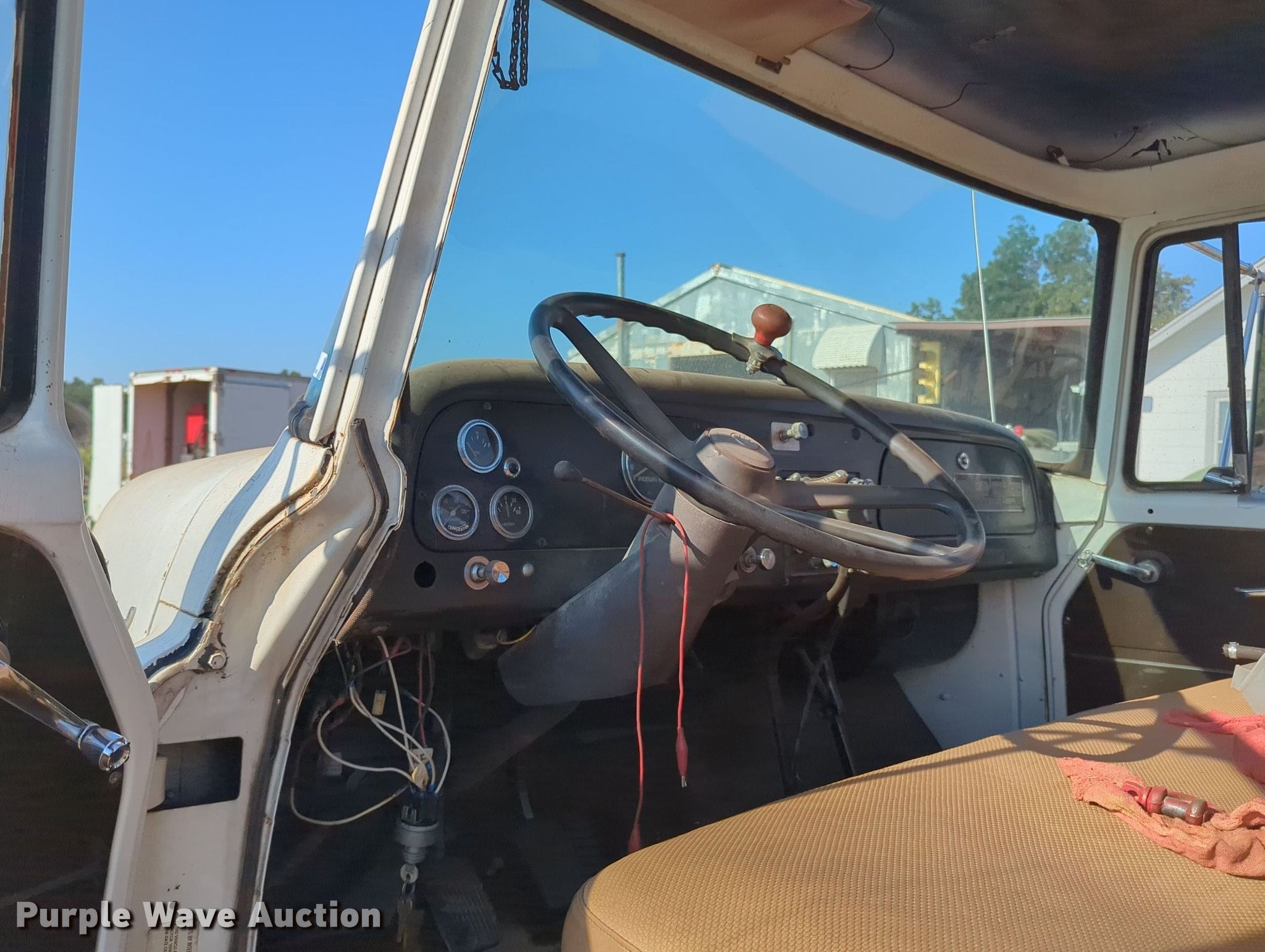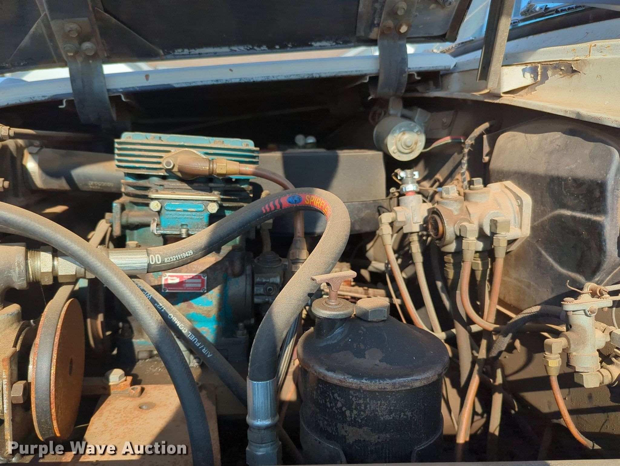 International Loadstar 1800 utility / service truck. Miles: 124,462 on odometer, VIN: 416080G389072. Engine Cylinders: 8, Fuel type: Gas. Transmission Manual, Speed: 4, plus 2. Chassis Axles: Single, Suspension: Spring, Brakes: Hydraulic. Features Bed 8' L x 80" W, Welder/generator Miller Bobcat 225G, Fuel type: Gas, 240V outlets: 2, 120V outlets: 4, Air compressor Briggs & Stratton, Crane Auto Crane CA42. Tires Size: 9.00-20. Notes Unknown operating condition. Oklahoma title. Title distribution may be delayed up to 14 days from verification of funds. 7501 Bryant Avenue. Oklahoma City, OK 73121