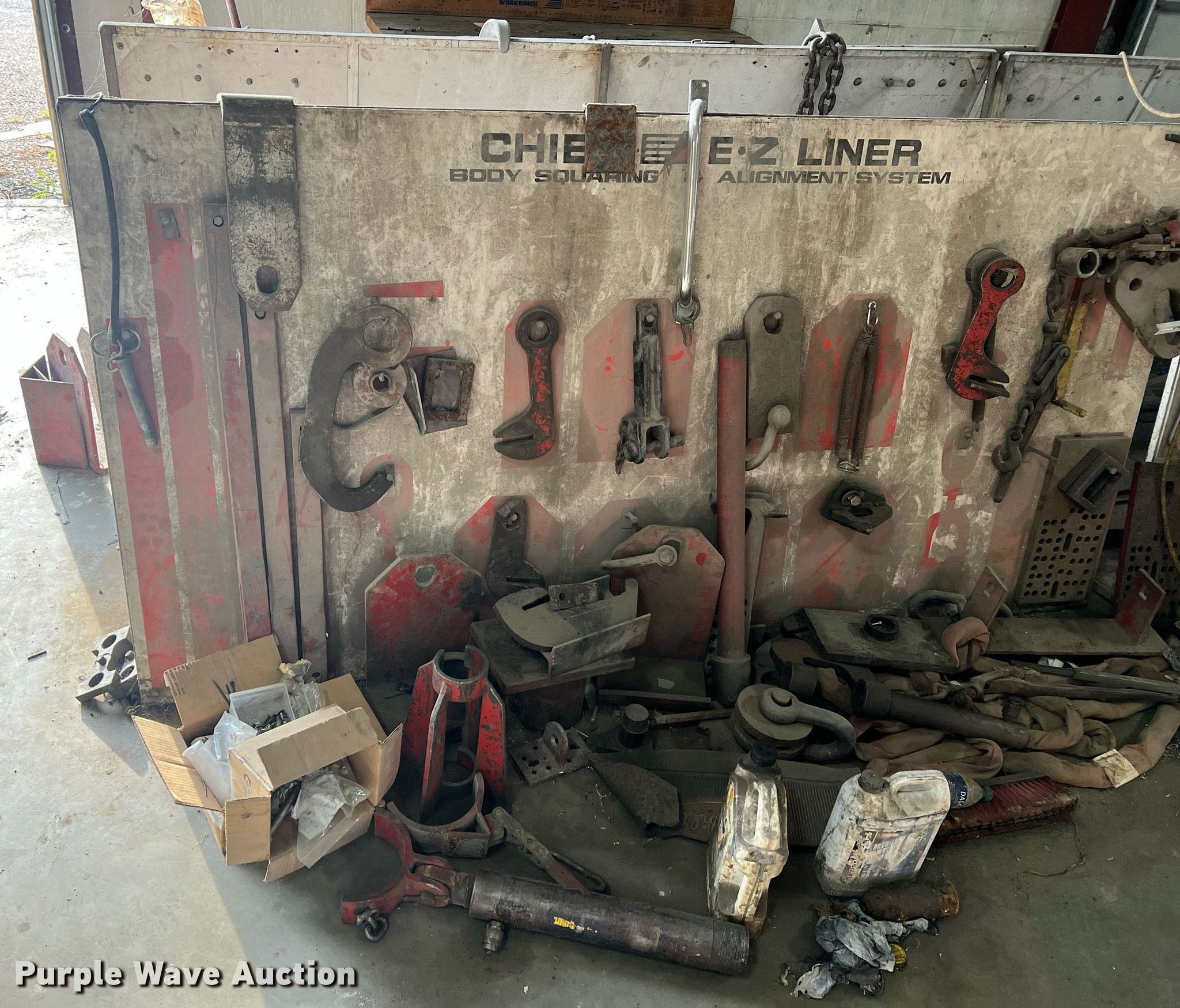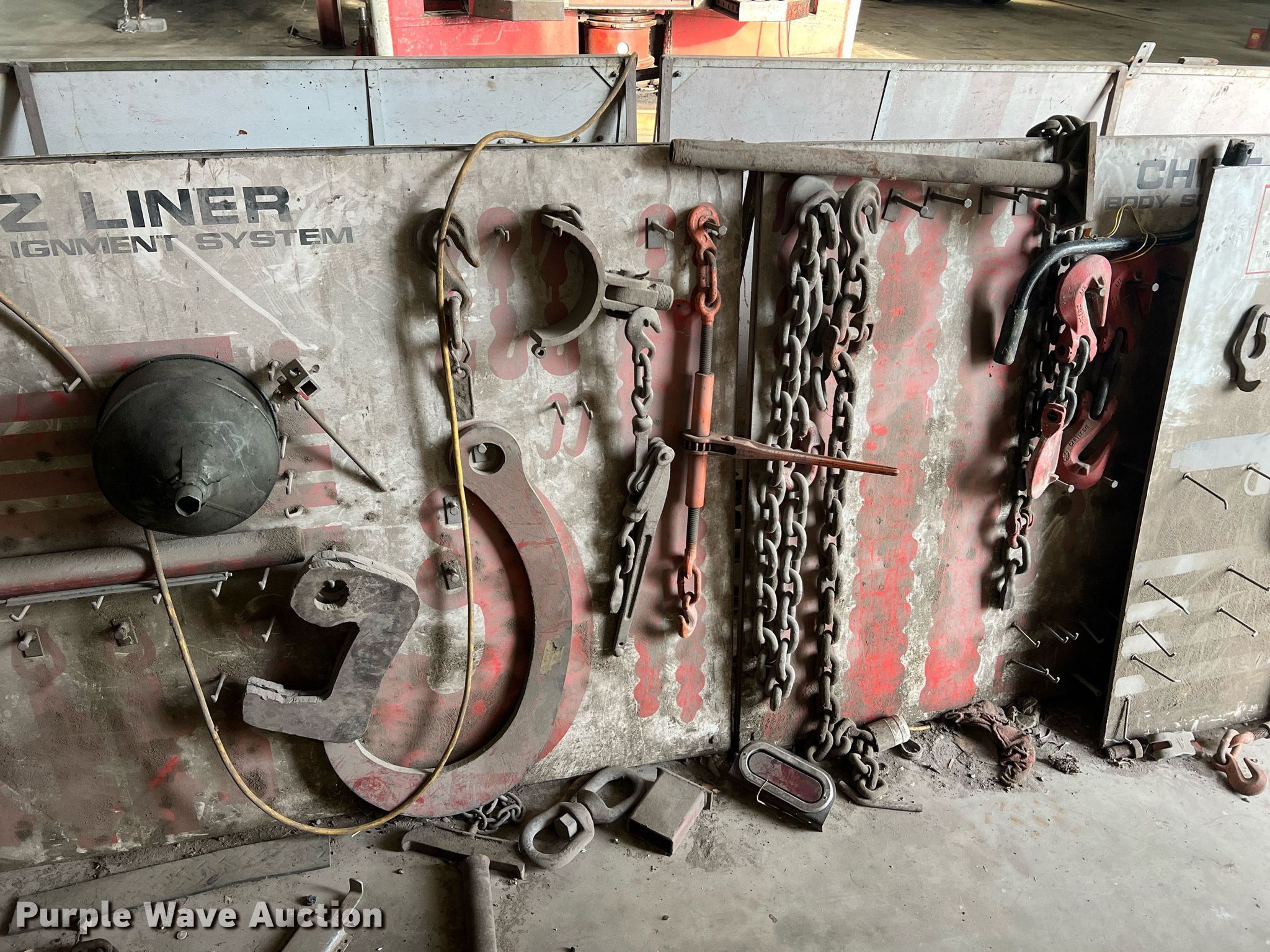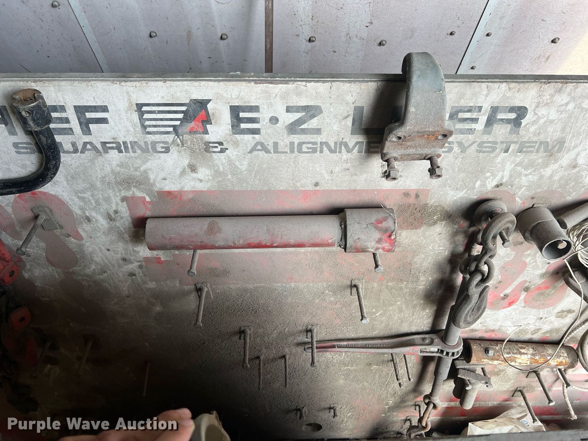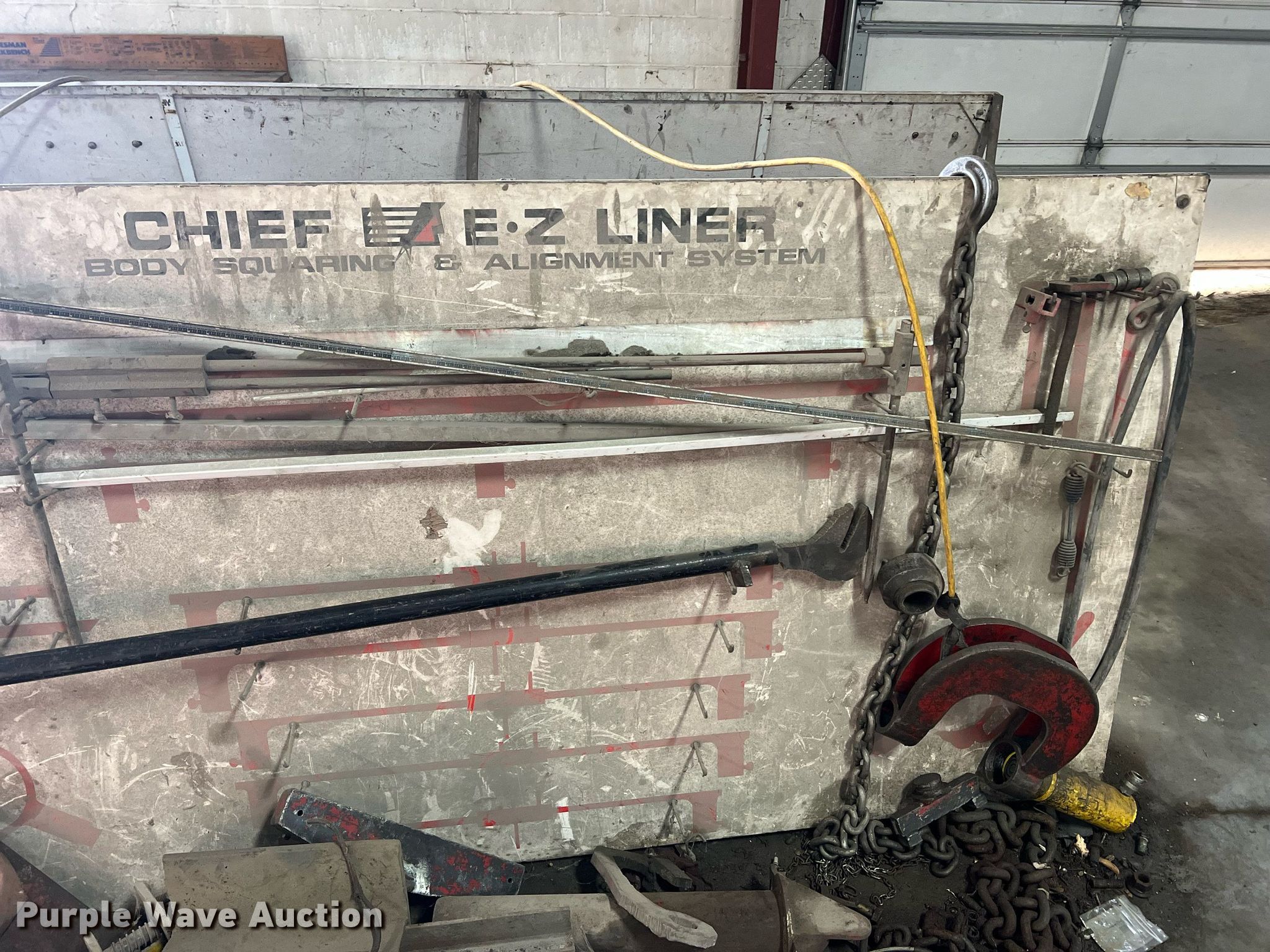 Purple Wave is selling a used Tools in Missouri. This item is a Chief EZ-Liner frame straightener with the following: Approx. 31'L x 13'9"W overall, Towers: 10, Pulling capacity: 100 tons