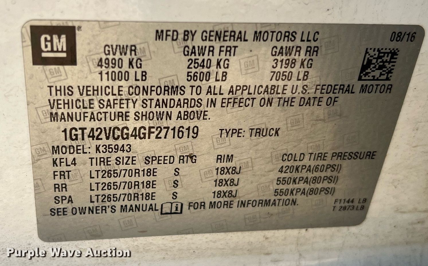 2016 GMC Sierra 3500HD Crew Cab pickup truck. Miles: 299,866 on odometer, VIN: 1GT42VCG4GF271619, Unit #: 01.601607. Engine Displacement: 6.0L V8 OHV, Cylinders: 8, Fuel type: Gas. Transmission Automatic, Four wheel drive. Interior AC, Heat, Power windows, Power locks, Cruise control, Backup camera. Tires Size: LT265/70R18. Notes Transmission issues. Missouri title. Title distribution may be delayed up to 14 days from verification of funds. Capital Equipment. 2303 Idlewood Road. Jefferson City, MO 65109