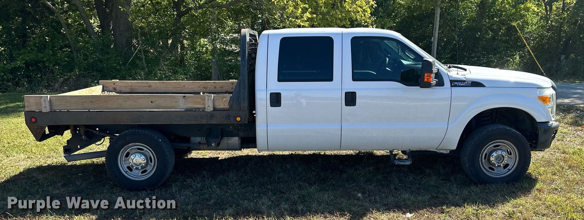 This 2013 Ford F250 Super Duty XL Crew Cab flatbed pickup truck will sell to the highest bidder regardless of price.