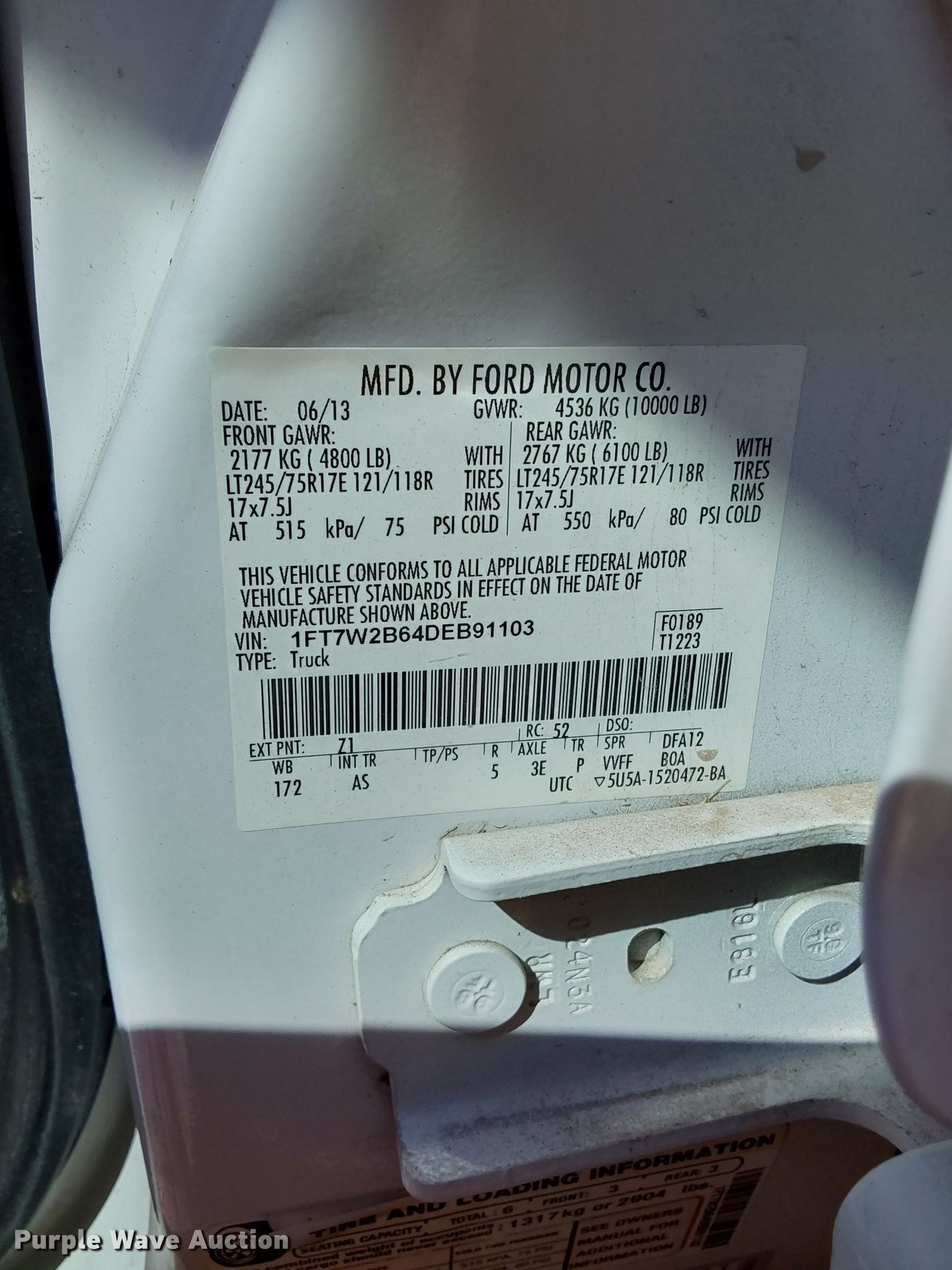 - VIN: 1FT7W2B64DEB91103