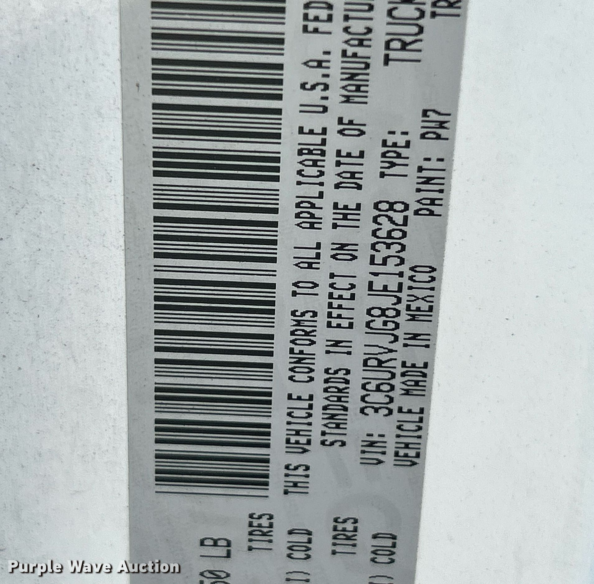 - VIN: 3C6URVJG8JE153628