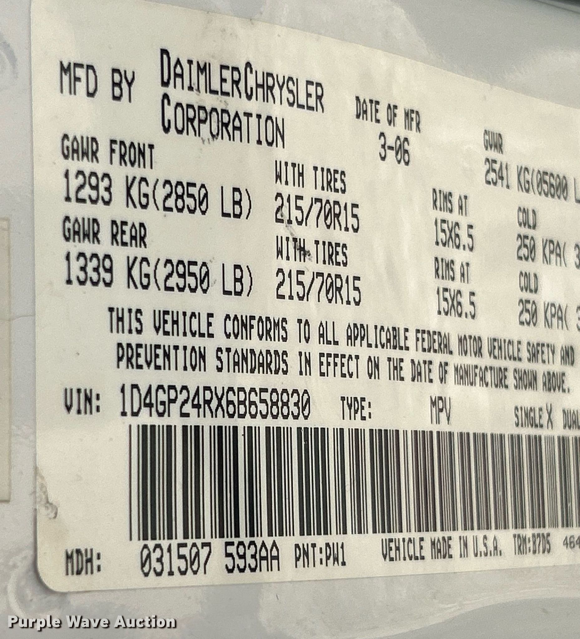 Purple Wave is selling a used 1/2 Ton Pickup or Van in Missouri. This item is a 2006 Dodge Grand Caravan van with the following: Miles: 192,181 on odometer, VIN: 1D4GP24RX6B658830