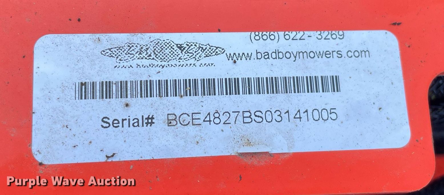 Purple Wave is selling a used Lawn Mower in Kansas. This item is a Bad Boy Elite ZTR lawn mower with the following: Hours: 214 on meter, Cutting width: 48", Serial: BCE4827BS03141005