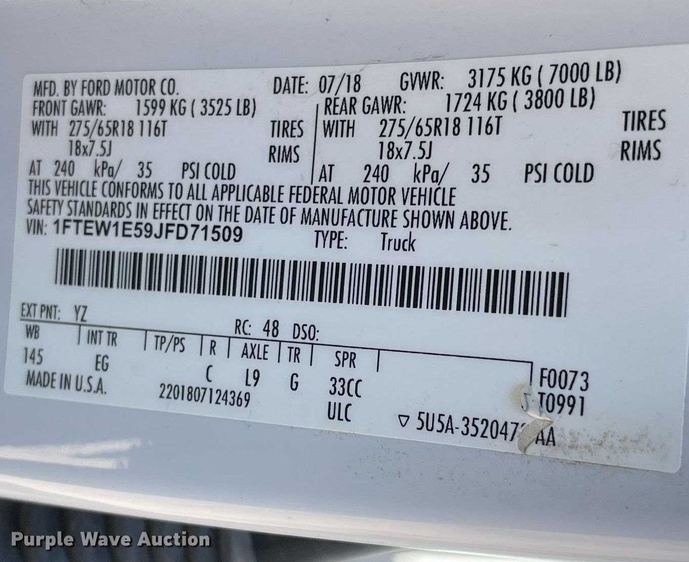 2018 Ford F150 Lariat SuperCrew pickup truck | SOLD! November 08 Vehicles and Equipment Auction