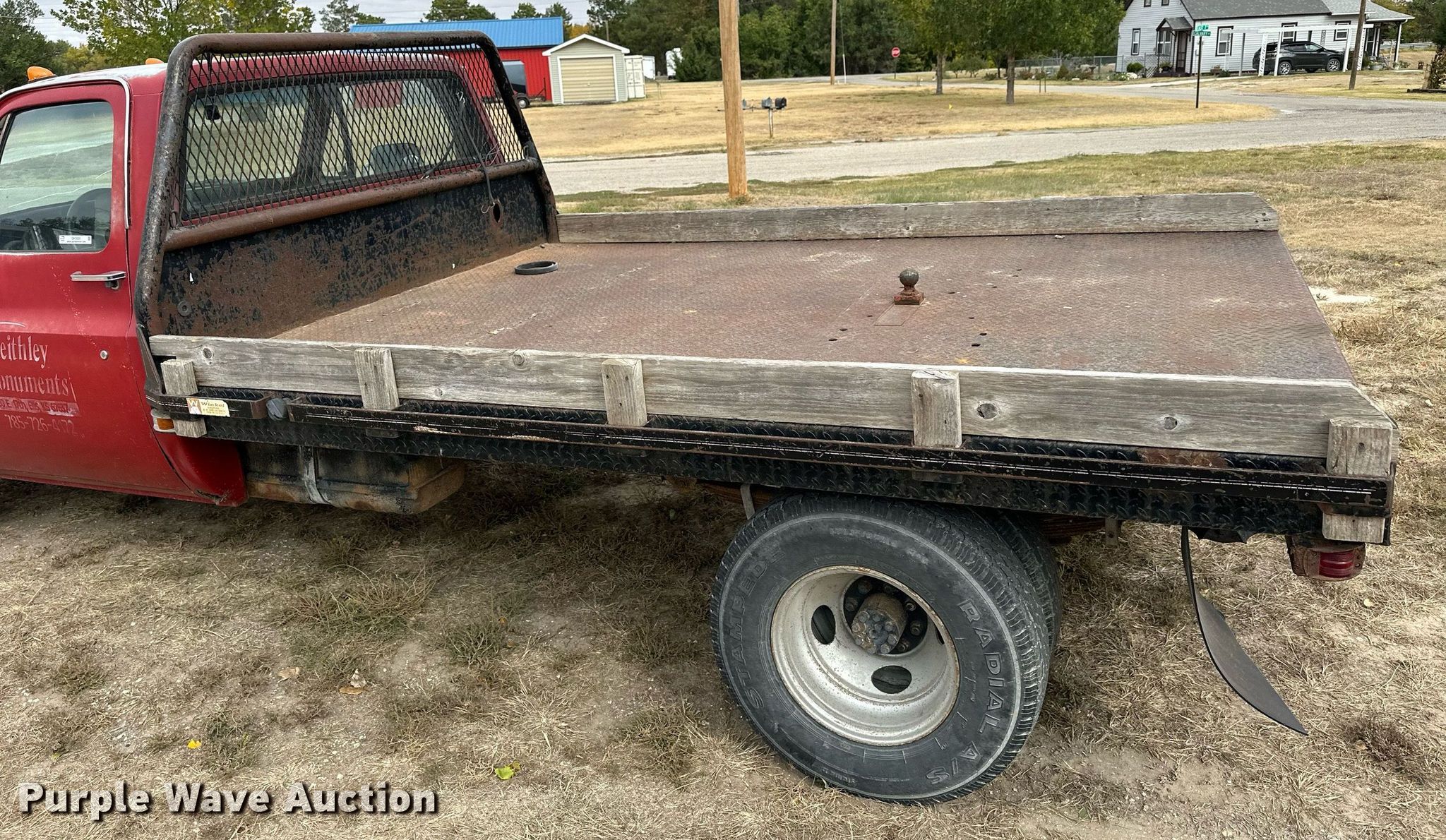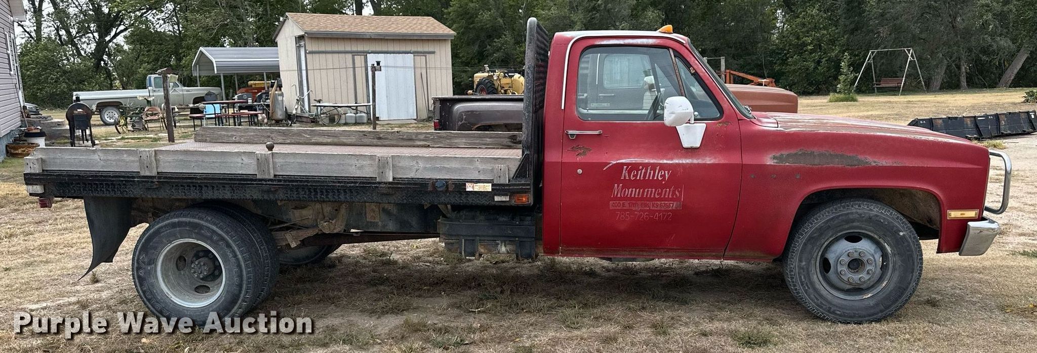 1982 Chevrolet C30 Custom Deluxe flatbed pickup truck. Miles: 1,953 on odometer Actual mileage unknown, VIN: 1GBHC34WXCV106140. Engine Displacement: 7.4L V8 OHV, Cylinders: 8, Fuel type: Gas. Transmission Manual, Speed: 4. Interior Heat. Features Flatbed Winkel, 10' L x 87" W, Hitch: Gooseneck. Tires Size: 265/75R16, Front: 235/85R16. Notes Windshield chipped or cracked. Kansas antique title. Mileage has not been verified. Exempt will be written in the odometer disclosure on the title. Title distribution may be delayed up to 14 days from verification of funds. Ellis, KS 67637