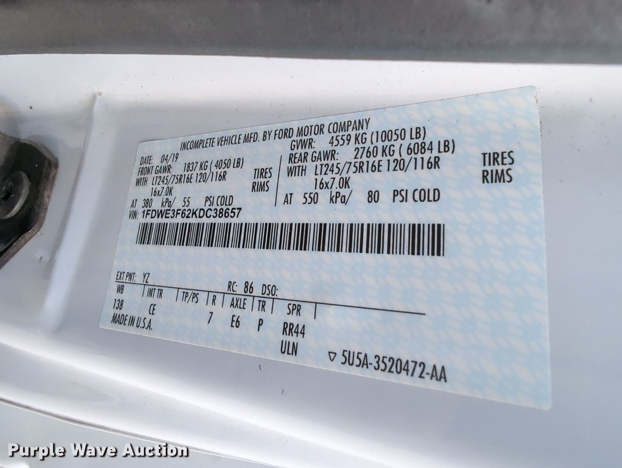 Purple Wave is selling a used 3/4 or 1 Ton Pickup or Van in Oklahoma. This item is a 2019 Ford E350 Super Duty utility van with the following: Miles: 66,214 on odometer, VIN: 1FDWE3F62KDC38657