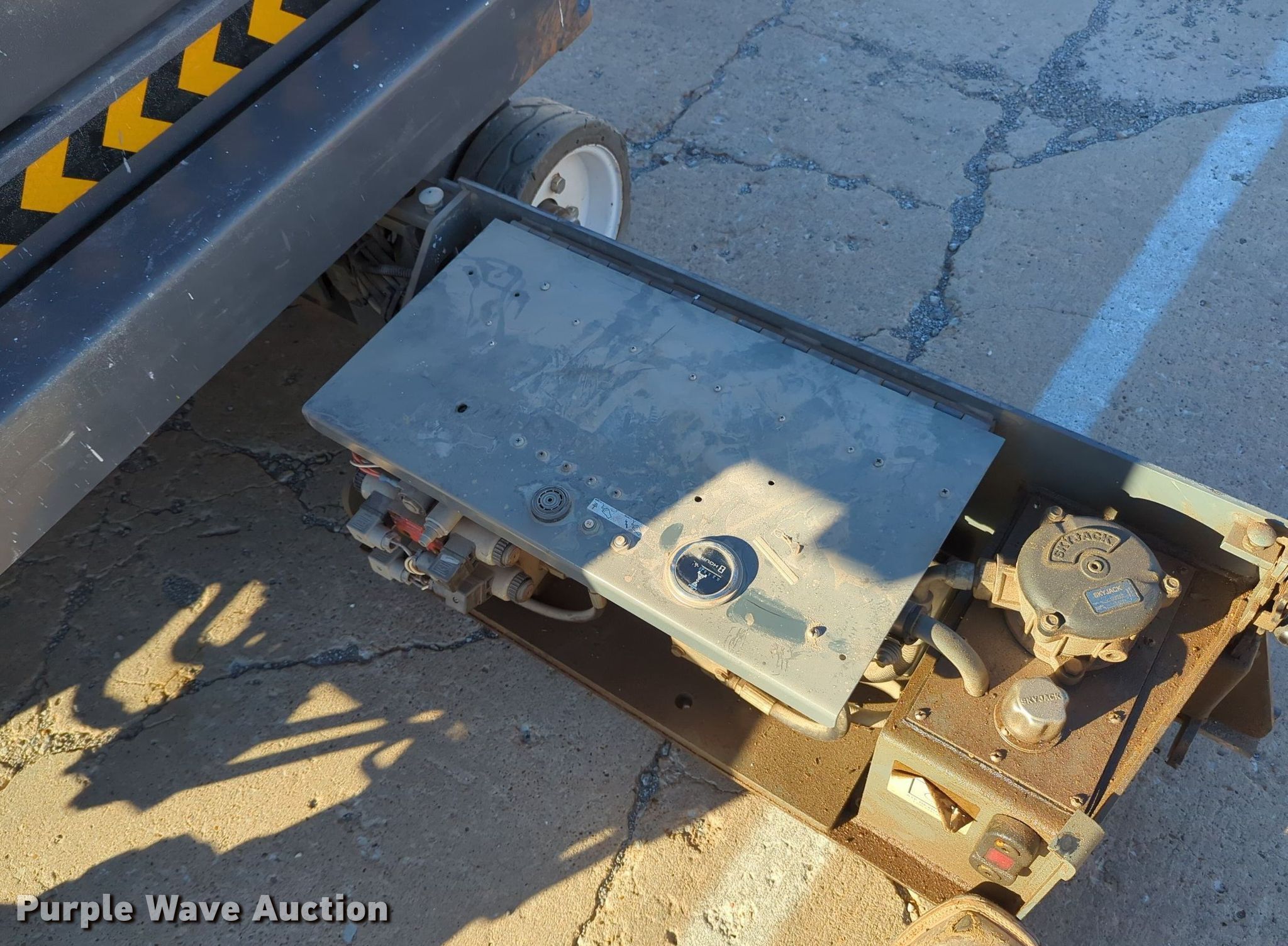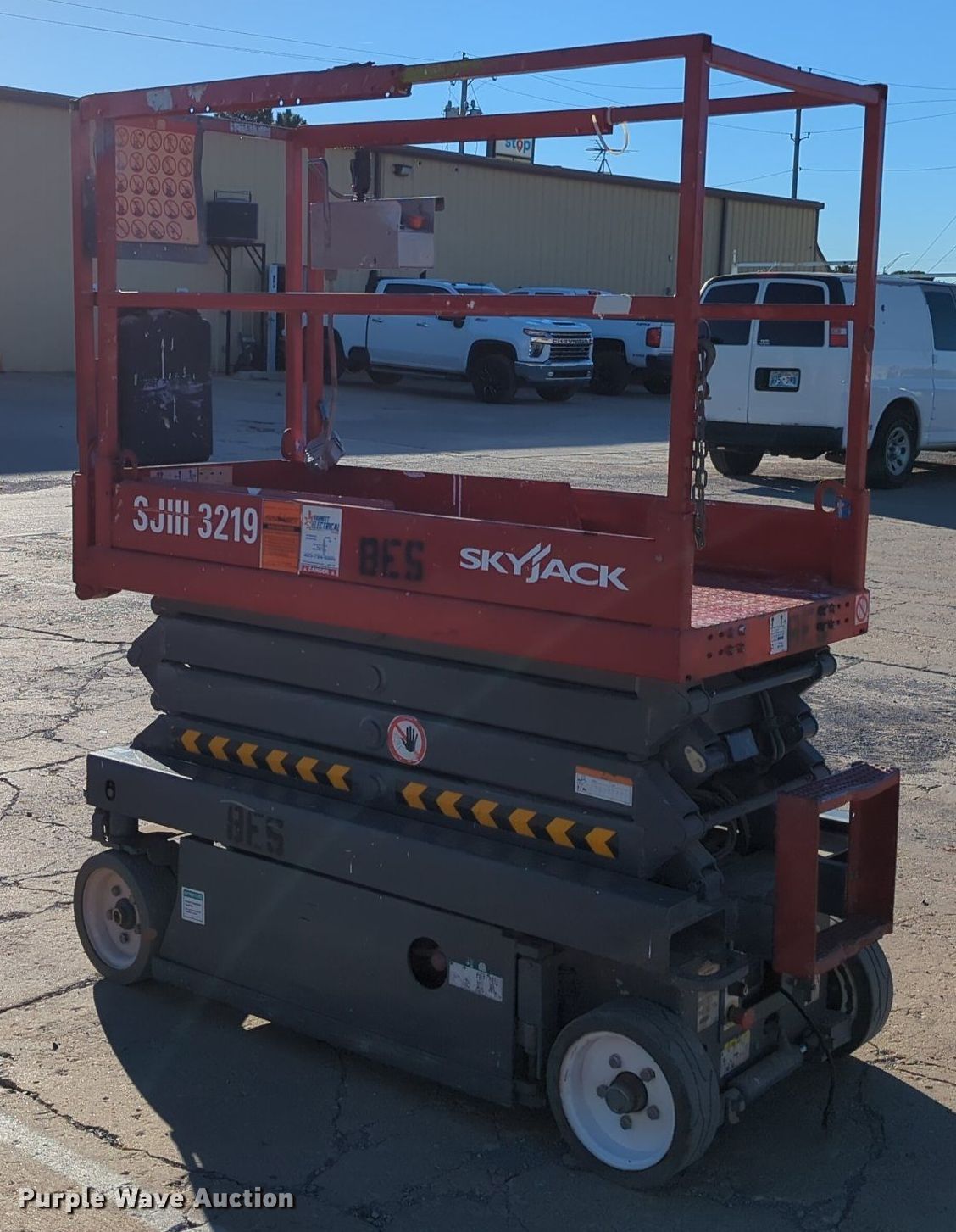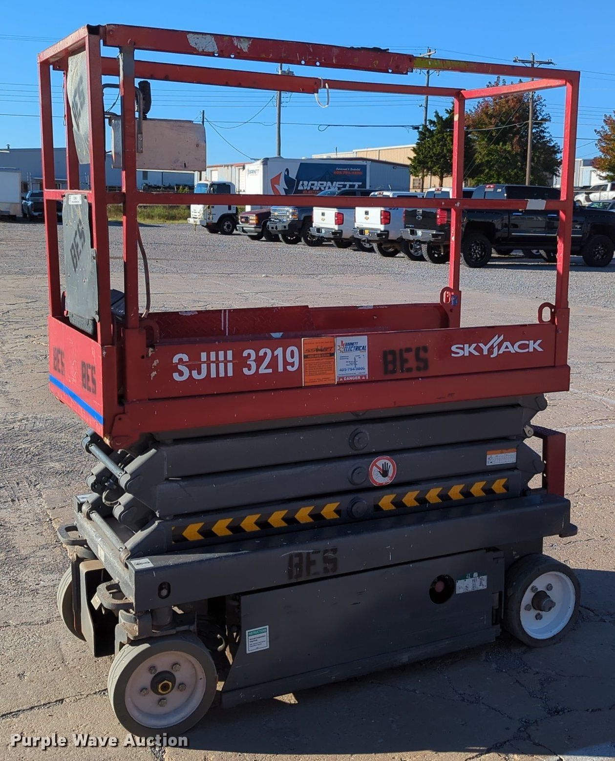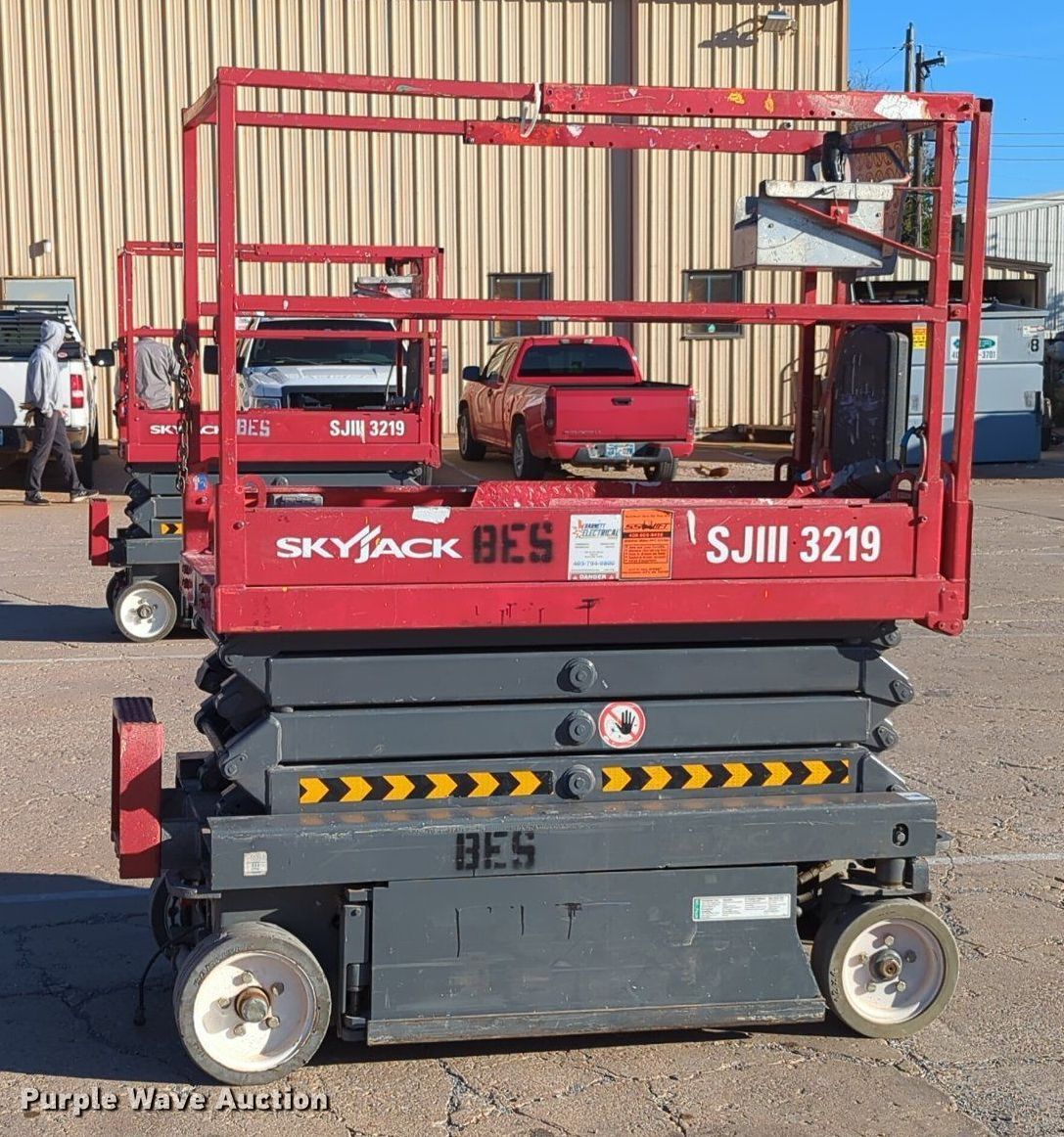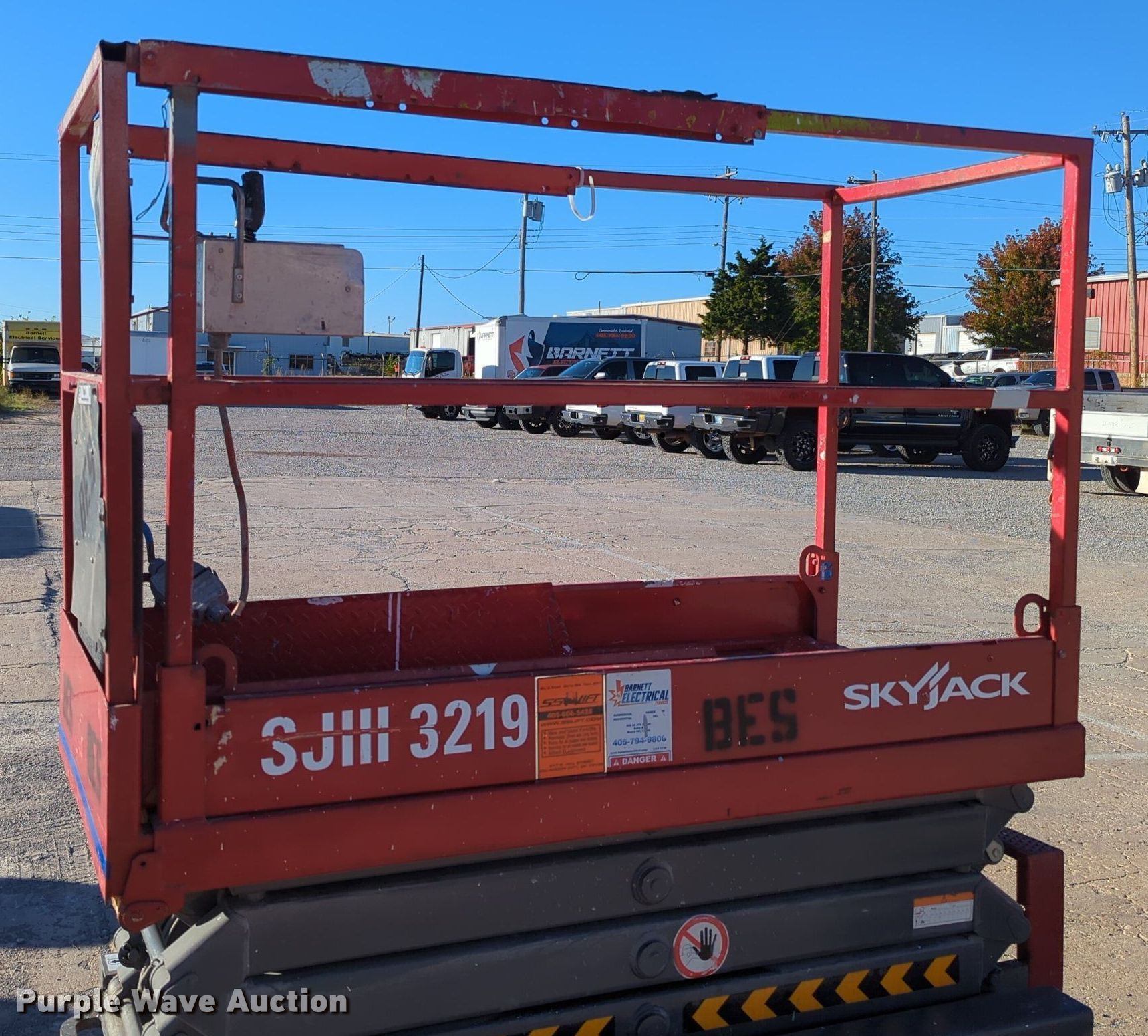 Purple Wave is selling a used Scissor or Vertical Lift in Oklahoma. This item is a Sky Jack SJ III -3219 scissor lift with the following: Hours: 220 on meter, Serial: 22038699
