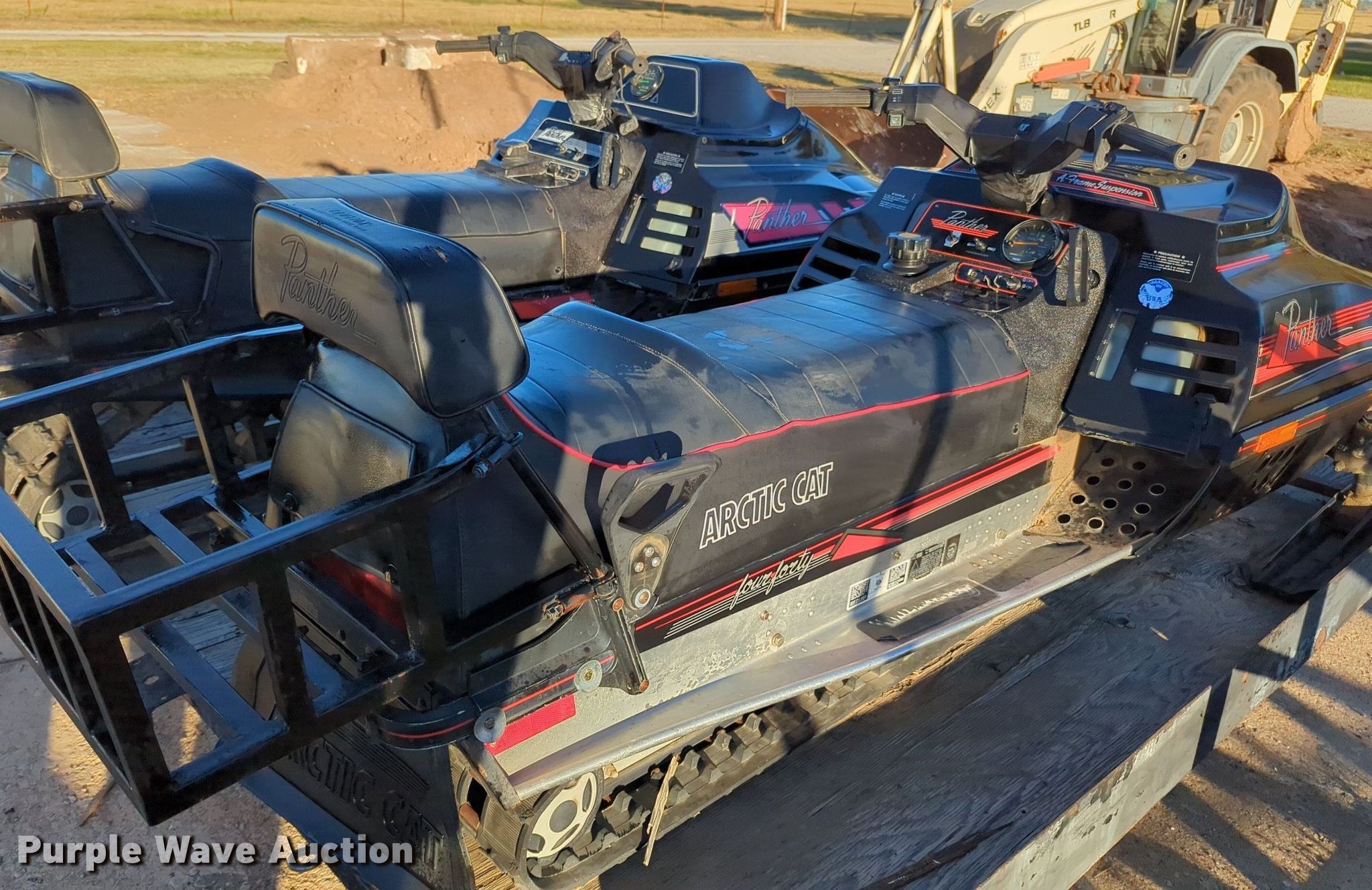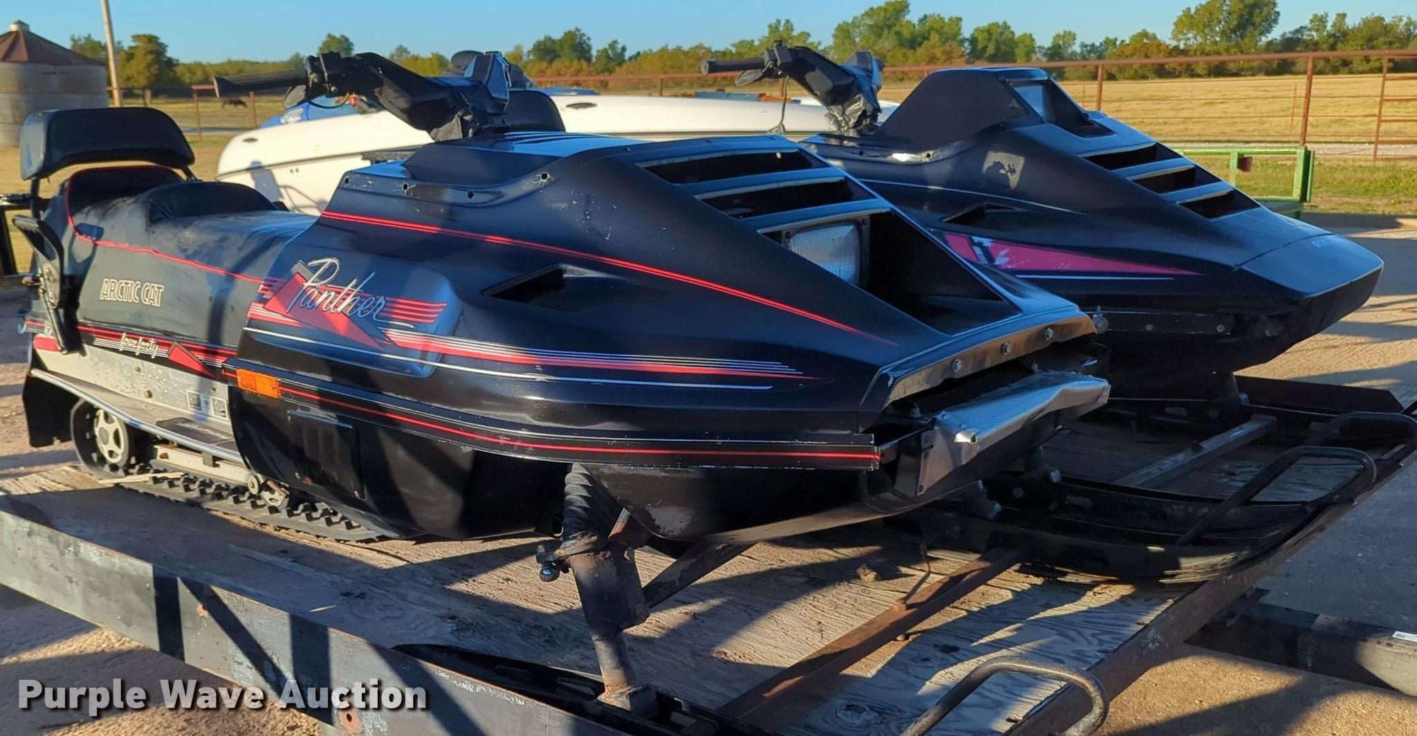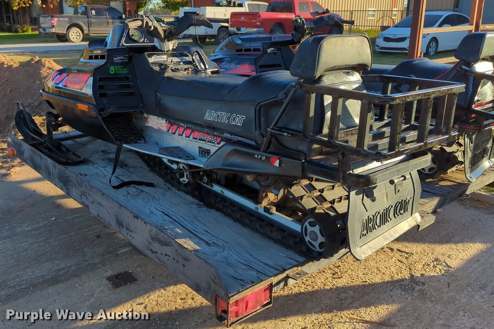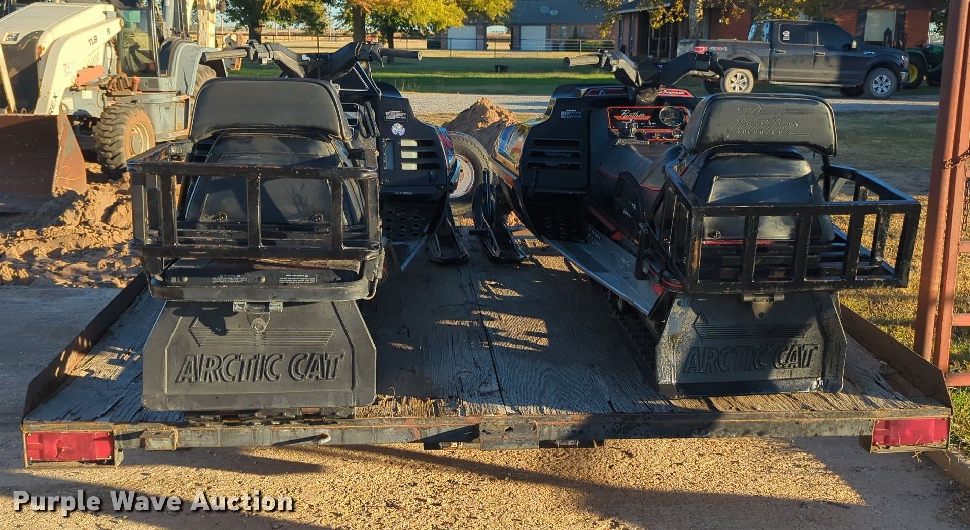 (2) snowmobiles. Artic Cat Panther. Miles: 5,594 on odometer, Serial: 9107720. Engine Cylinders: 2, Fuel type: Gas, Recoil start. Transmission Automatic. Artic Cat Panther Miles: 4,621 on odometer, Serial: 9028238. Engine Cylinders: 2, Fuel type: Gas. Transmission Automatic. Tilt deck trailer Overall: 12' L x 8' W, Deck: 10" x 96", Tires: 18x8.50-8. Transfer of ownership documentation will be a bill of sale. El Reno, OK 73036