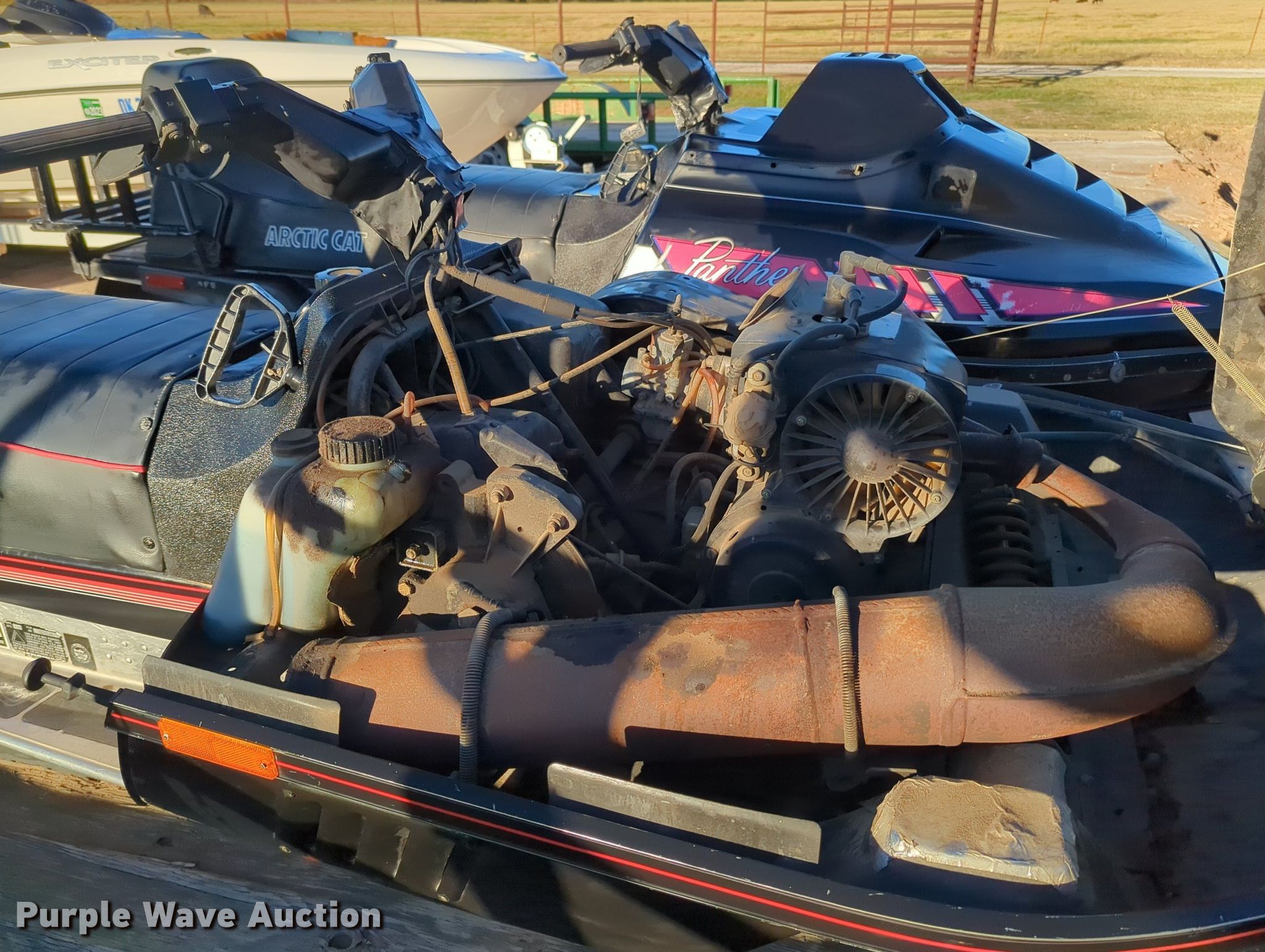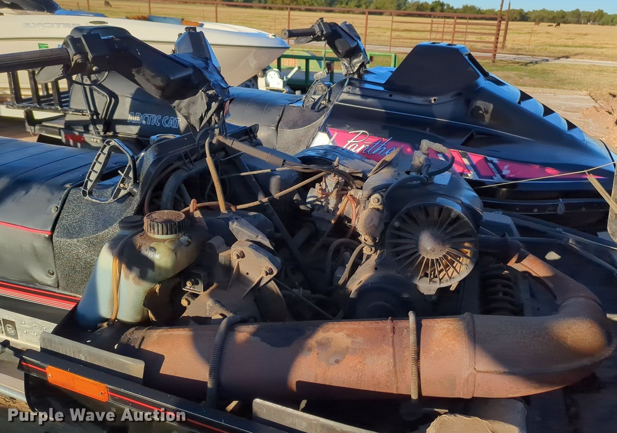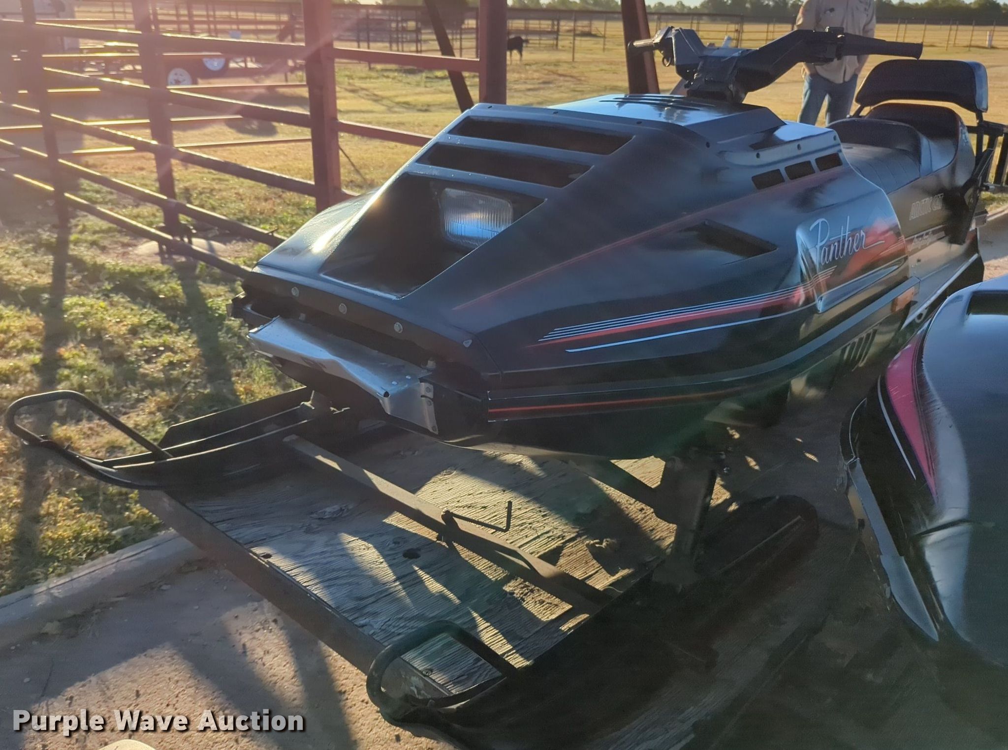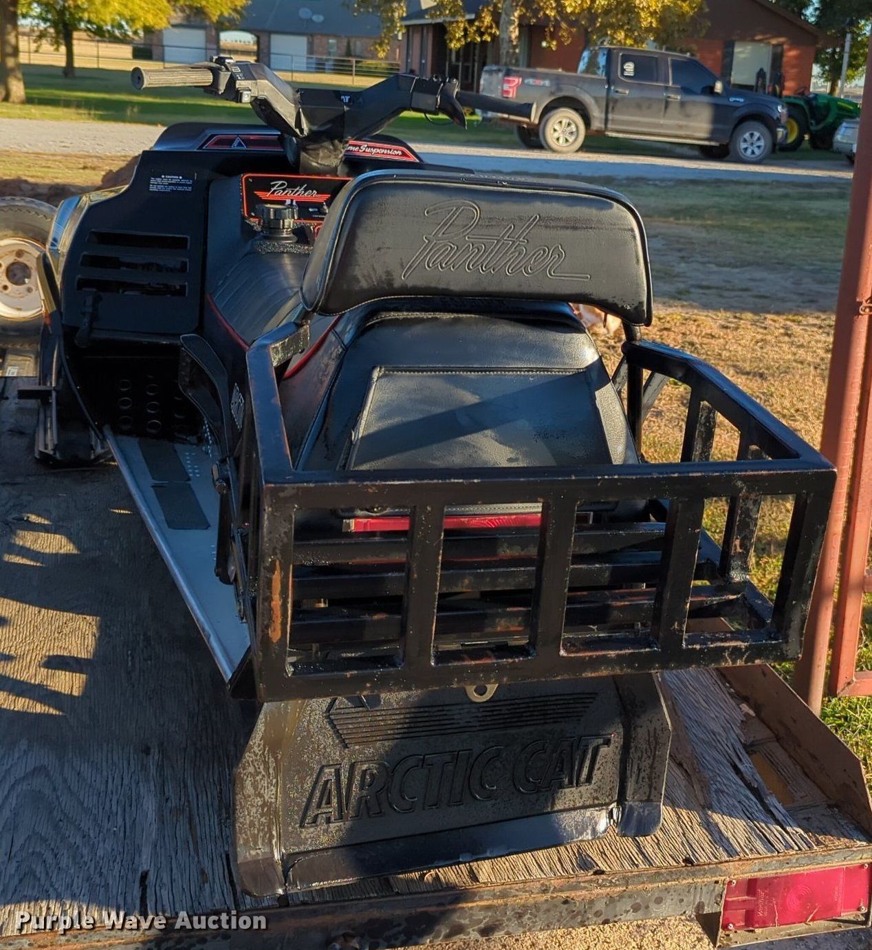 (2) snowmobiles. Artic Cat Panther. Miles: 5,594 on odometer, Serial: 9107720. Engine Cylinders: 2, Fuel type: Gas, Recoil start. Transmission Automatic. Artic Cat Panther Miles: 4,621 on odometer, Serial: 9028238. Engine Cylinders: 2, Fuel type: Gas. Transmission Automatic. Tilt deck trailer Overall: 12' L x 8' W, Deck: 10" x 96", Tires: 18x8.50-8. Transfer of ownership documentation will be a bill of sale. El Reno, OK 73036