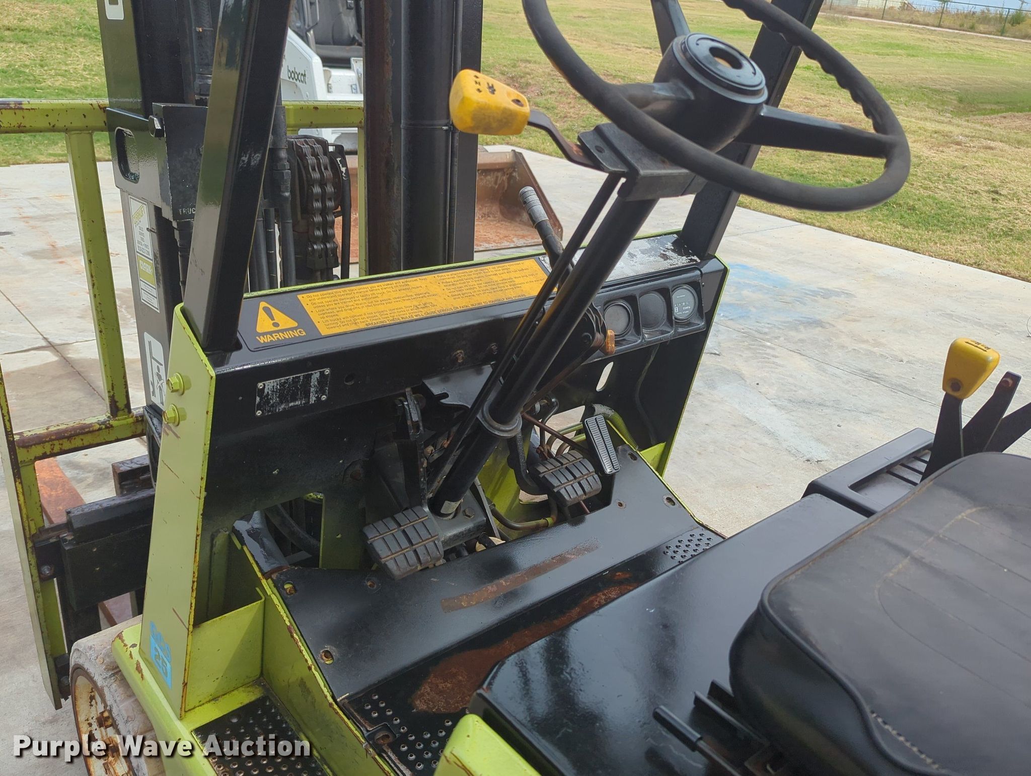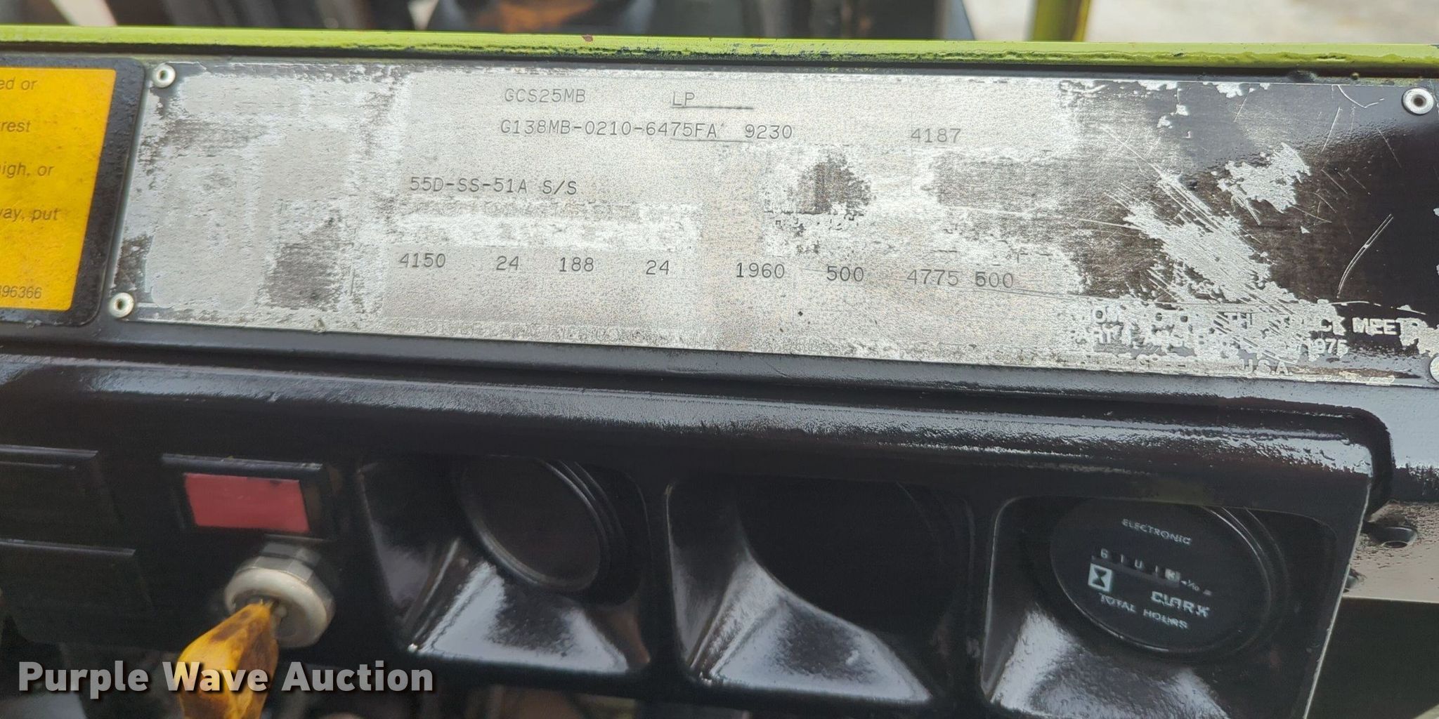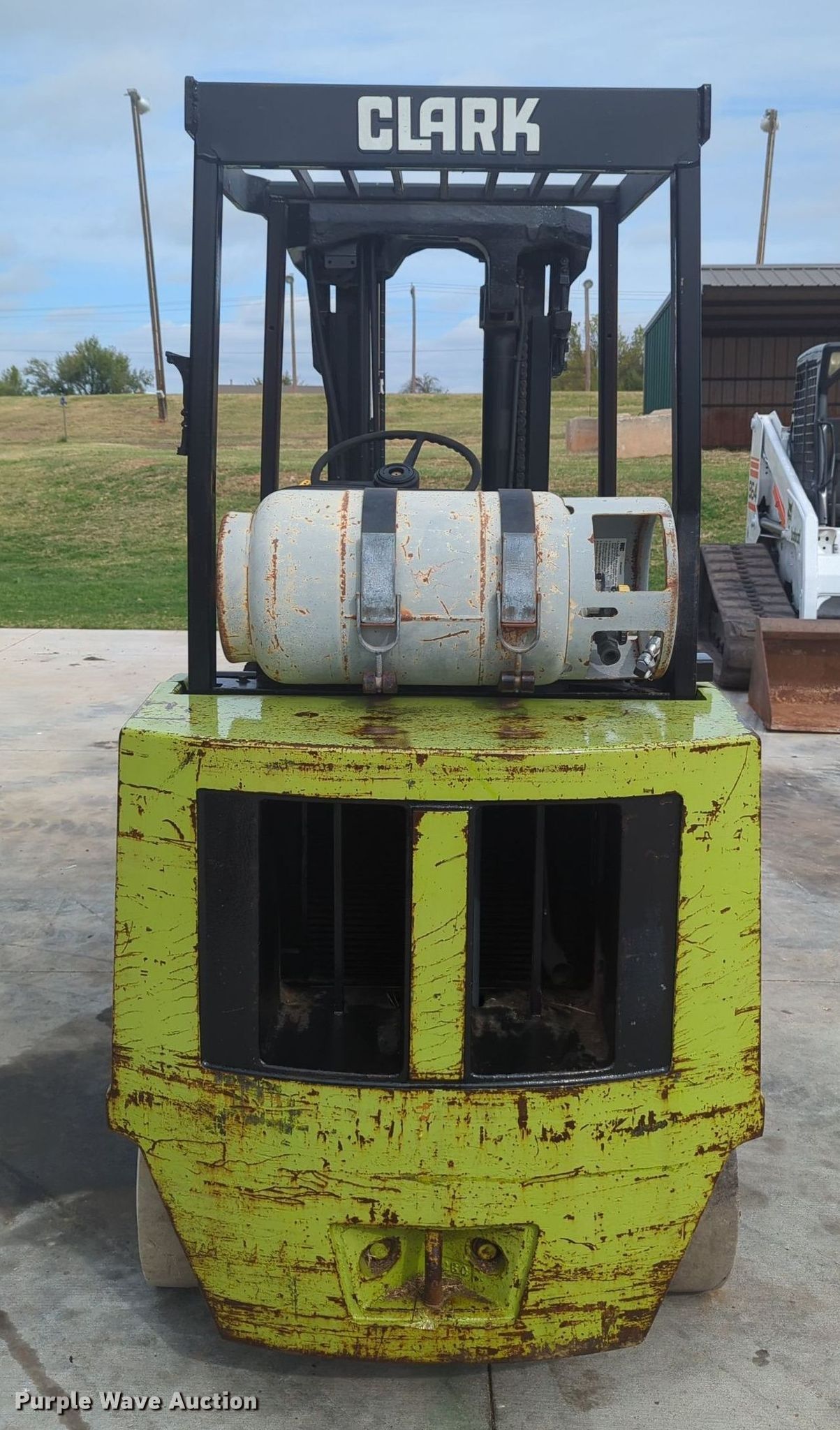 Purple Wave is selling a used Cushion Tire or Pneumatic Forklift in Oklahoma. This item is a Clark GCS25MB forklift with the following: Hours: 6,101 on meter, Serial: G138MB-0210-6475FA