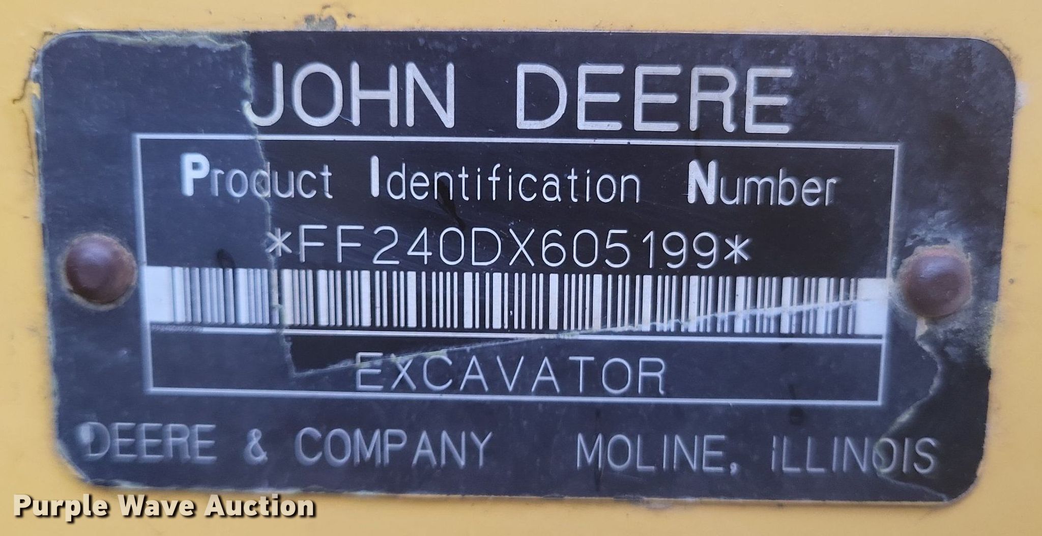 Purple Wave is selling a used Hydraulic Excavator in Missouri. This item is a 2006 John Deere 240D LC excavator with the following: Hours: 5,015 on meter, Miles or hours may vary, unit still in use, Serial: FF240DX605199