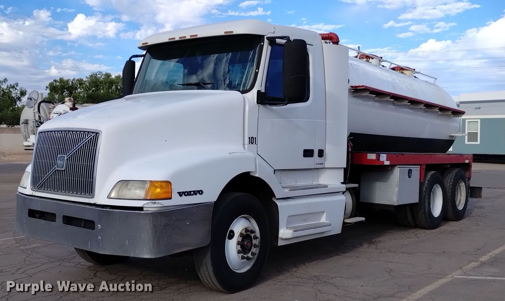 Purple Wave is selling a used Tank Truck or Water Truck in Arizona. This item is a 2000 Volvo tank truck with the following: Miles: 741,811 on odometer, VIN: 4V4ND2JH8YN231578, Unit #: 101