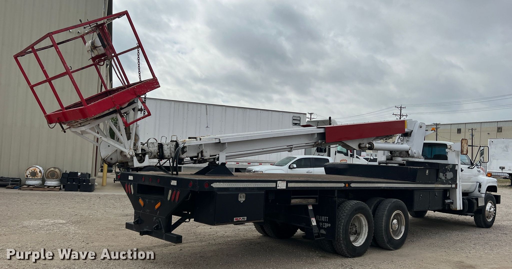1992 GMC C6500 bucket truck. Miles: 109,548 on odometer, Hours: 2,165 on meter, VIN: 1GDT7H4J4NJ519477. Engine Caterpillar 3116, Displacement: 6.6L, Cylinders: 6, Fuel type: Diesel. Transmission Eaton Fuller , Manual, Speed: 15. Chassis Axles: Tandem, Suspension: Spring over walking beam, Brakes: Air, PTO, GVWR: 52,000 lbs. Interior Heat. Features Bed 25' L x 96" W, Boom 2000 Elliot ECE.4.85B, Serial: D.B.1364, Boom length: 25', Mast height: 85', Maximum lift capacity: 800 lbs, Boom type: Telescopic, Man basket, Boom controls Platform/ basket.. Tires Size: 11R22.5. View repairs. Texas title. Title distribution may be delayed up to 14 days from verification of funds. 11640 US-287 BUS. Fort Worth, TX 76179
