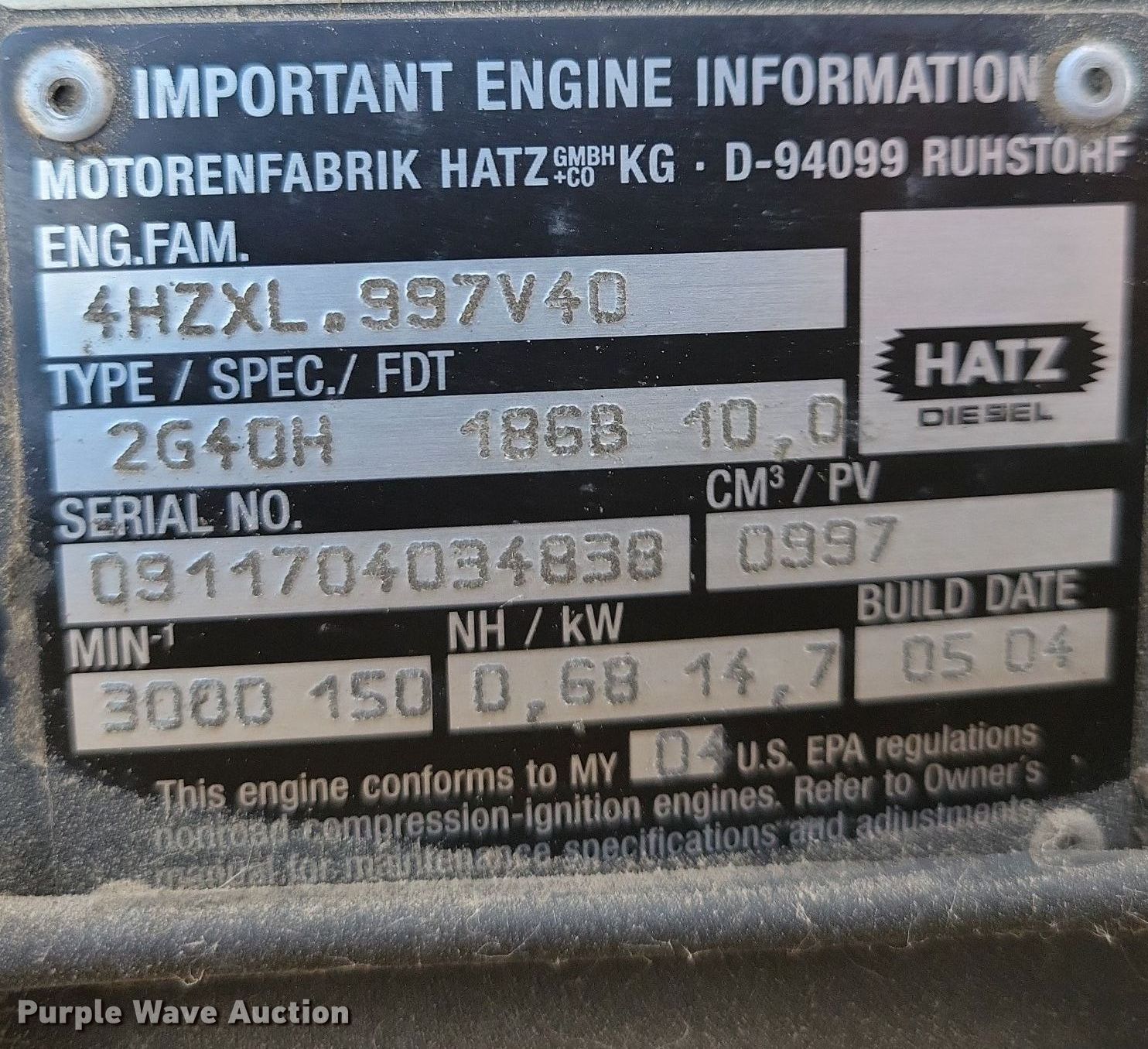 2004 Wacker RD15 double drum vibratory roller. Hours: 400 on meter, Serial: 5469550. Engine Hatz, Cylinders: 2, Fuel type: Diesel. Transmission Hydrostatic, Two speed travel. Operators station OROPS. Features Drum: Smooth, Vibratory system: Double, Front drum Width: 32", Diameter: 22", Rear drum Width: 32", Diameter: 22", Drum scrapers: Front, Rear. Notes Non-operational unit. Hills Bros Asphalt Retirement. 1700 East Aurora Avenue. Des Moines, IA 50313